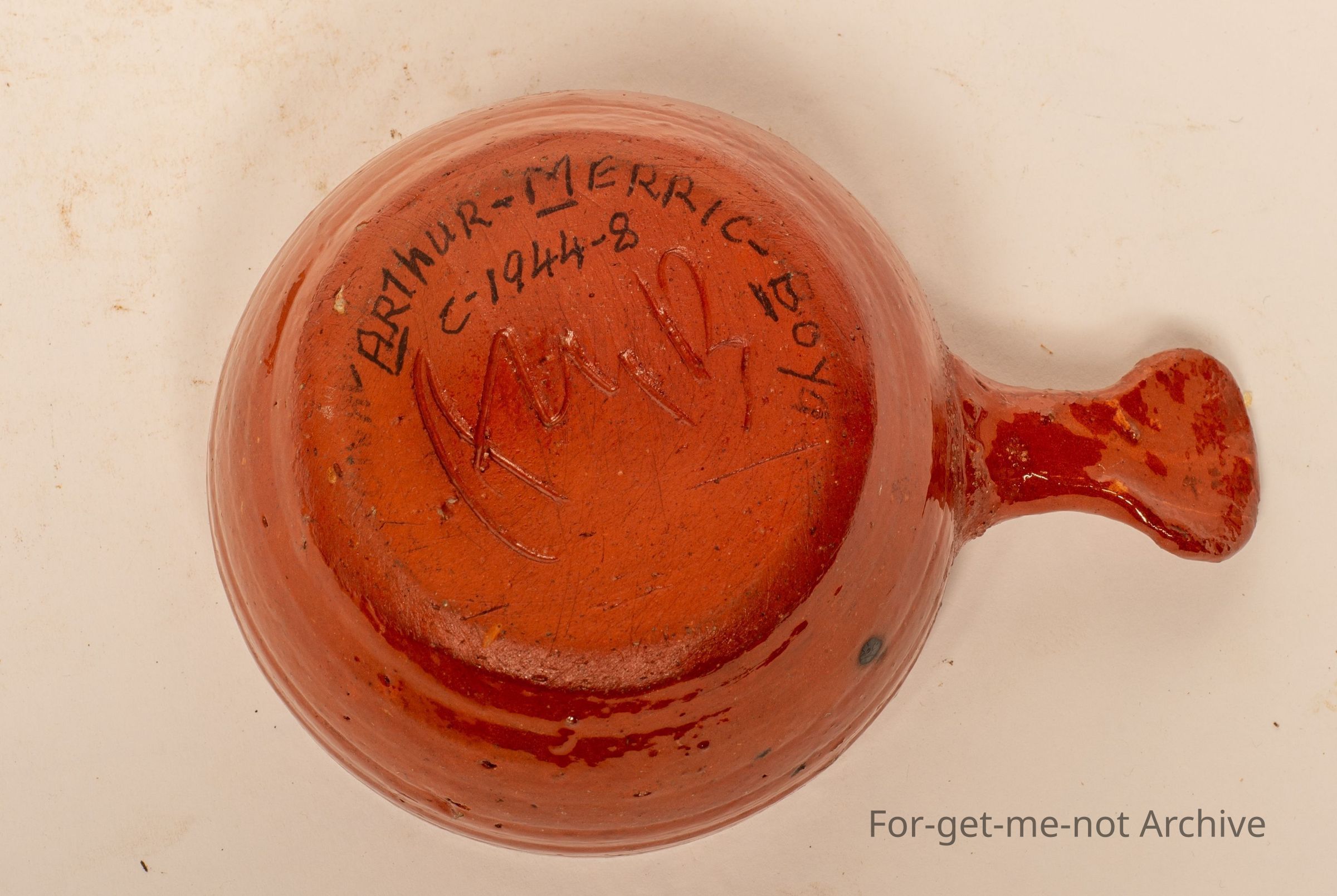 Small pannikin, brown glaze, quite plain, signed on the bottom, A M B Arthur Merrick Boyd.