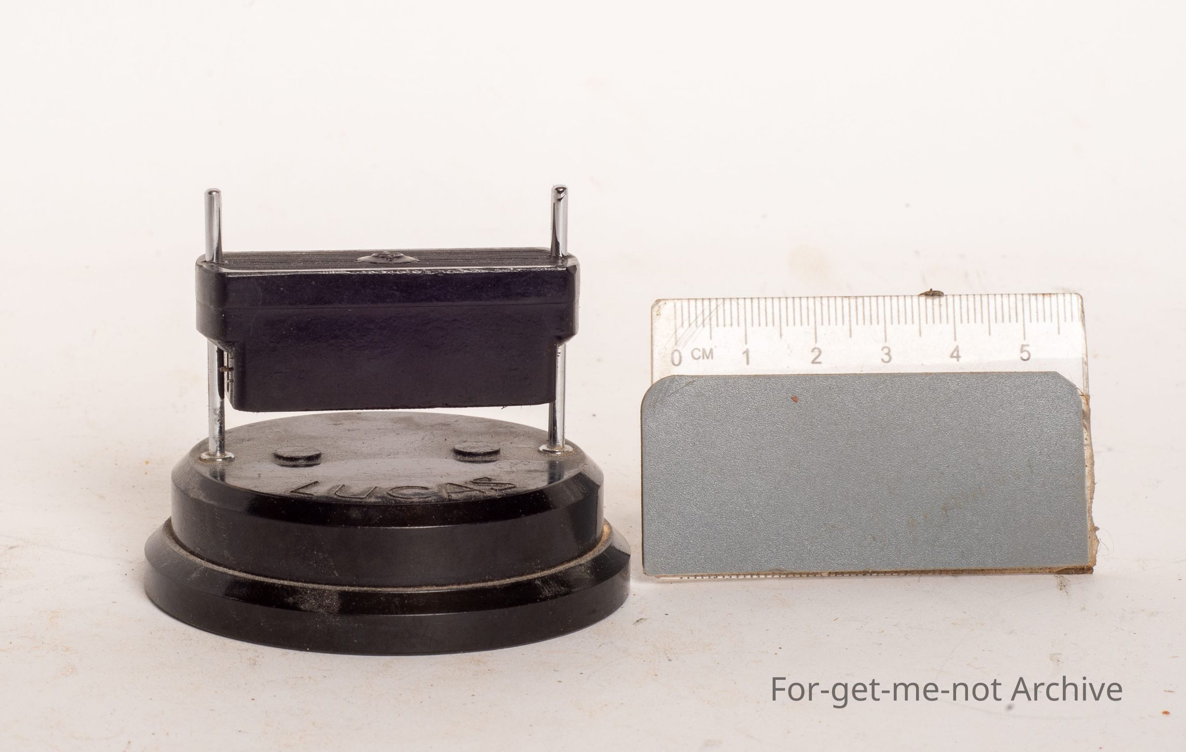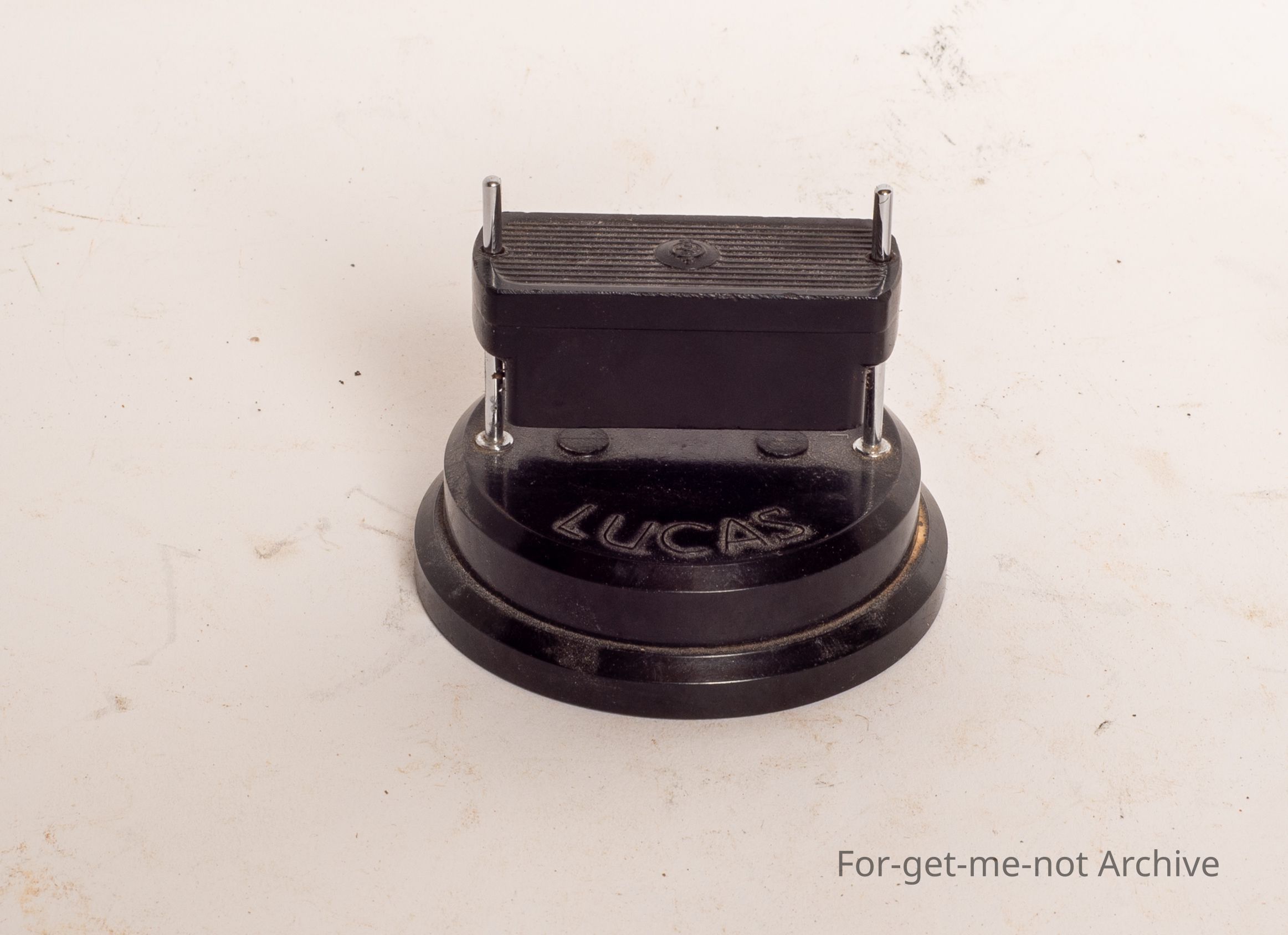 This is an interesting little paperweight novelty advertising piece for Lucas Batteries. Works on both magnetic and anti magnetic. All made of Bakelite. Lovely little piece. Probably quite an unusual advertising piece.Collection