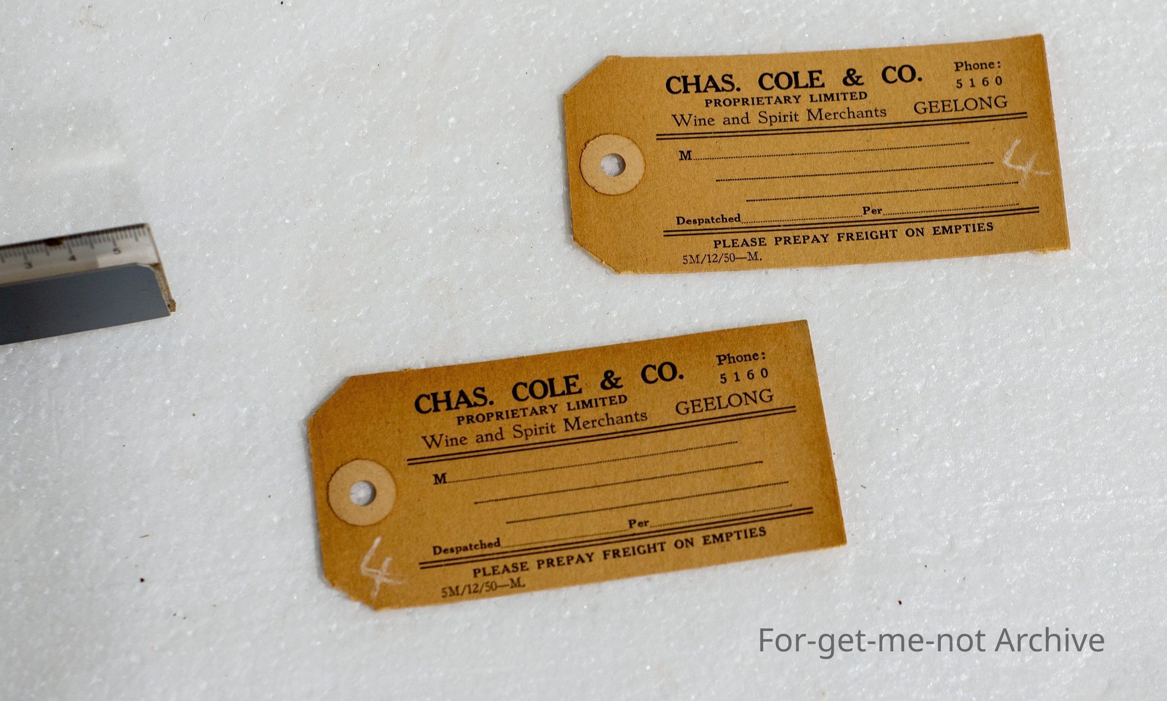 Chas Cole and Co. Wine merchants Geelong dispatch address tickets