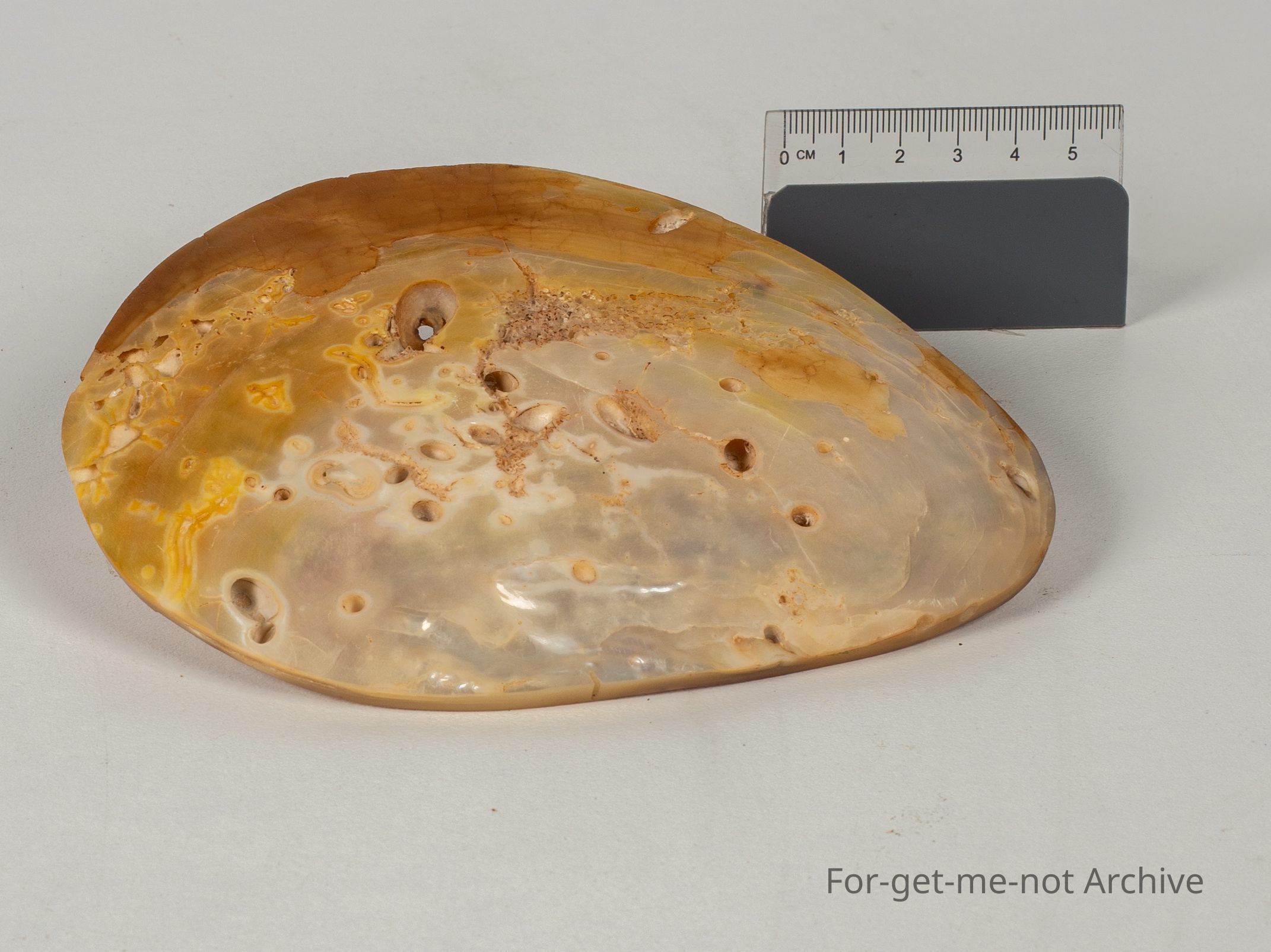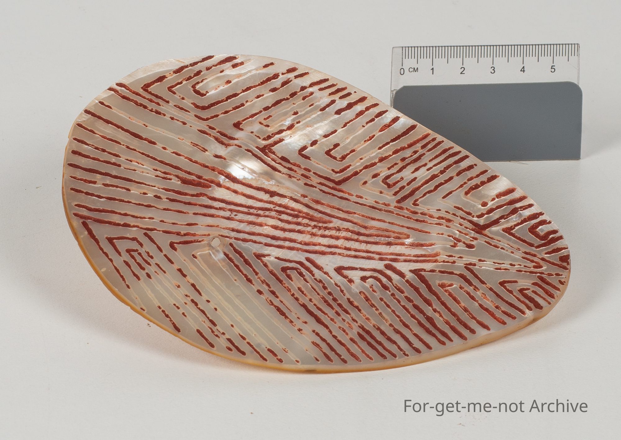 Shell likely aboriginal engraved with motifs and filled with red ochre
