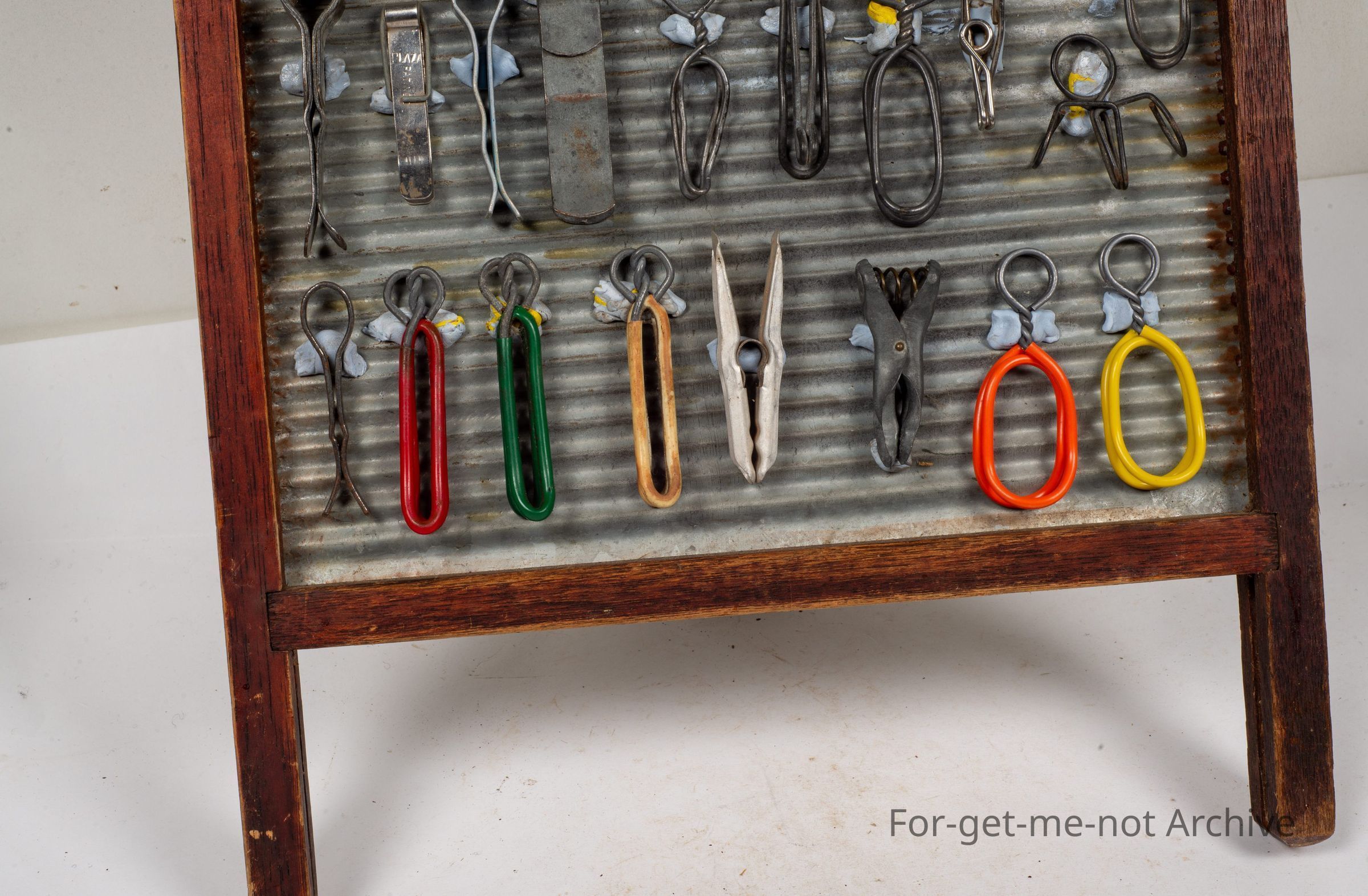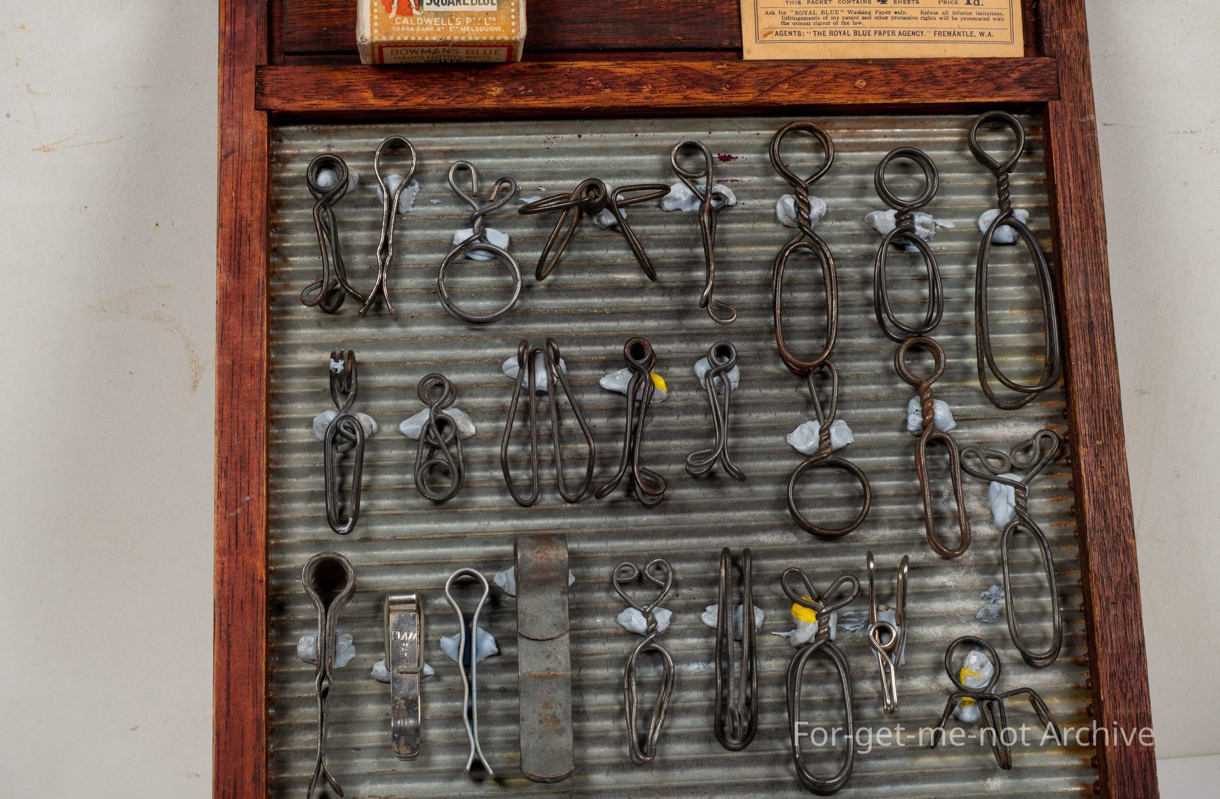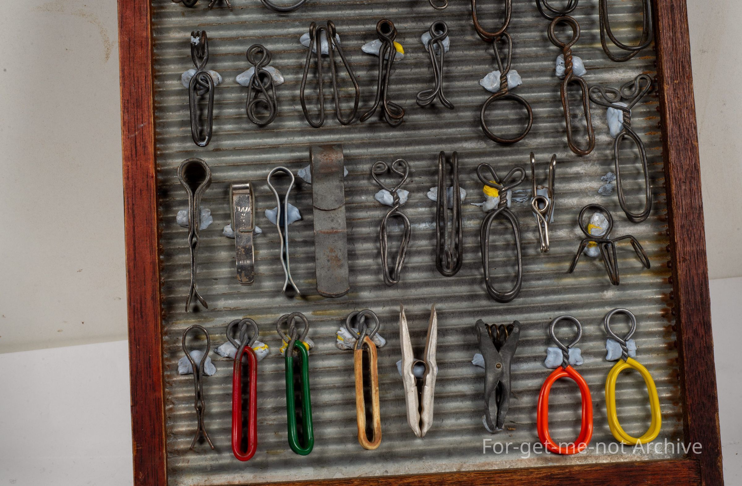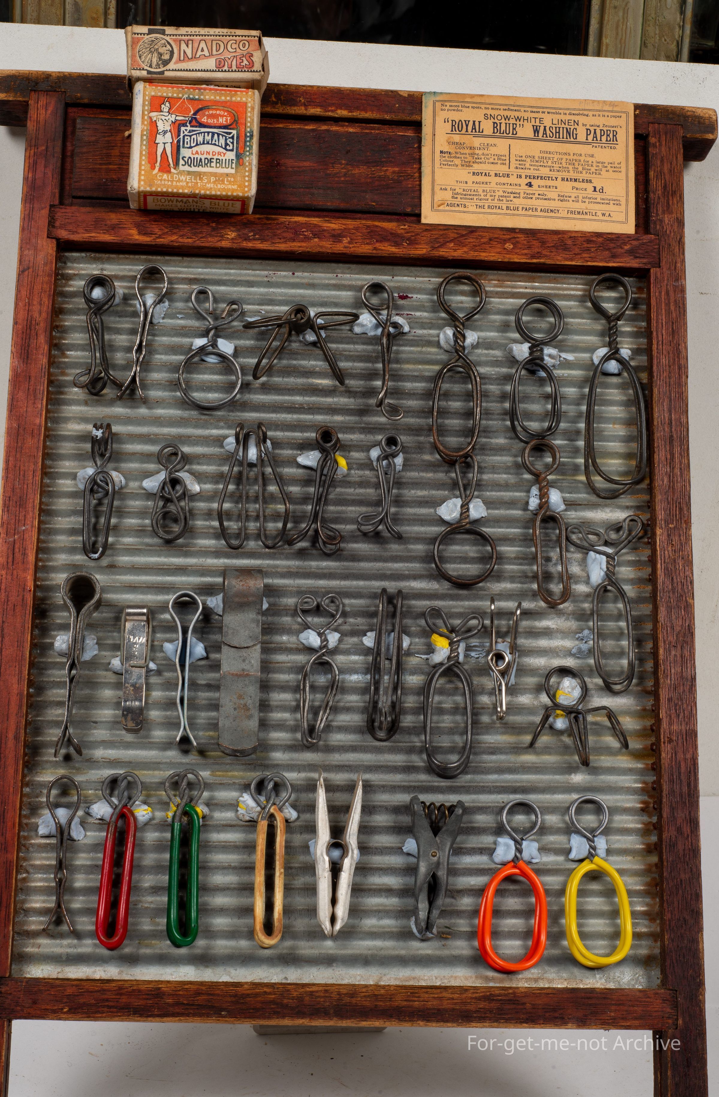 Another display of pegs, this time wire work, all different shapes, designs, marvellous things. These are a reflection of the depression era, when lots of things were made of wire.Collection