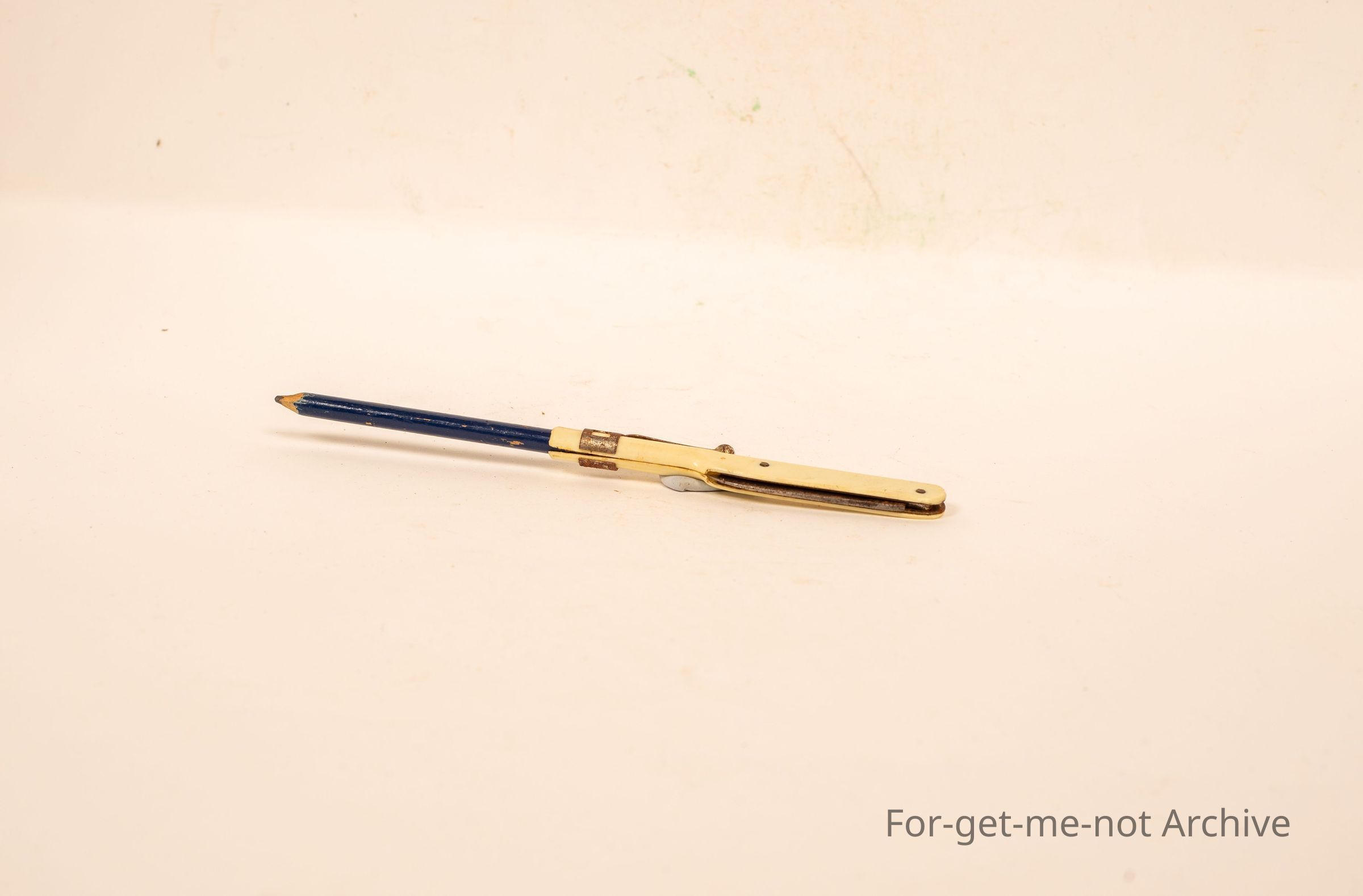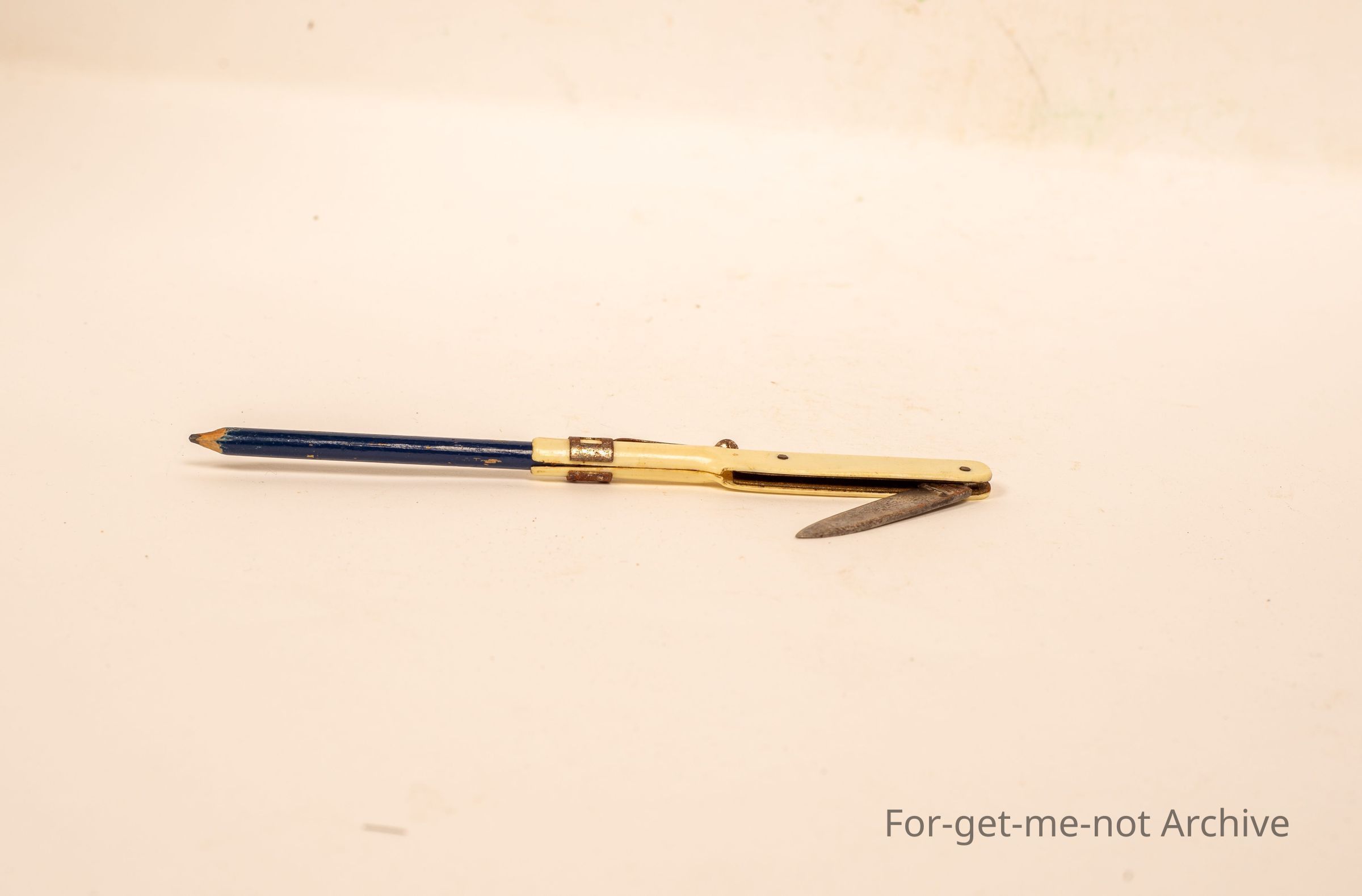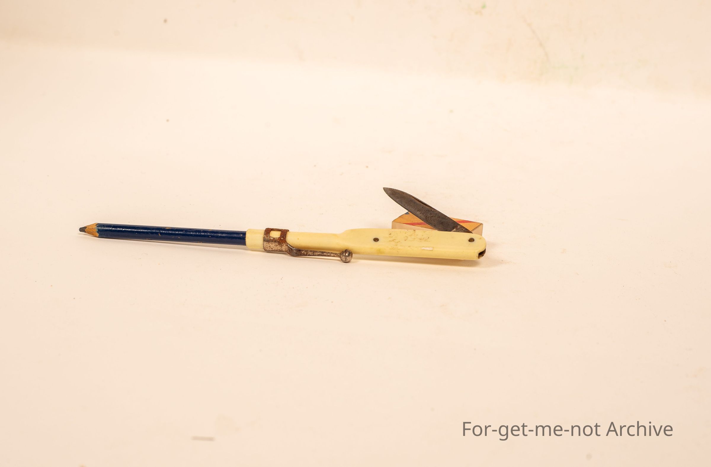 Small pen, in a plastic thing with a pocket knife blade one end. the other end holds a small pencil and it has a fitter to go in a pocket.