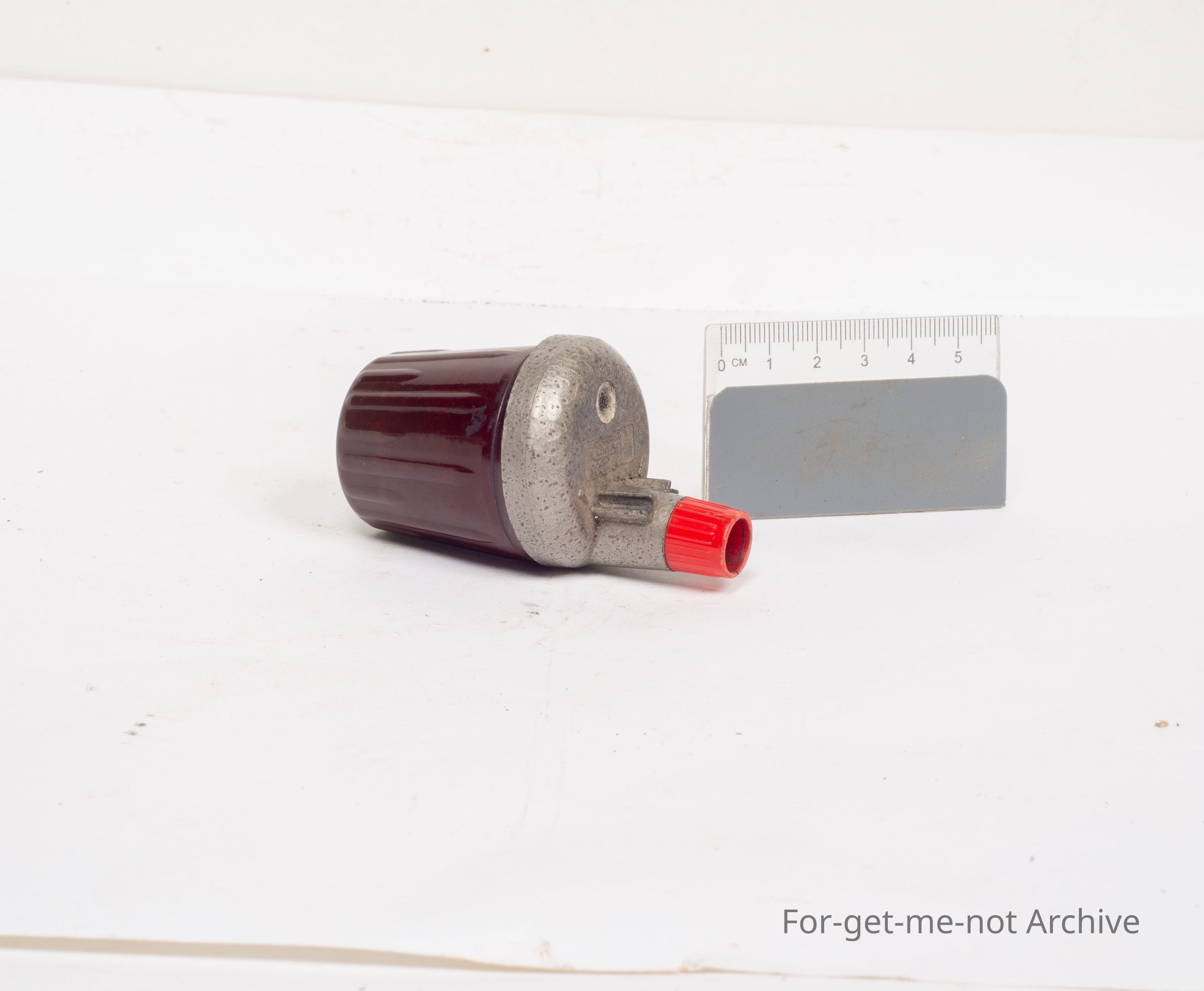 Is a small pencil sharpener, meant to be on a spud on a base which is missing. Made in Germany. Bakelite base. No doubt it's well made if it's German.