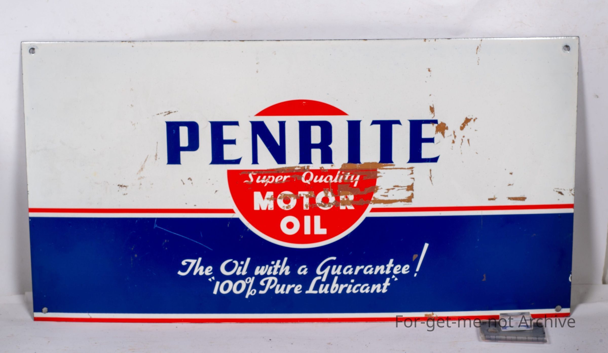 Sangeet Collection. This is an enamel sign, advertising Penrite Super Quality Motor Oil. The oil with a guarantee, a bit of maybe glue on it. Other than that, in good very good order.Collection