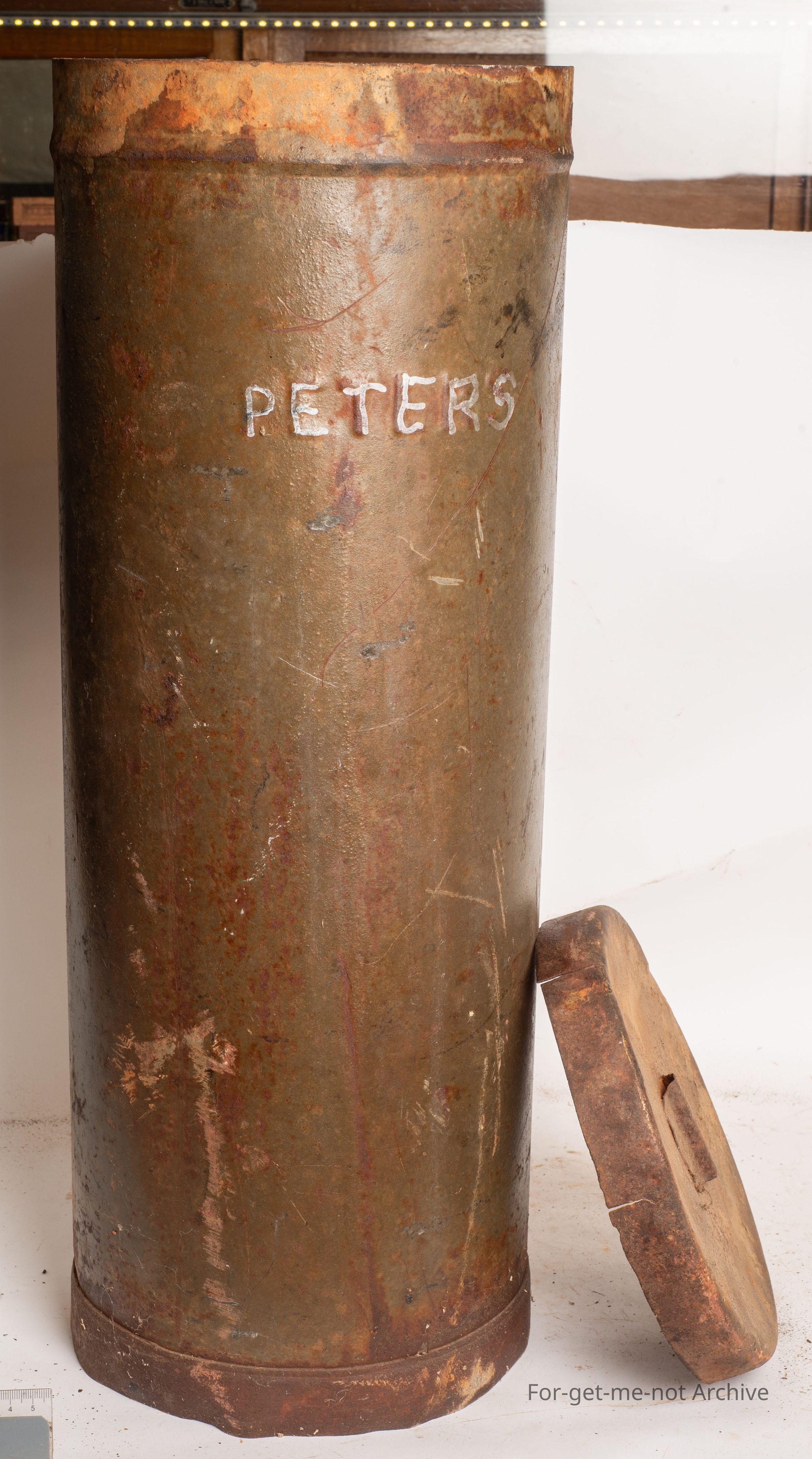 This is the larger size bulk ice cream can from Peter's, with lid. This was found in the tip at Leonor in Western Australia. Lovely piece. Embossed into the side is Peter's.