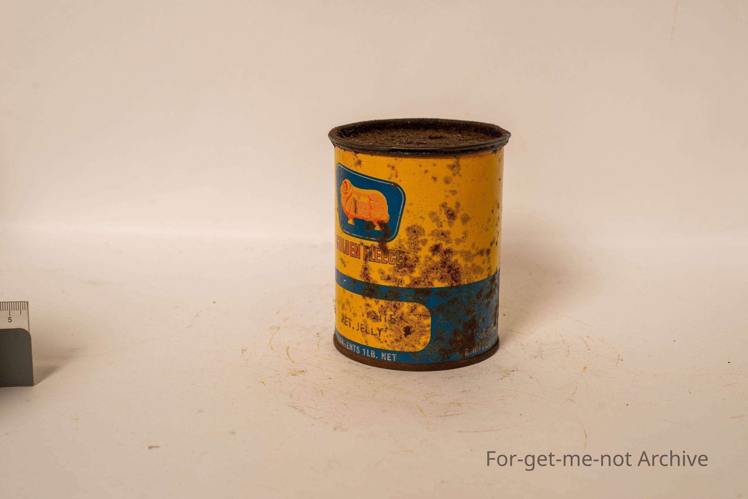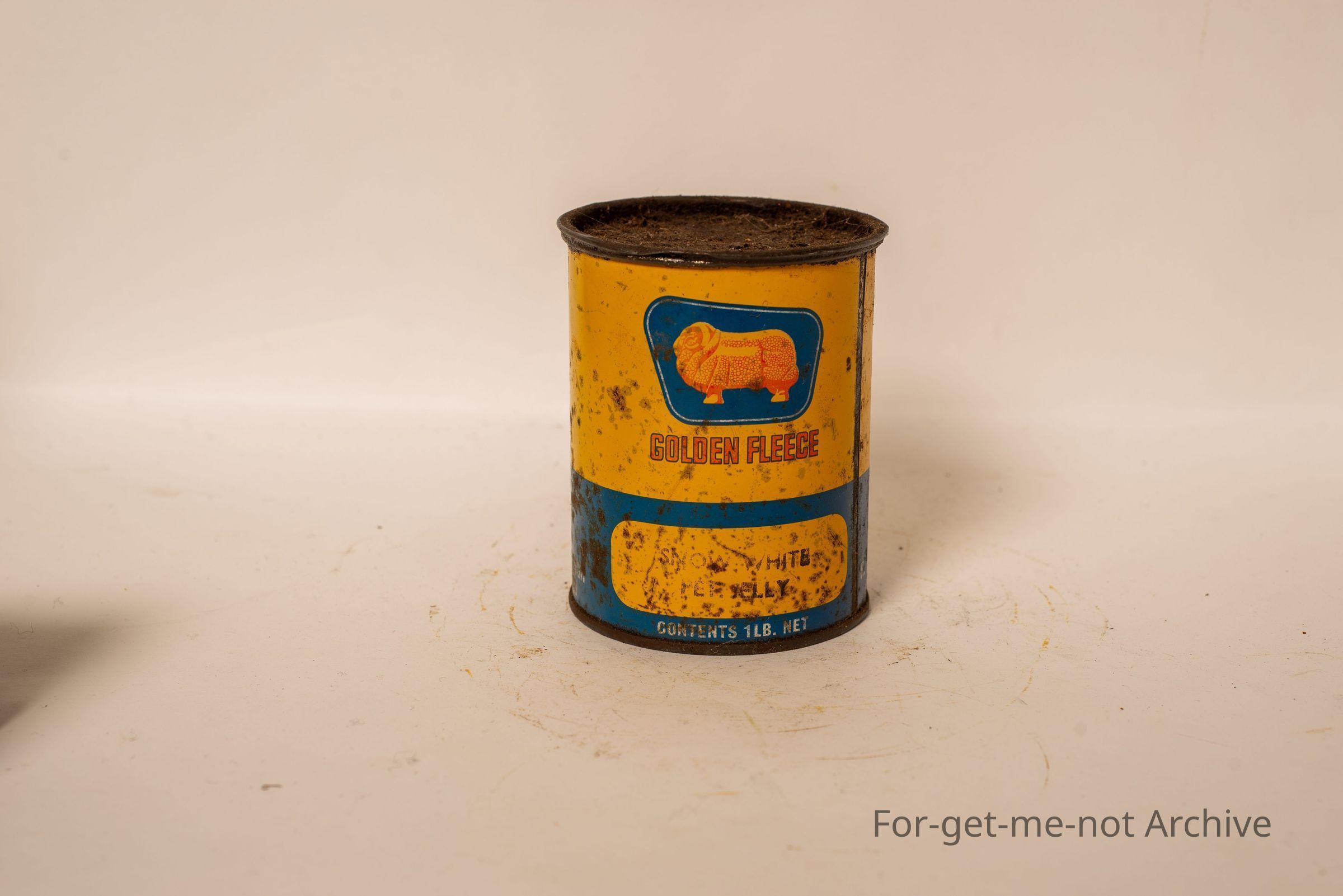 Is a golden fleece tin of petroleum jelly, 1 pound capacity. Just ordinary conditions, a bit of foxing going on. HG Sleigh