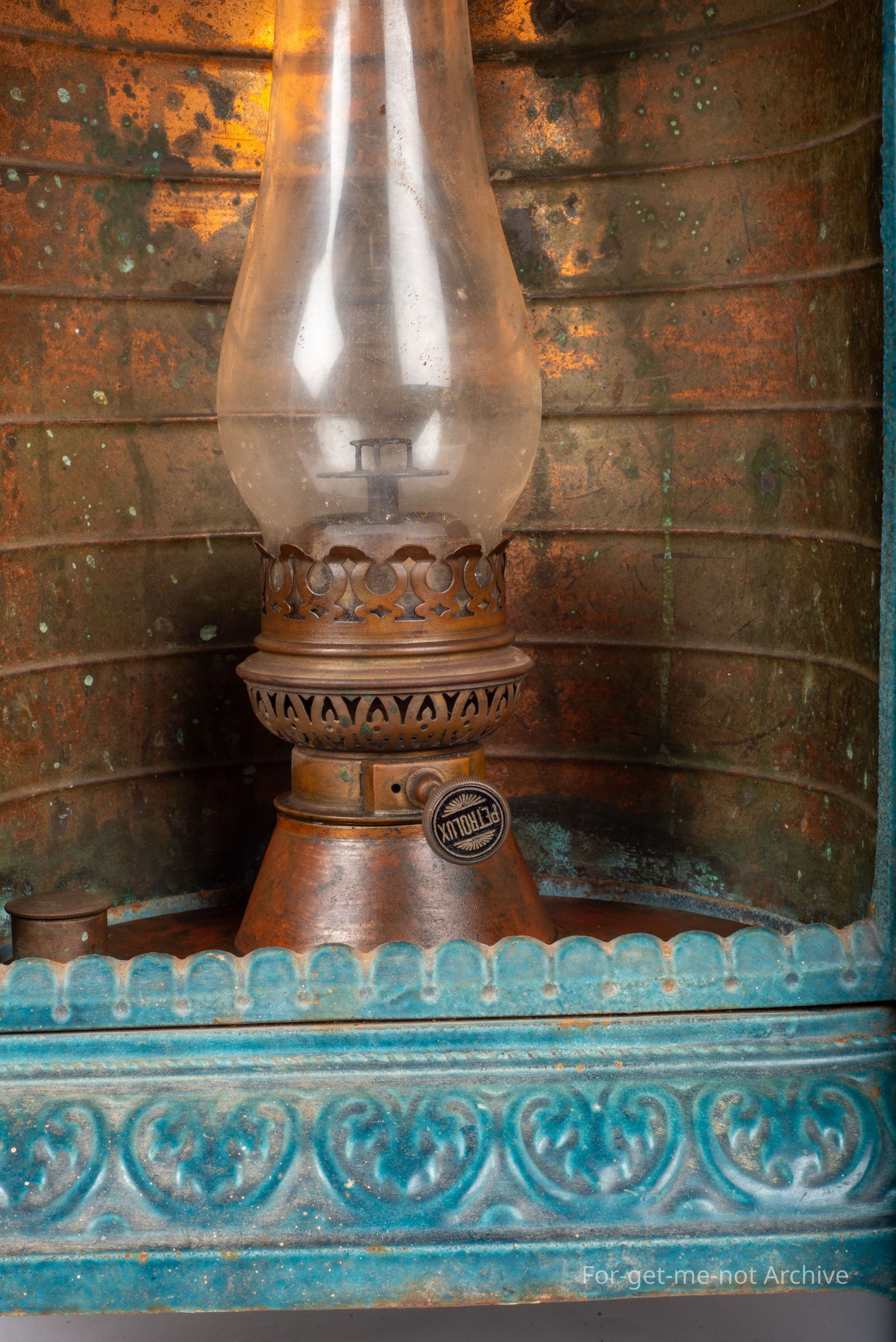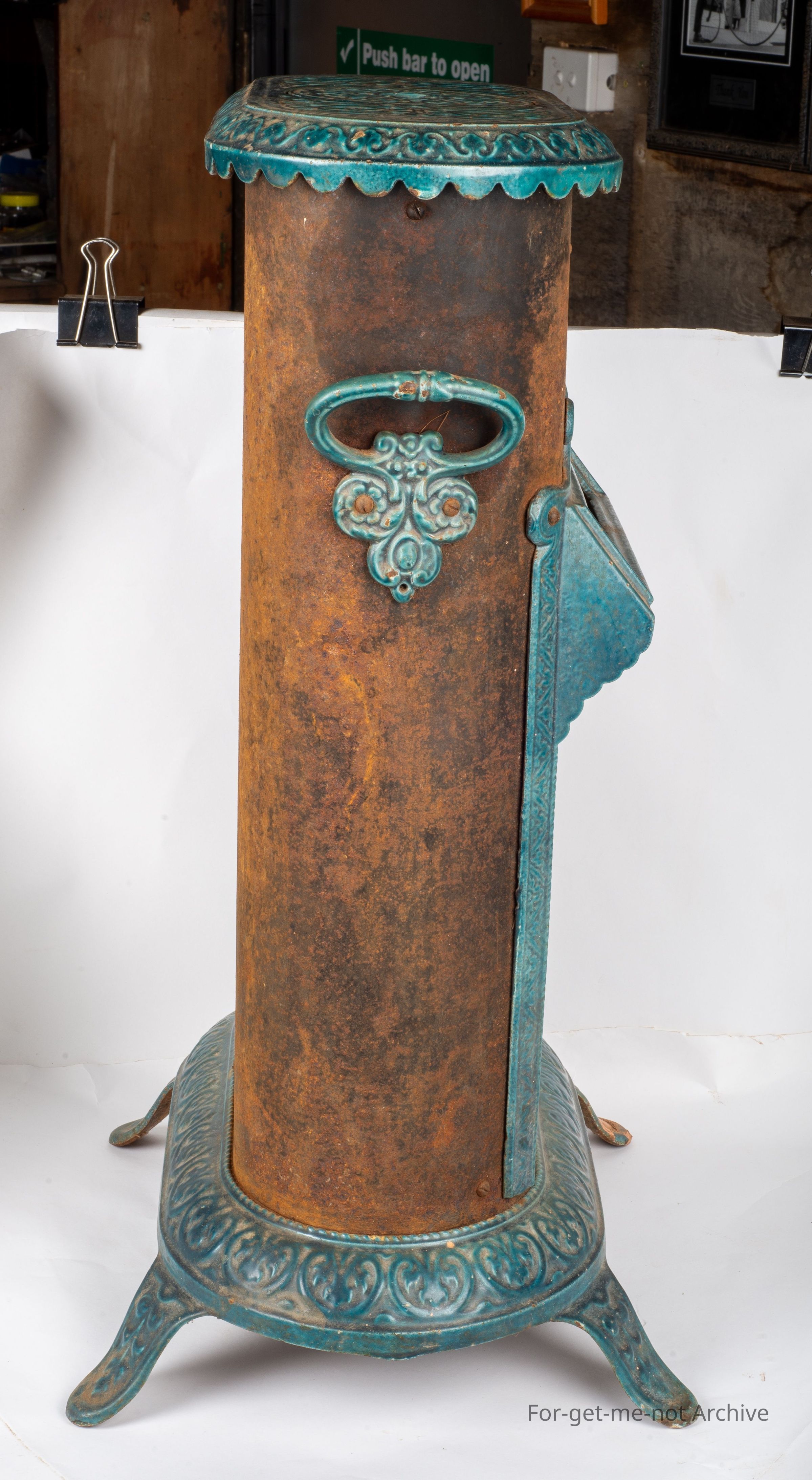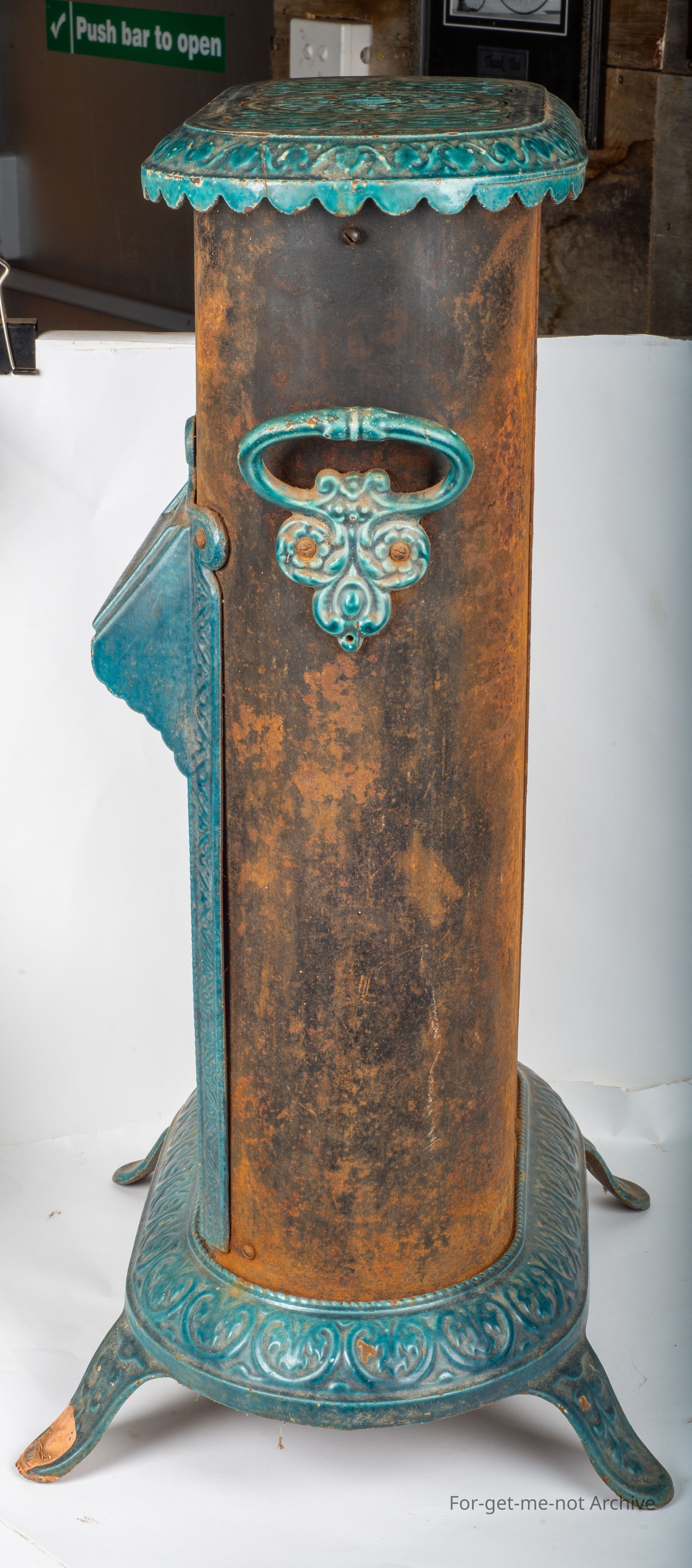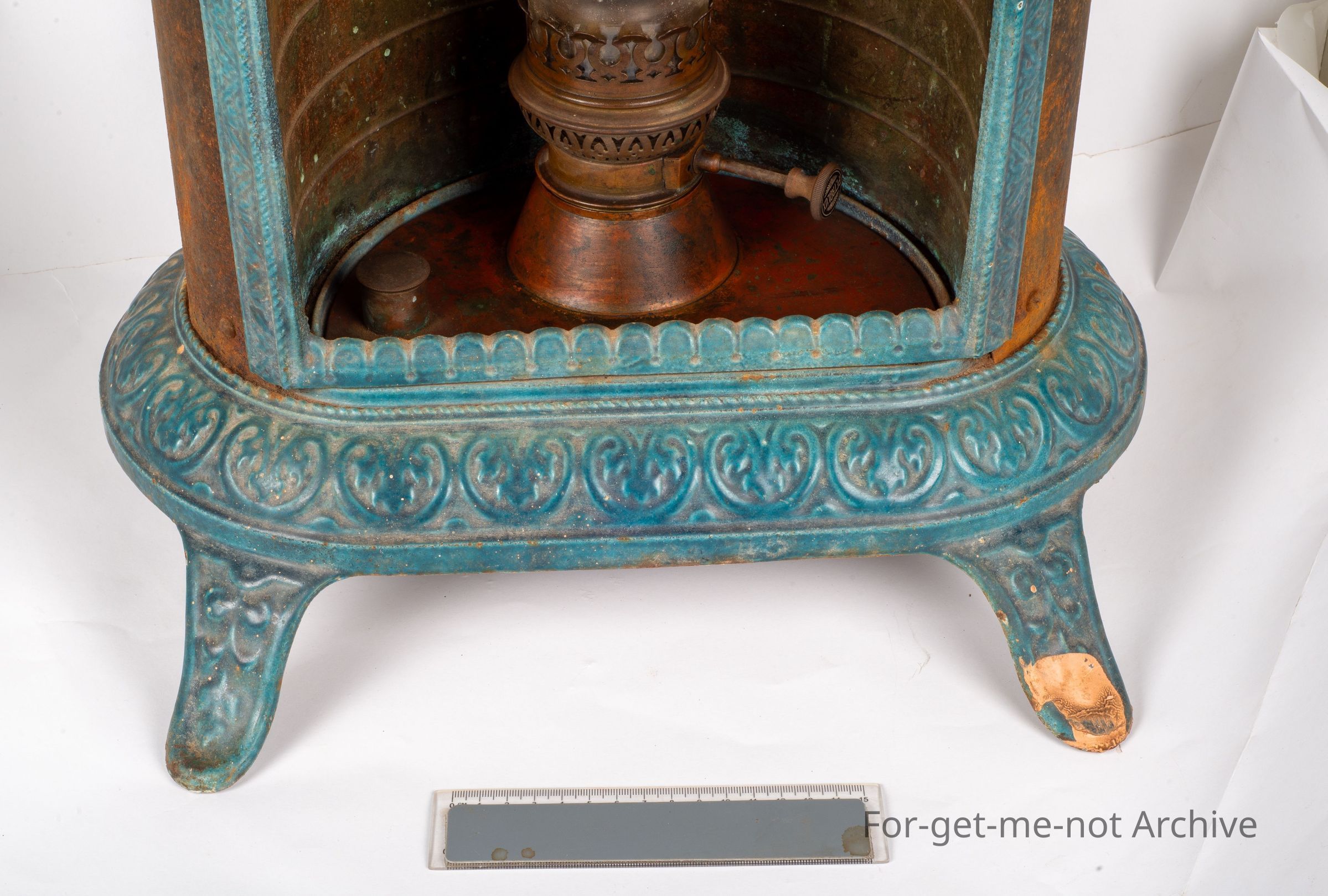 Early oil fired heater made by Petrolux this heater has a ornate cast iron frame, made in Germany, very good order for age