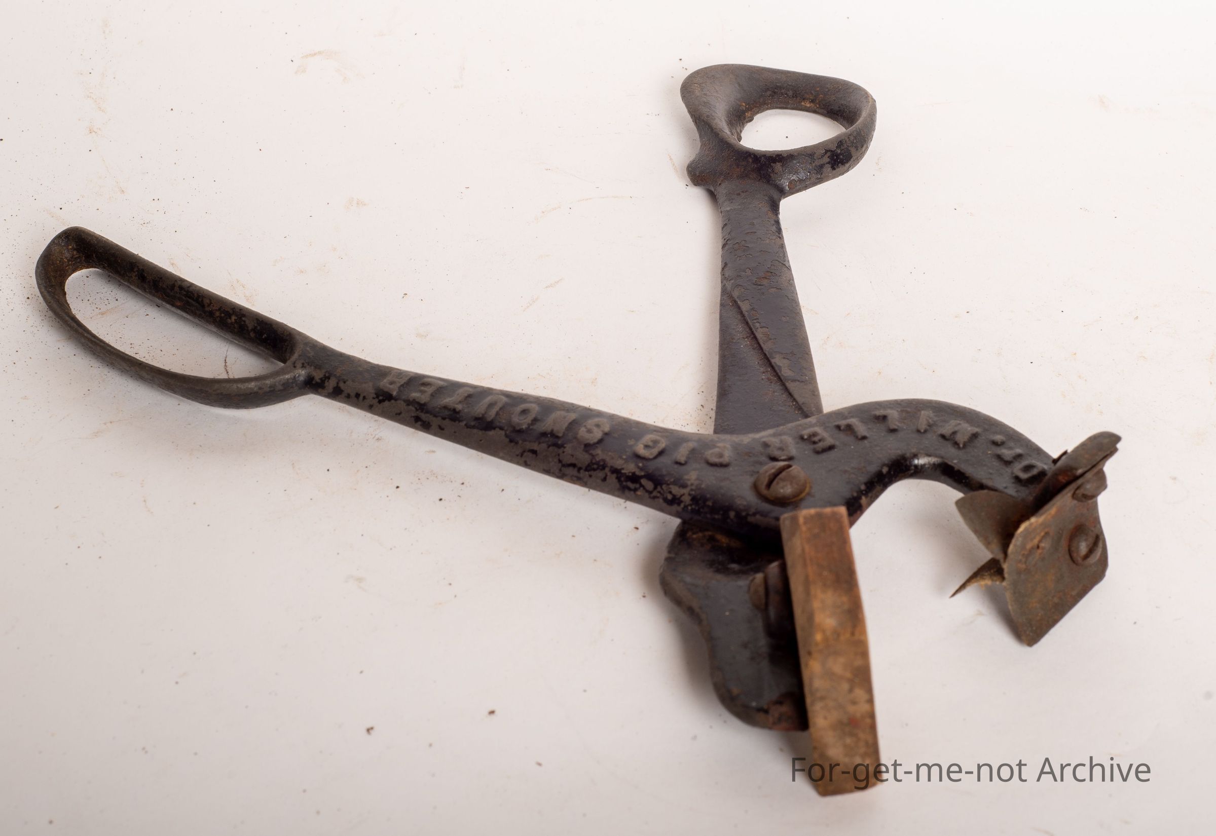 It's known as the pig snouter. This cut a segment out of the snout of a pig to stop them rooting. Not easily found. In good condition