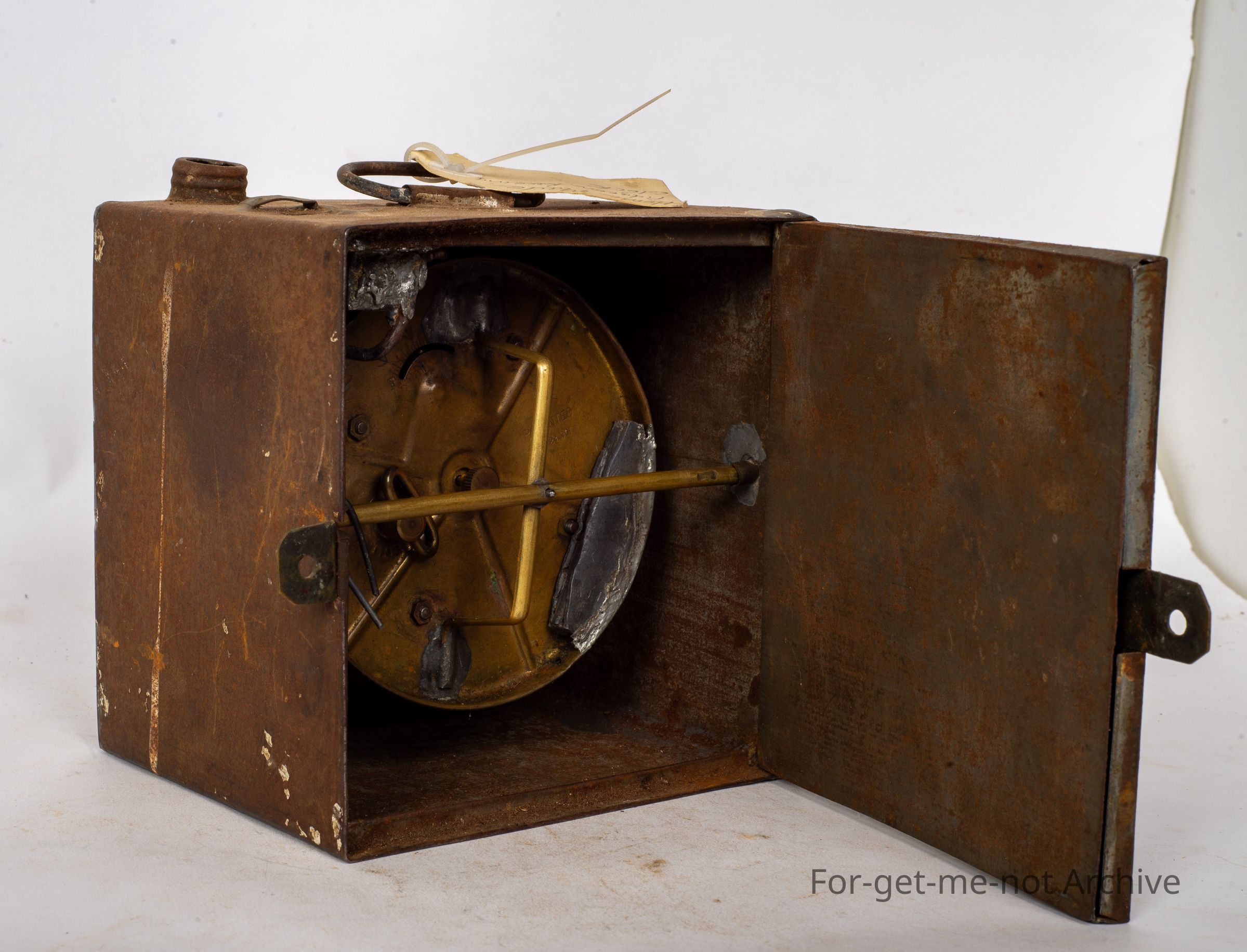 This is another homemade square pigeon racing clock. Hard to find. Has the, push down spring loaded ring trapper on it. The door wonderful piece from another era. All digital today.Collection