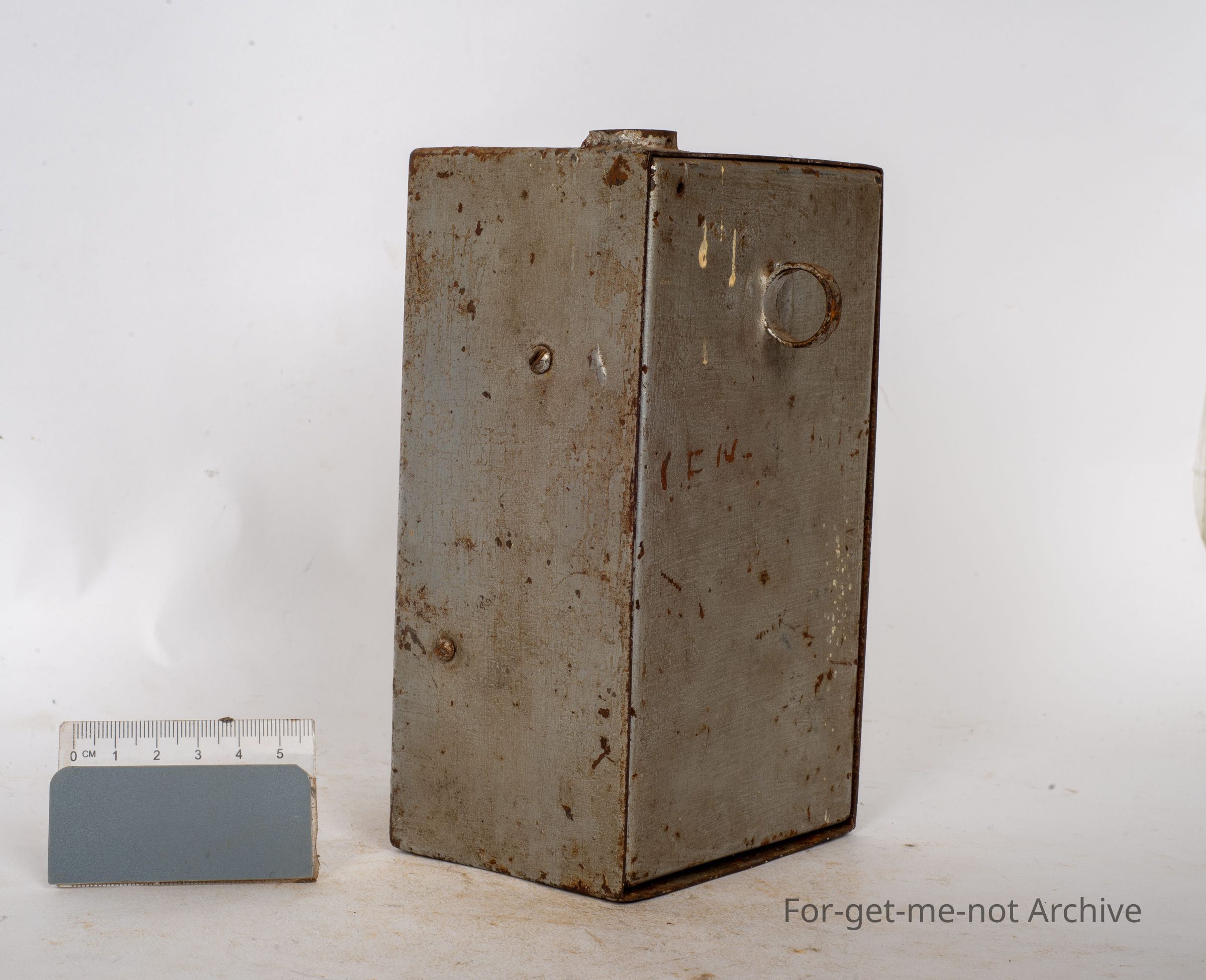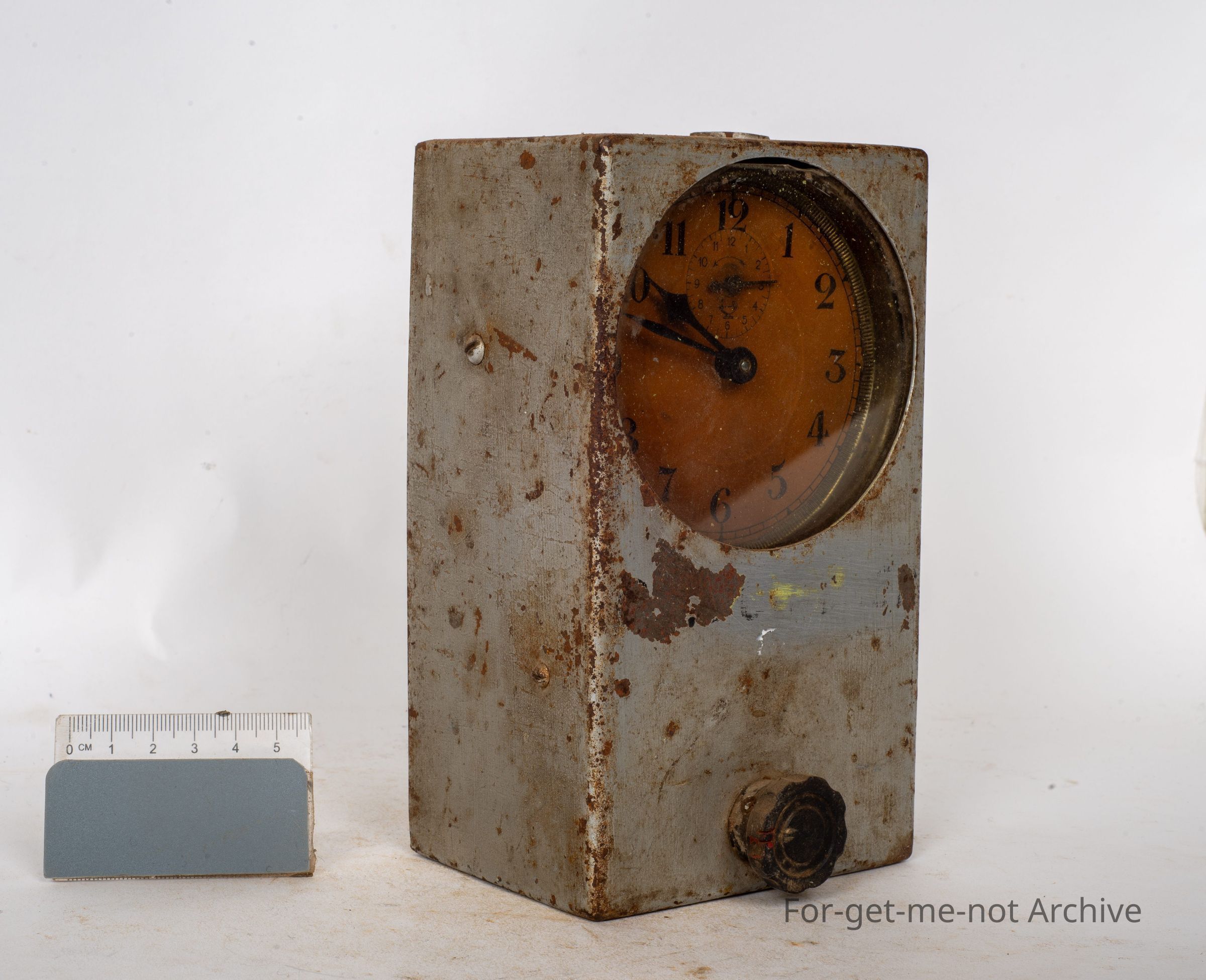 This is the hand operated apparatus that opened up the rubber leg band that was put on pigeons at their dispatch site, so that when they got to the loft, it was pulled off their leg, jammed in the top of the clock to lock the time the pigeon got back to the loft. These tools are pretty hard to find. This one is a lucky survivor.Collection