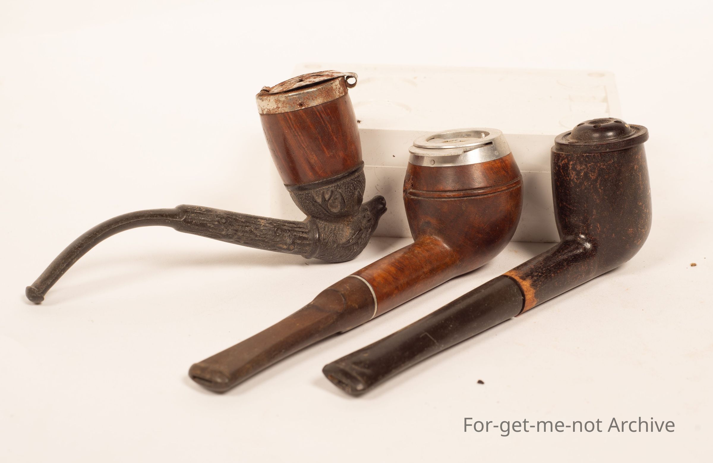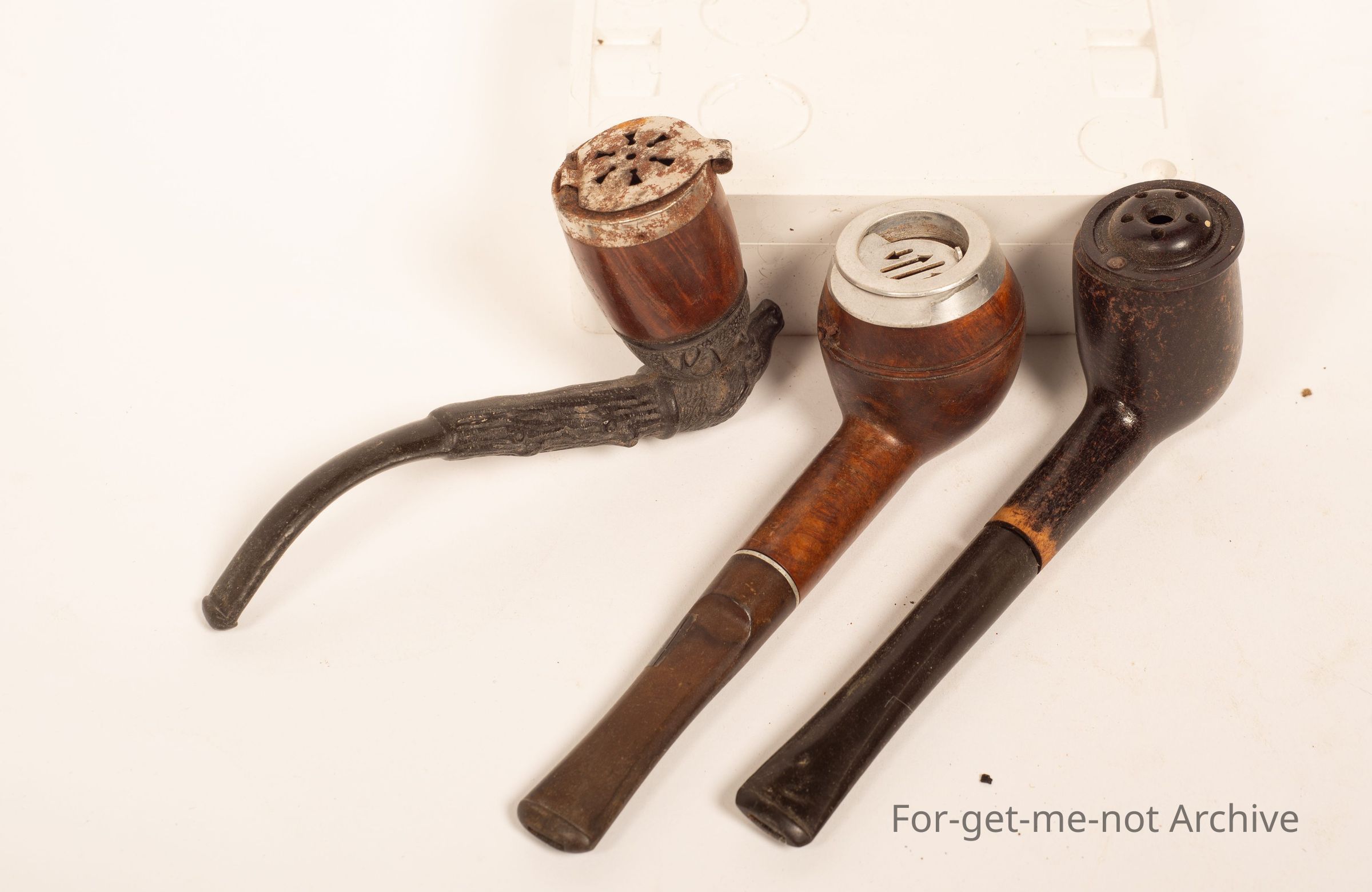 Group of 3 pipes, all with spark arresters of aluminium steel and Bakelite,