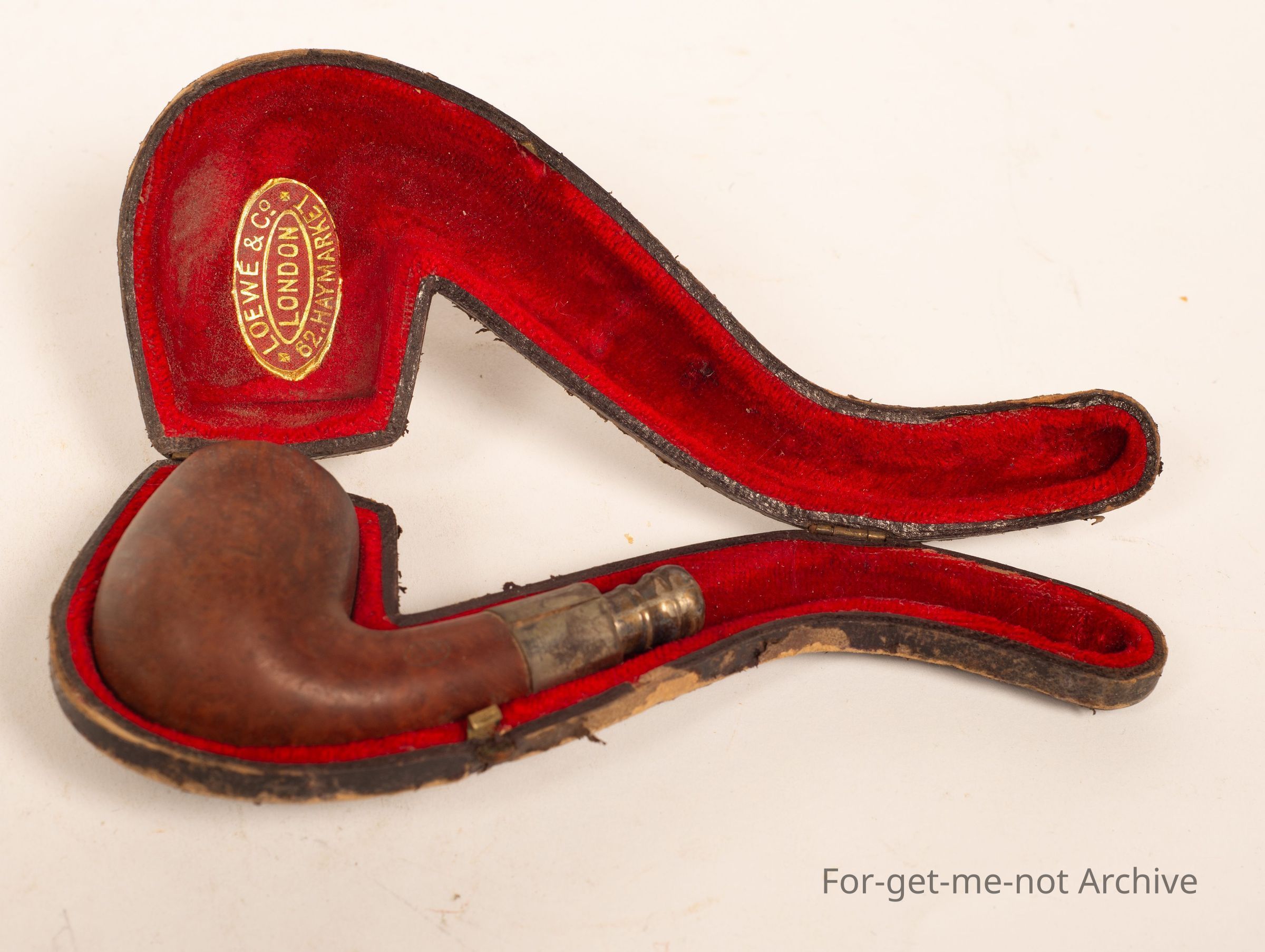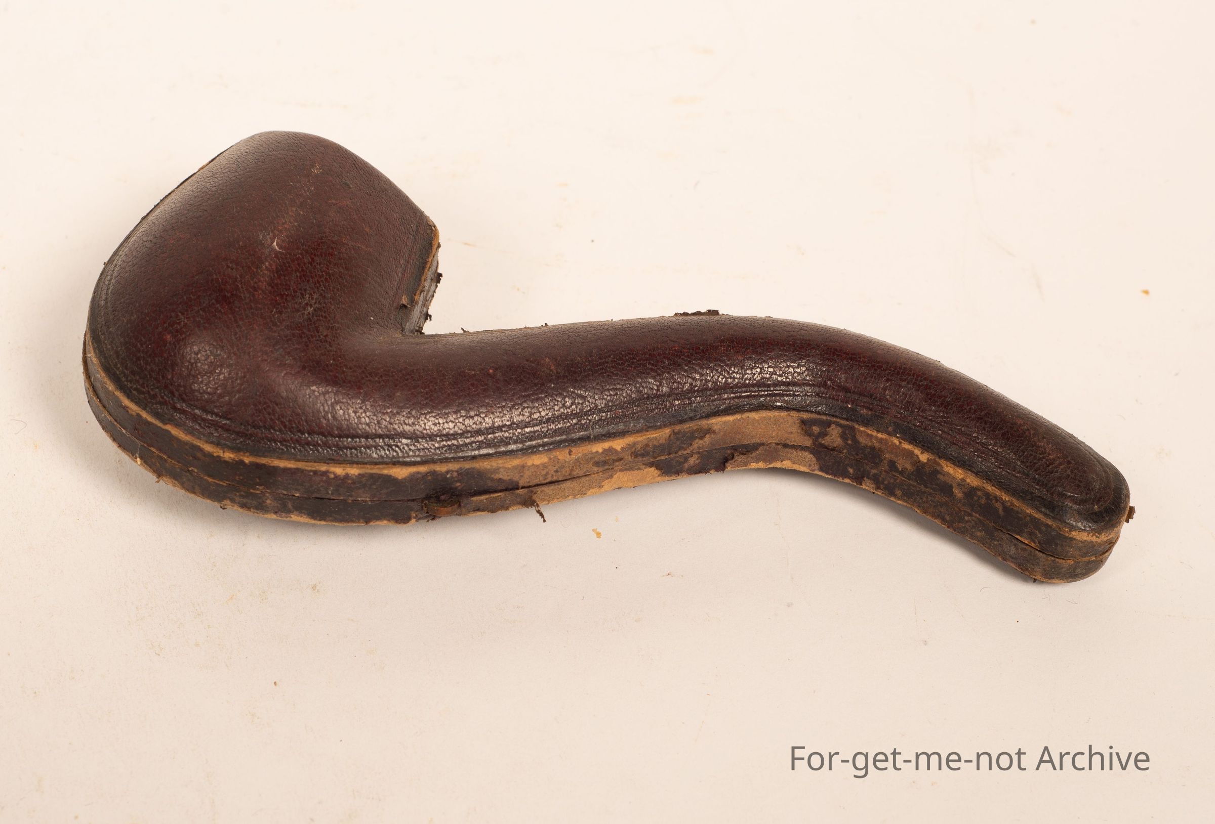 A pipe case, with pipe, well worn condition,