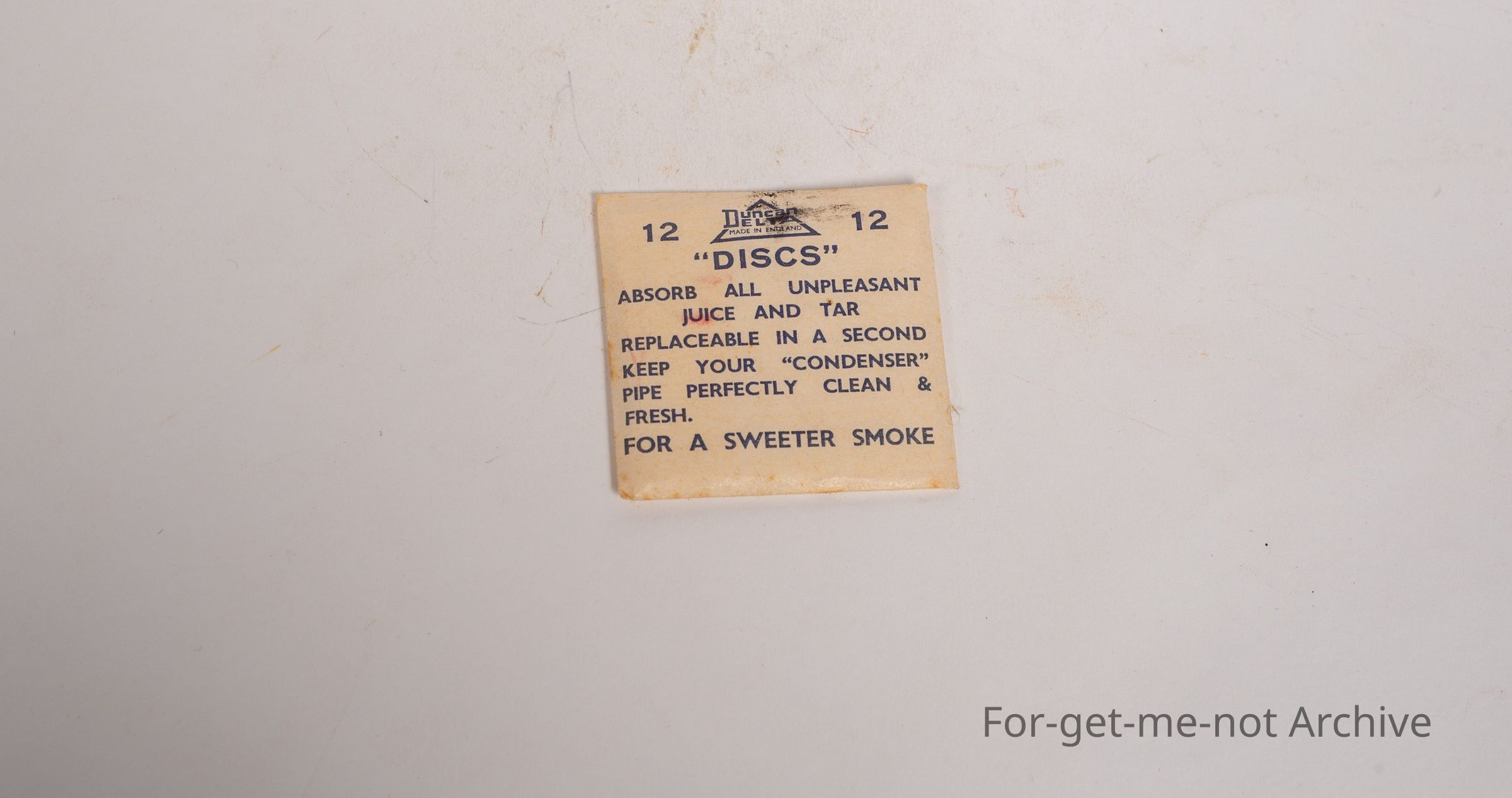 Small packet of discs to put in the bottom of a pipe, to absorb all unpleasant juice and tar, effects.