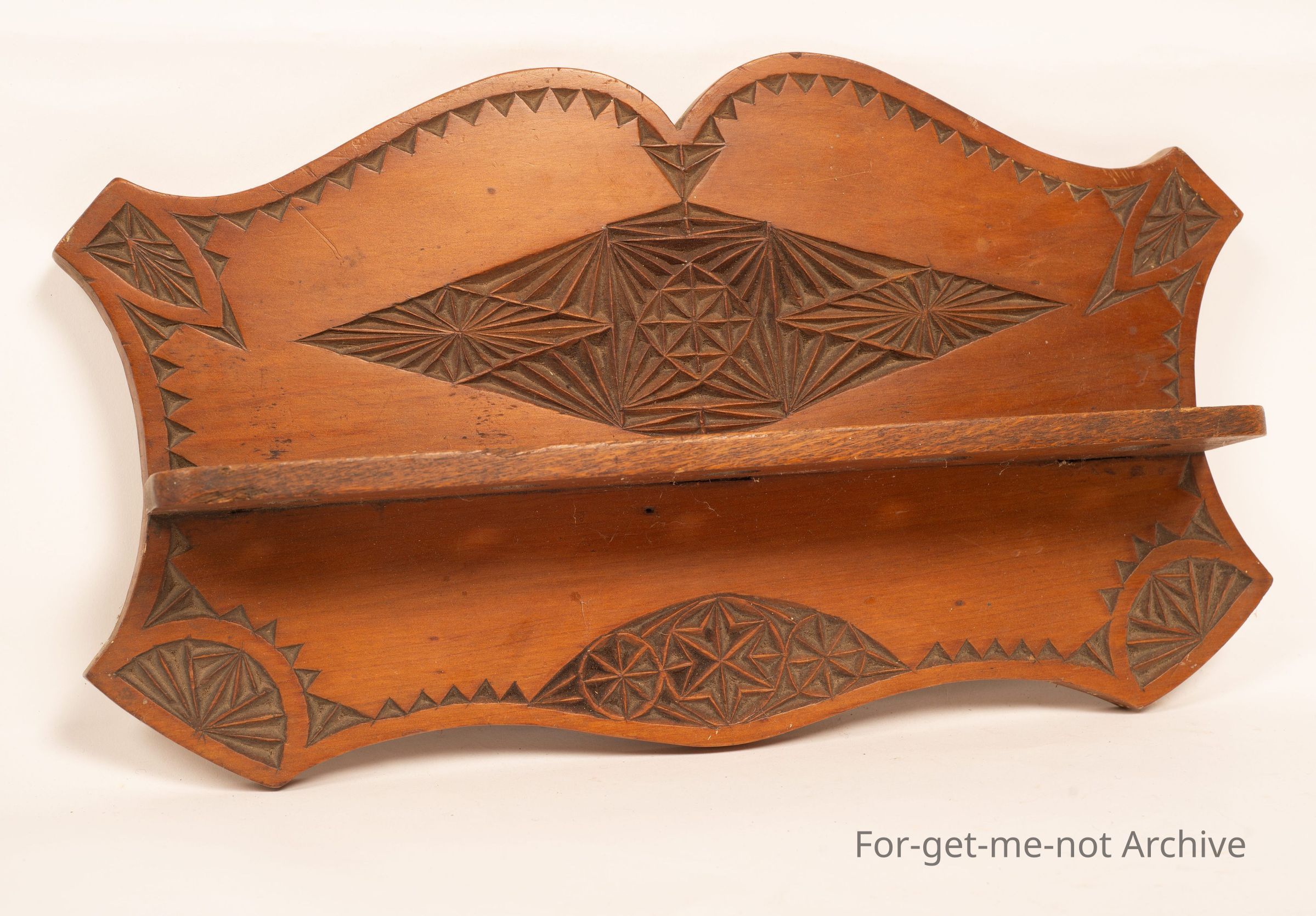 A wooden chip craft pipe rack holding 5 pipes would have hung on a wall.