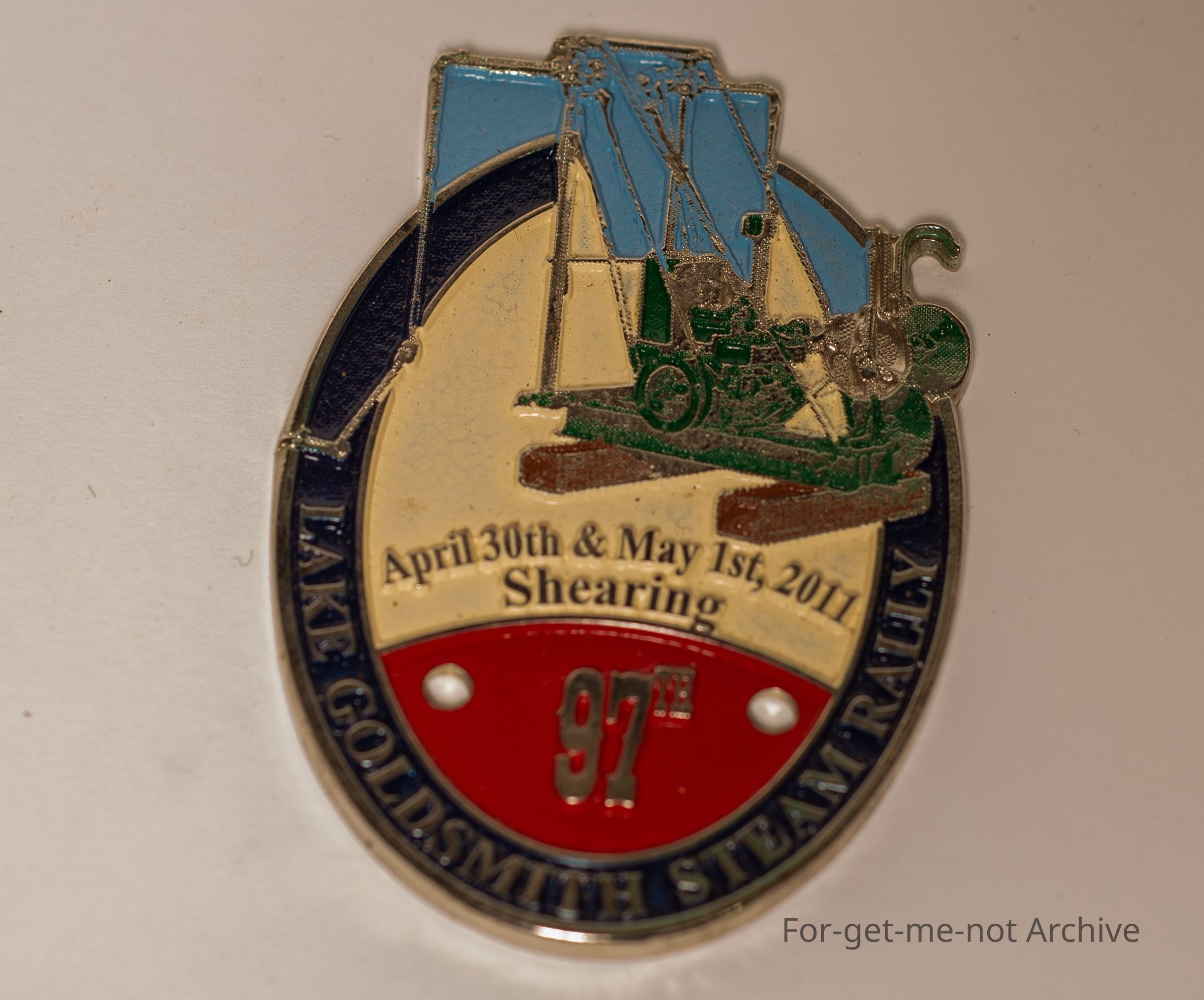 Is a plaque commemorating the 97th Lake Goldsmiths Steam Rally which featured collectibles in the shearing field with an image of a 2 stand shearing plant.