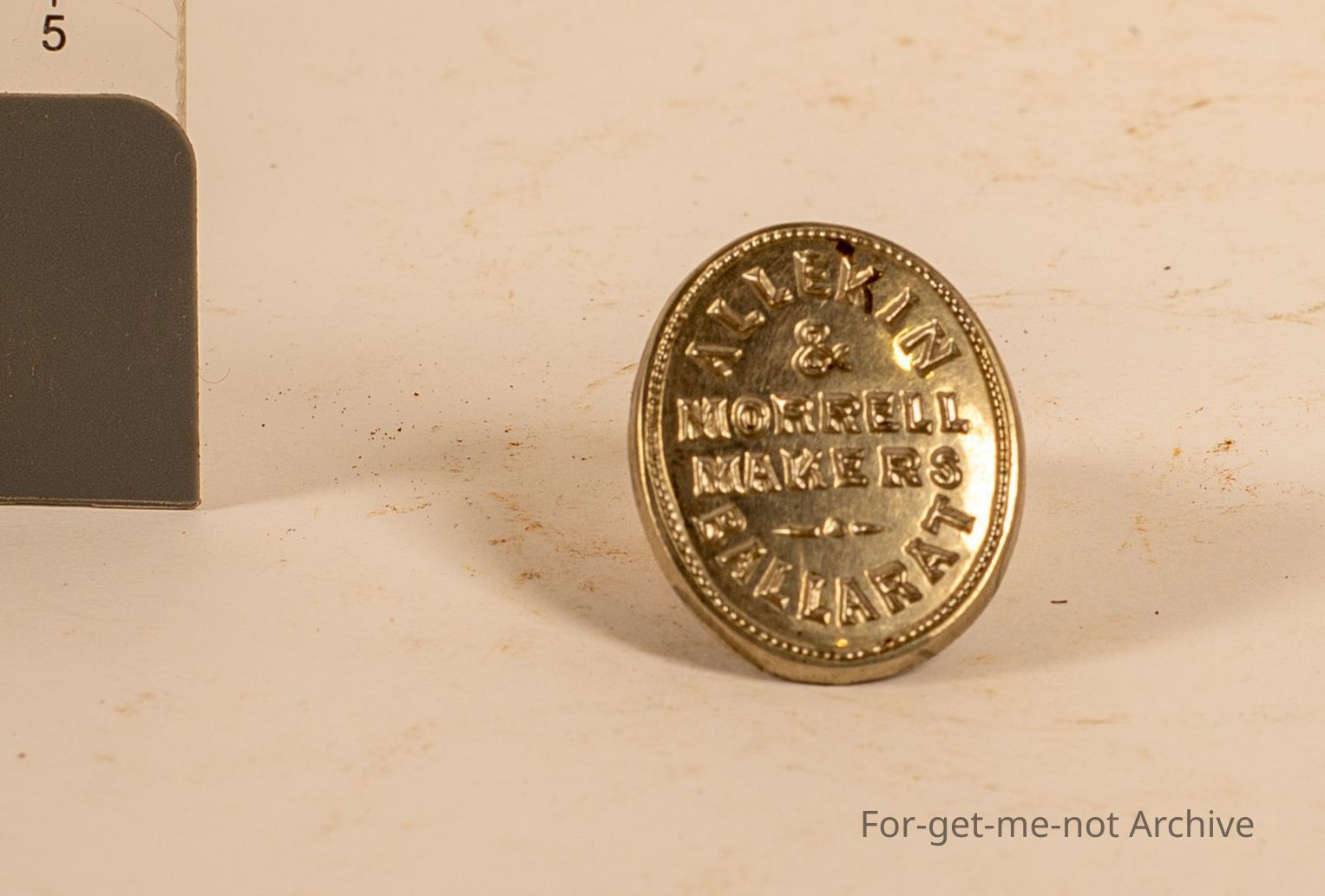 An oval settlers plaque from Allekin and Morrell Ballarat, Probably never used due to a spelling mistake. Still a rare item.