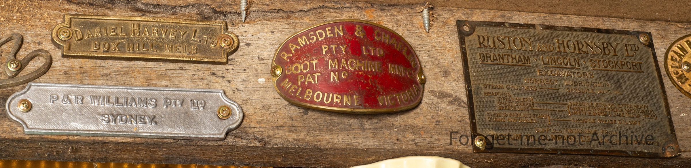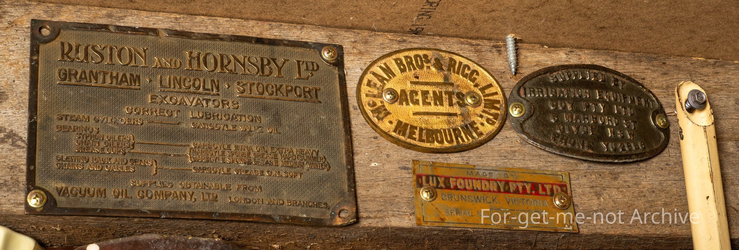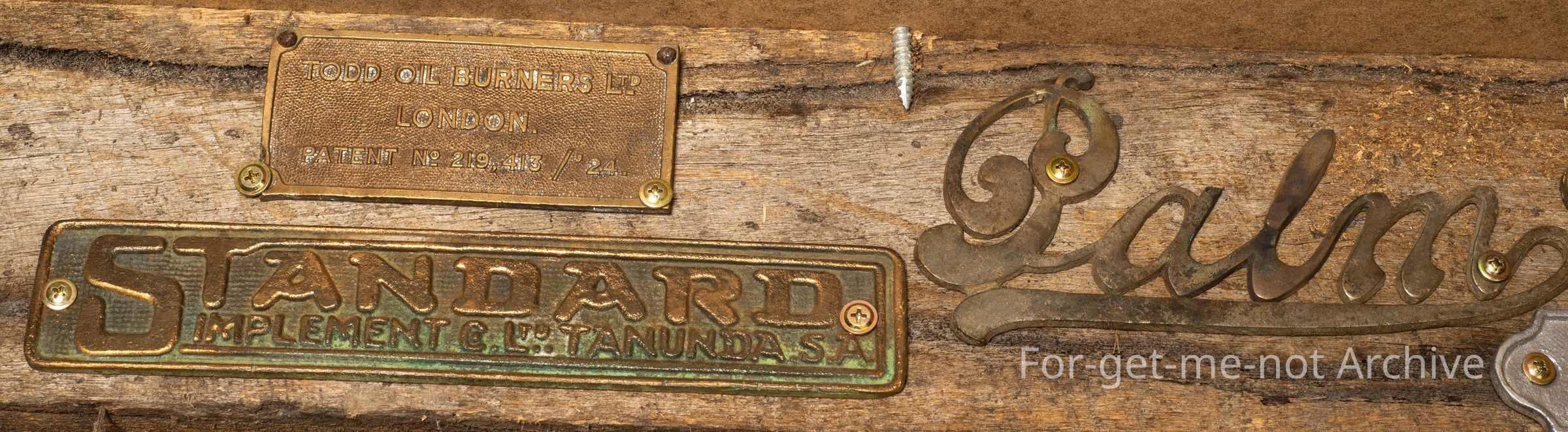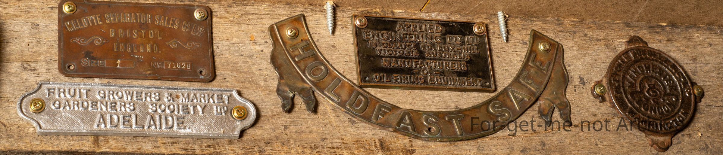 15 manufacturers, plaques, all different materials, some cast iron, some brass, Different, companies.