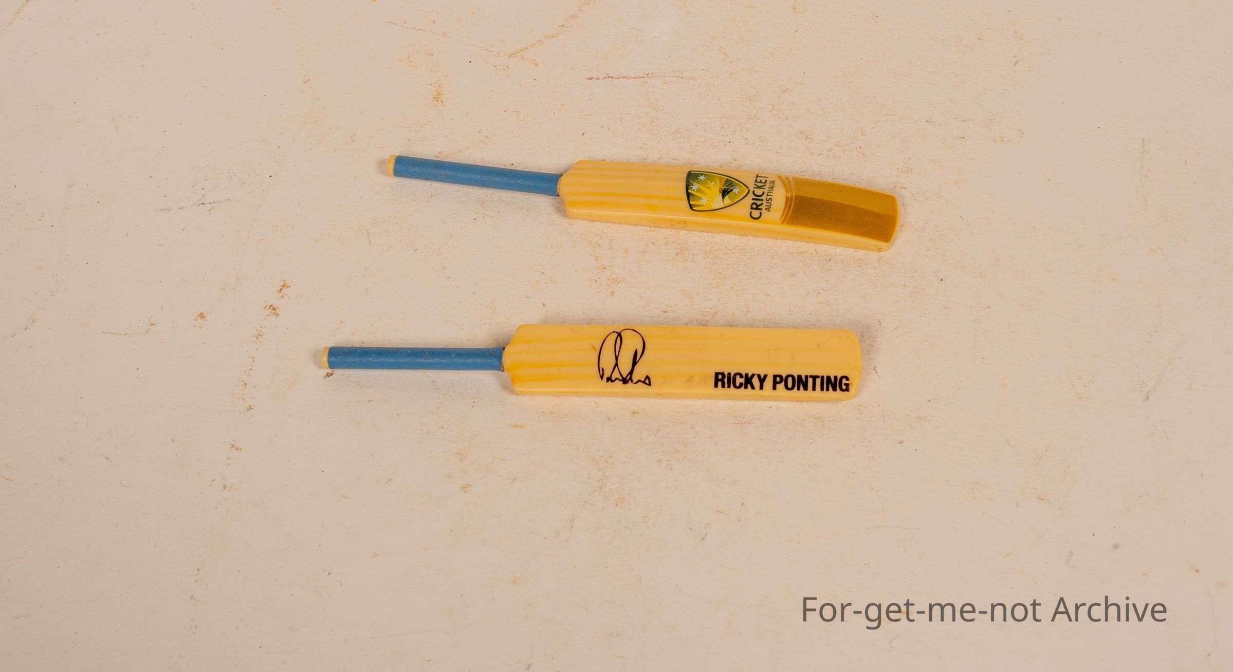 Cricket related, 2 little plastic bats as, commemorative things. 1 for Ricky Ponting, the other one for Michael Clark. These are both miniature plastics, with Cricket Australia embossed on the back. The signature of Clark and Ponting on the front, in very good order, probably a little bit unusual.Collection