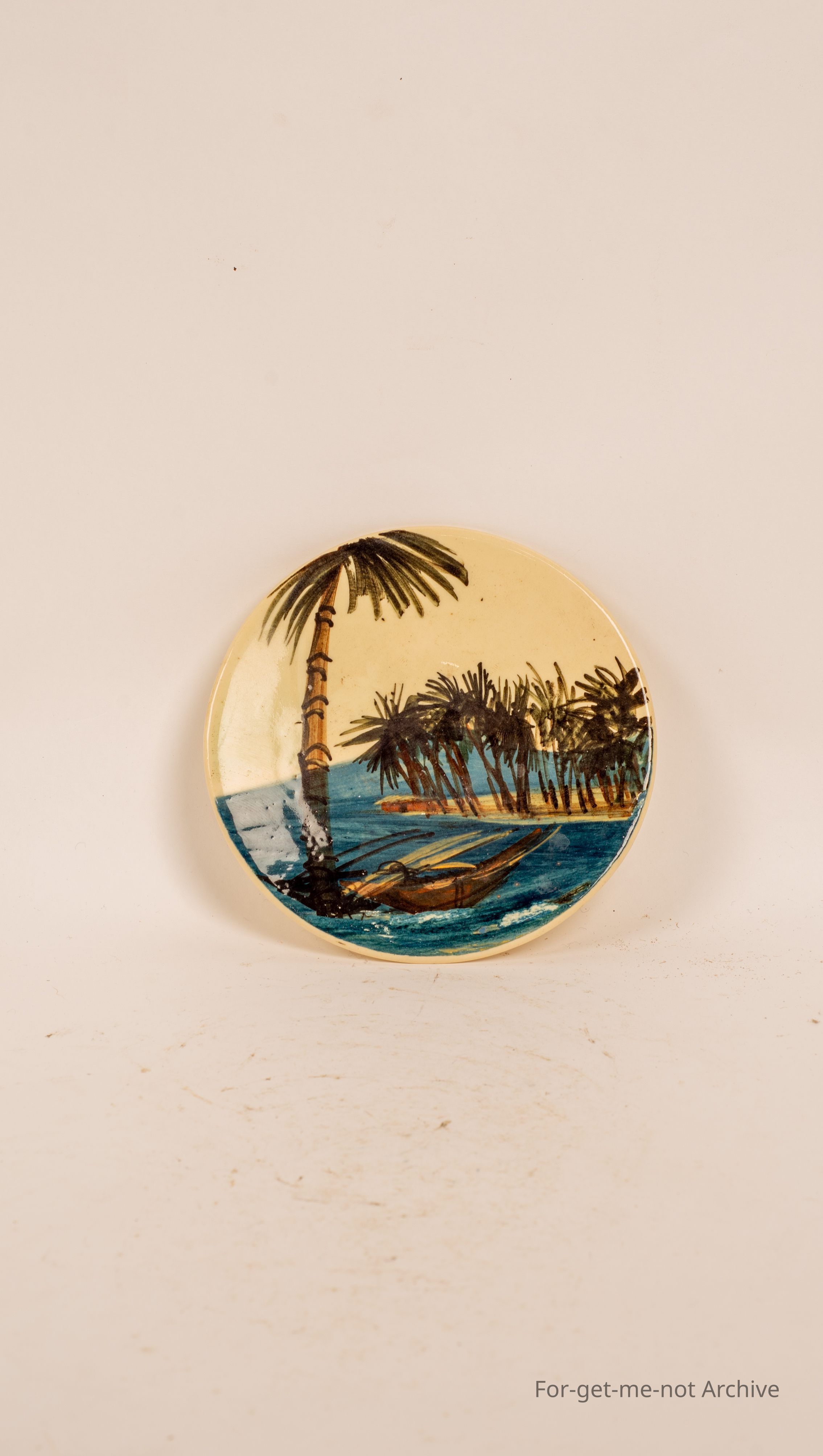 Small plate of seaside with palms, signed Martin Boyd.
