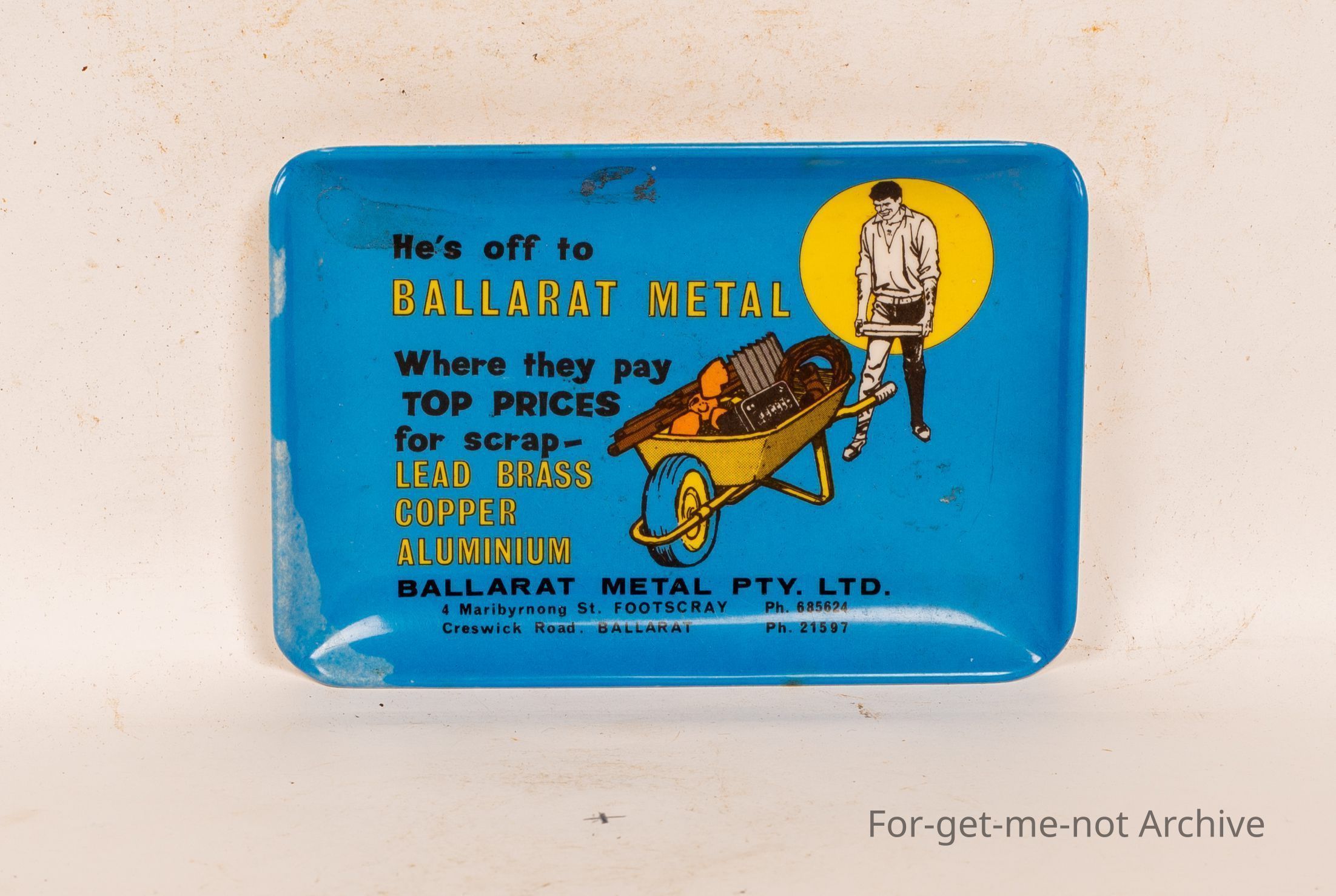 Small advertising, rectangular plate for Ballarat Metals, lead, brass, copper, aluminium