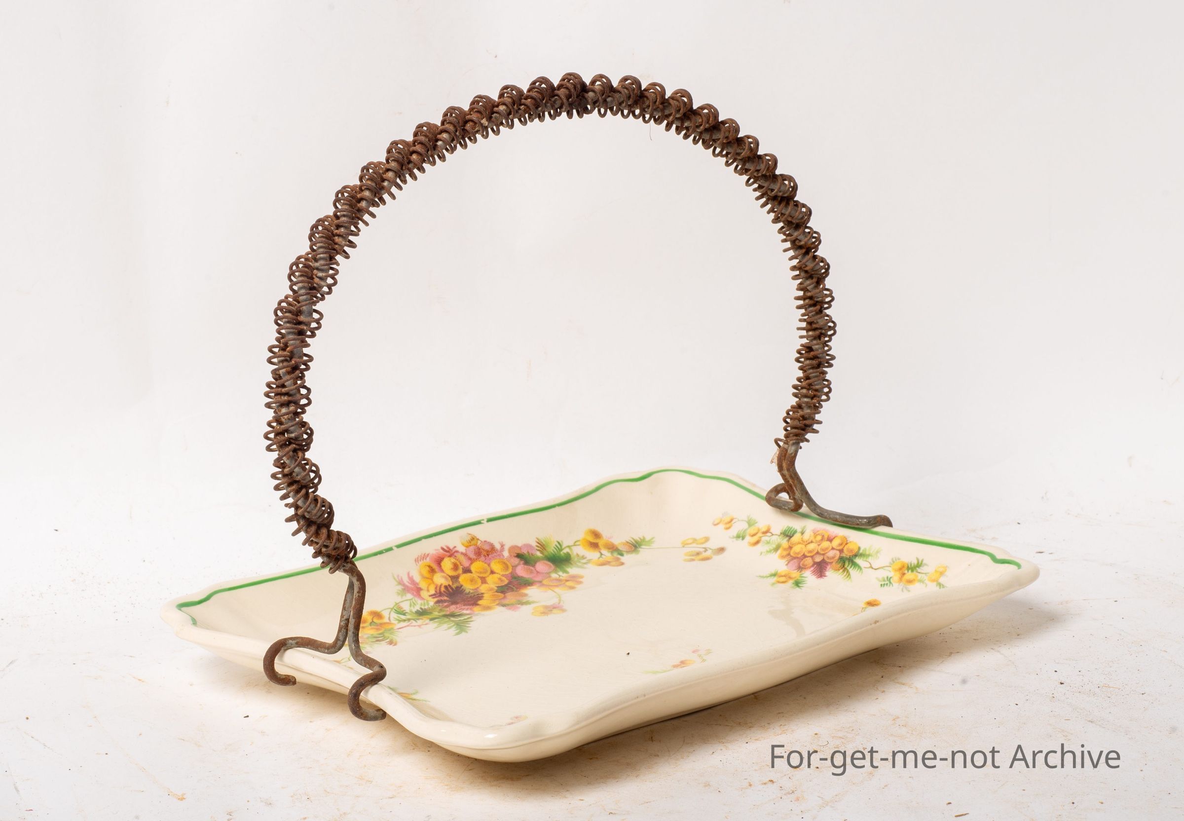 This is a piece of wire work in the form of a plate lifter. Very ornate. It's sprung so that either end of the plate is firmly held in the grips on the lifter. This piece would be, a part of the depression era wire work.Collection