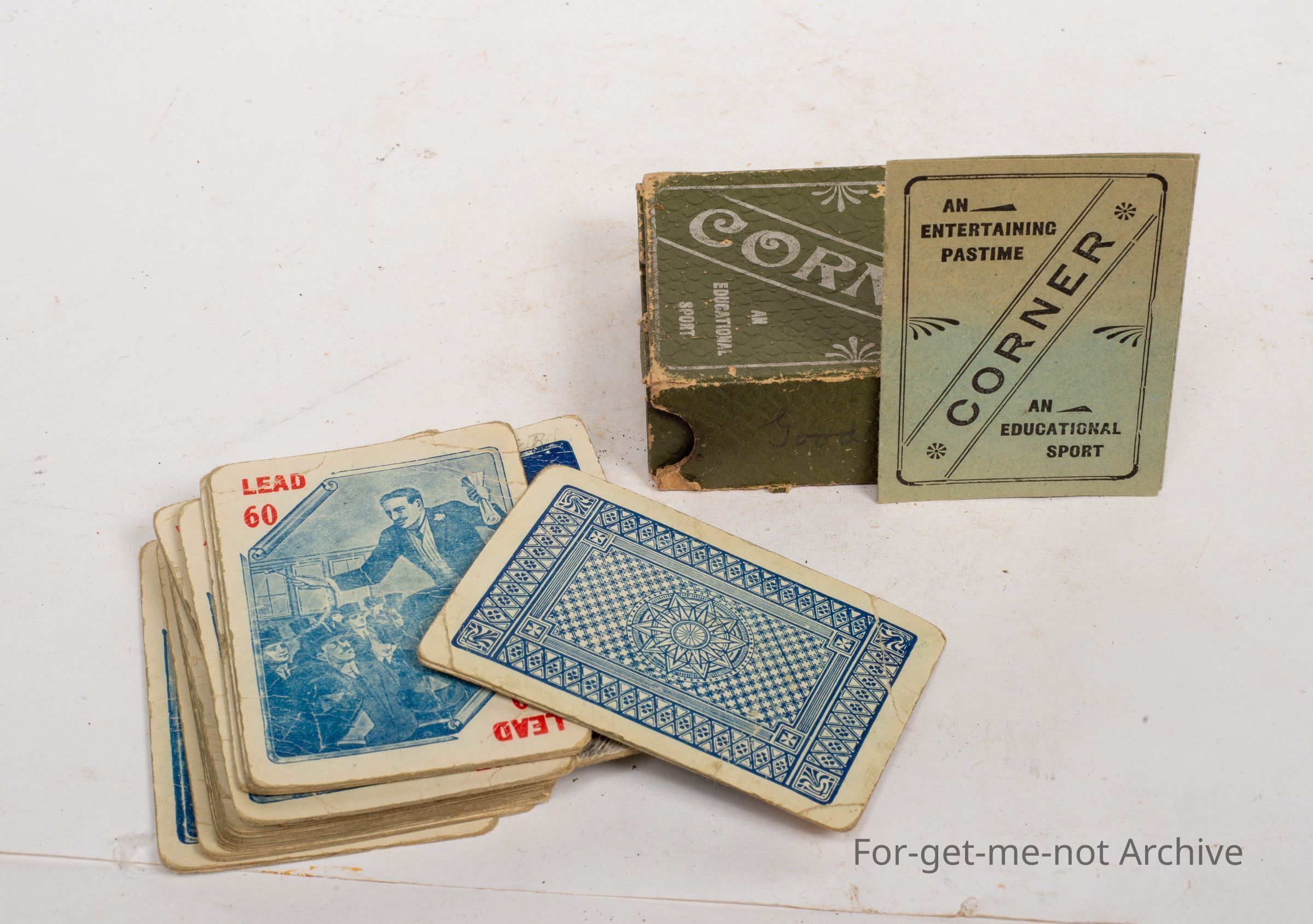 Is a pack of corner playing cards, an entertaining pastime, an educational sport, cards all intact, packaging a bit knocked about