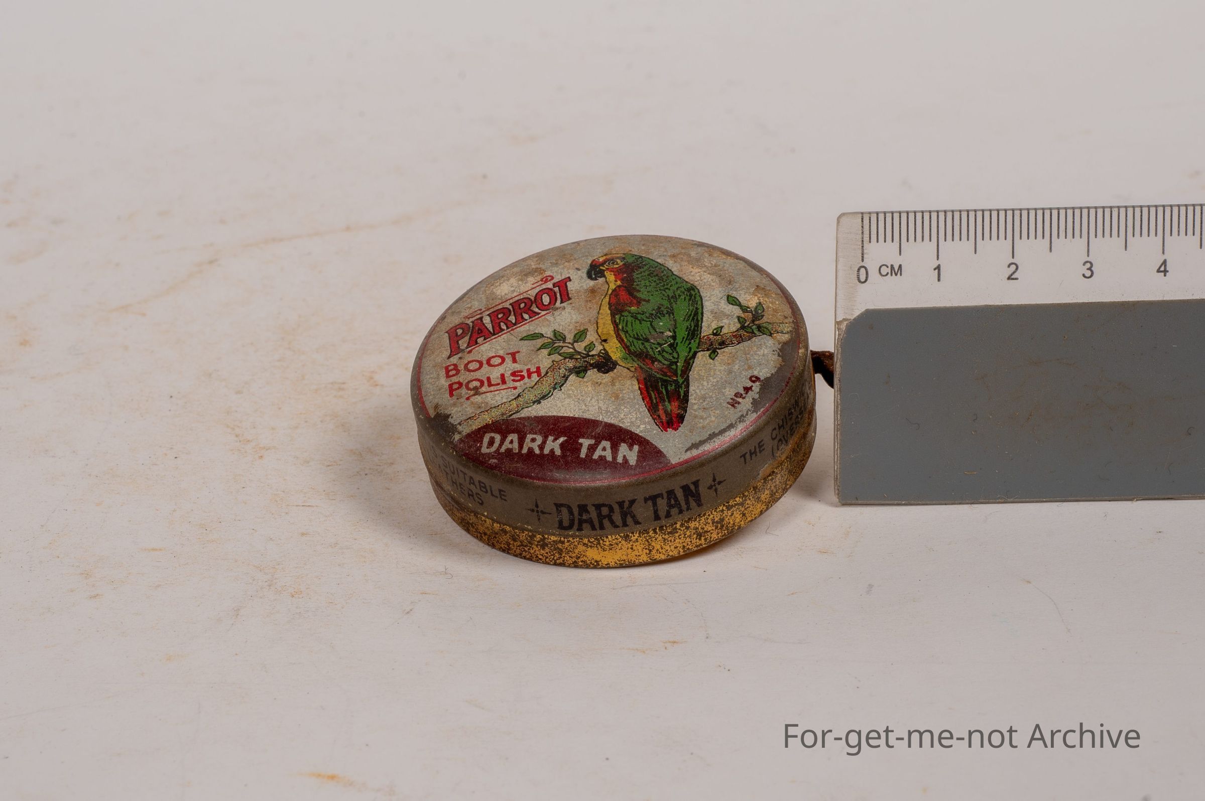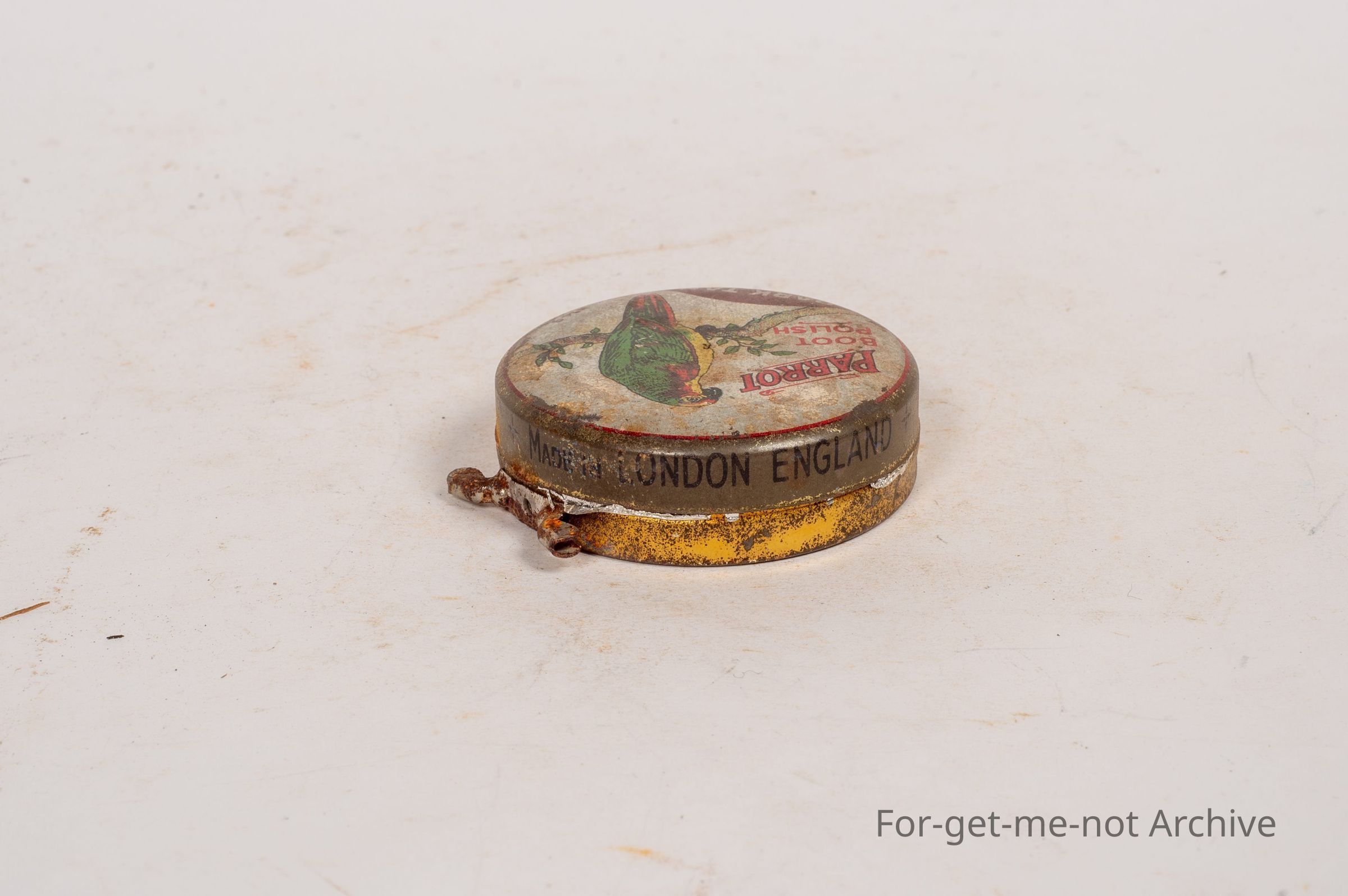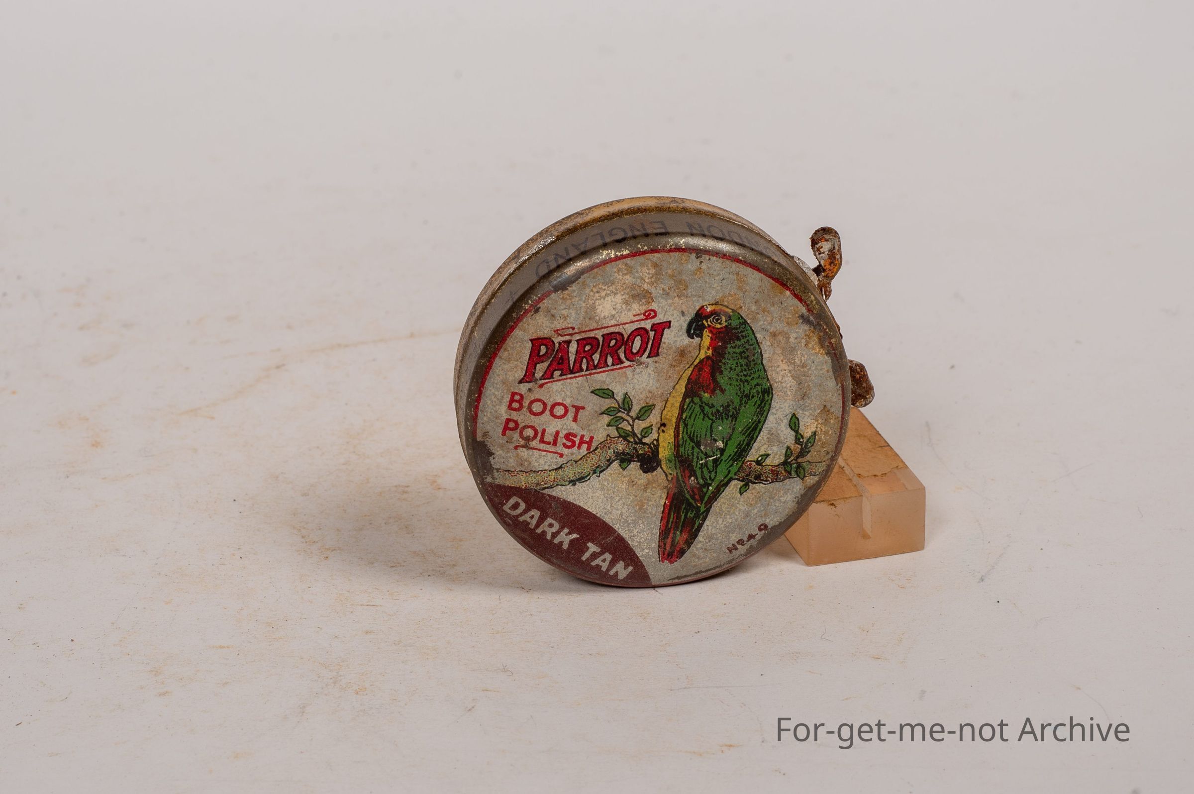 Boot Polish Tin. Parrot Boot Polish, dark tan, naturally image of parrot. Made in England.