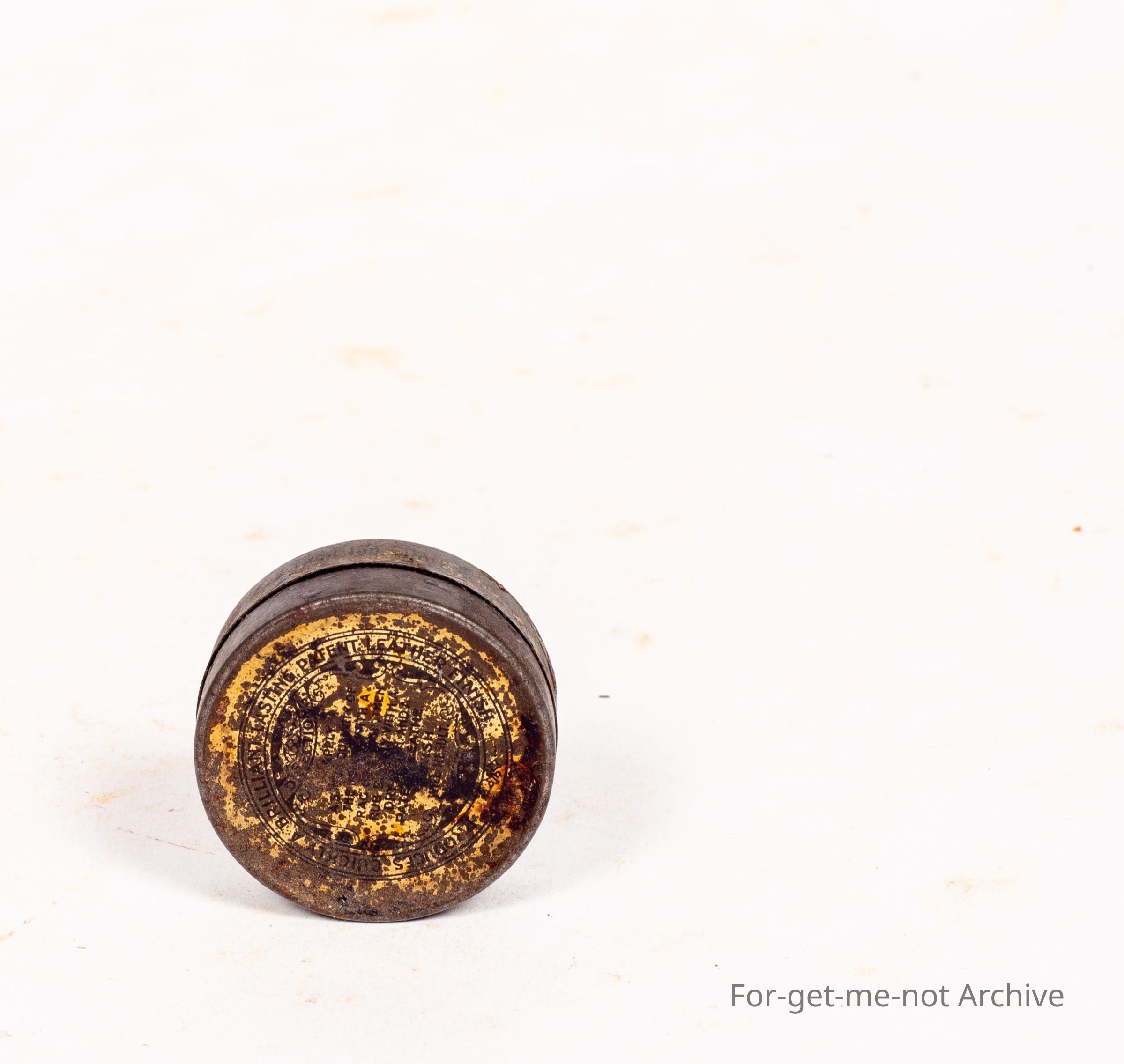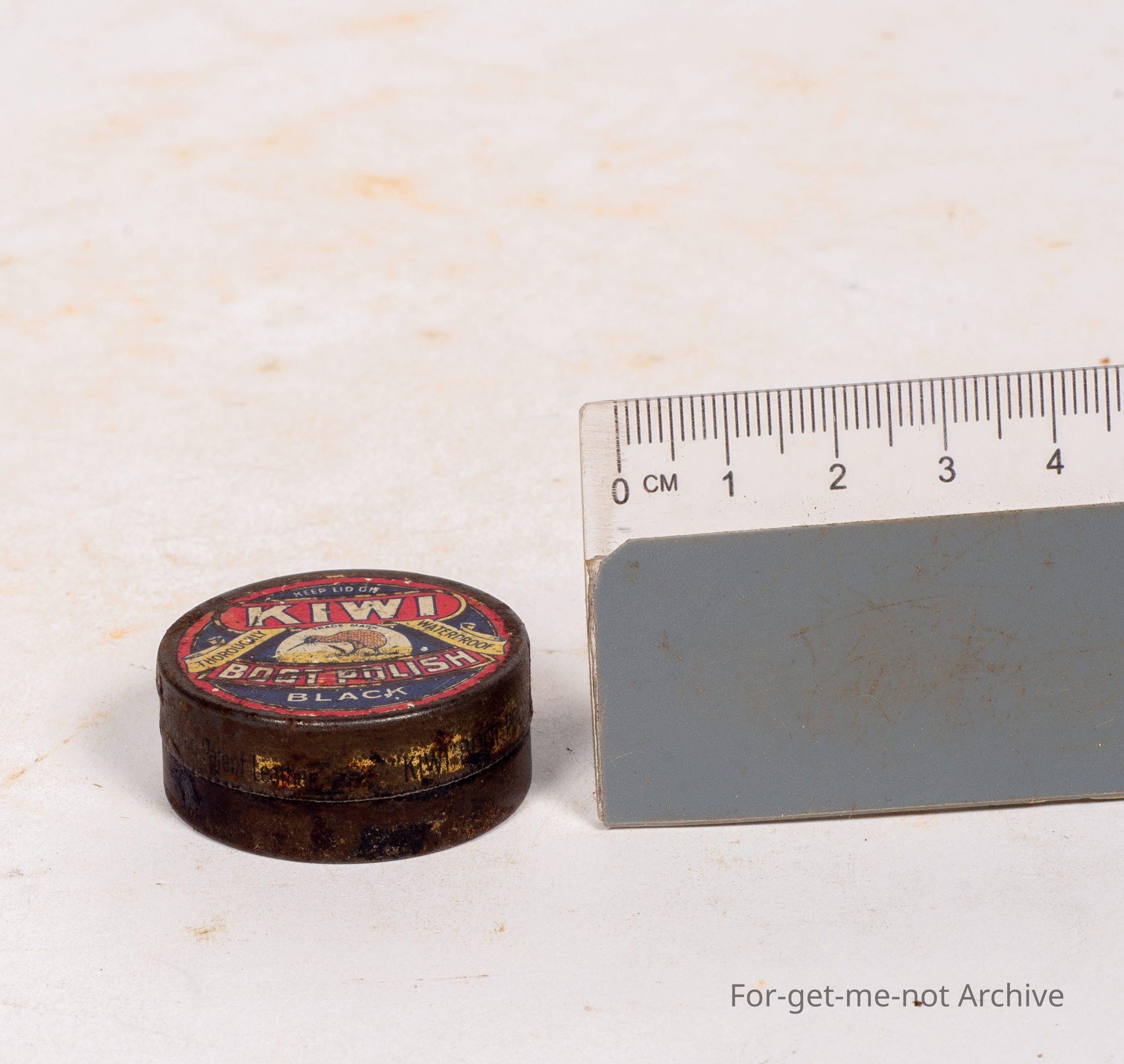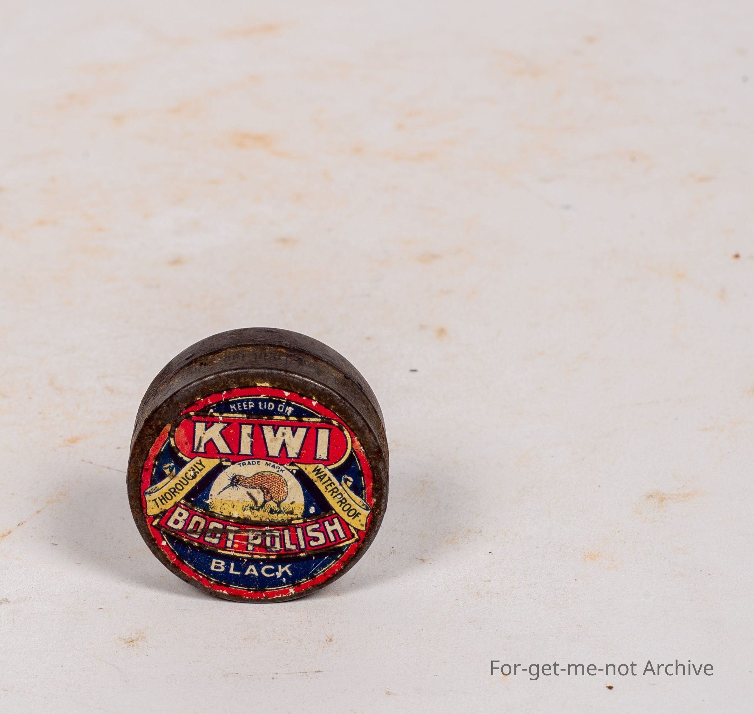 This is the tiny show bag size sample tin from Kiwi boot polish, black with the image of a Kiwi. This tin is , a prize possession for, sample collectors. This one in pretty good order. Most of them, very down.Collection