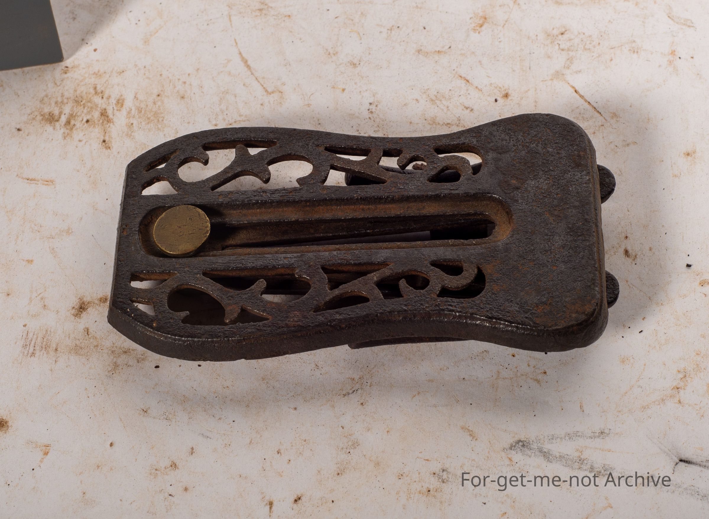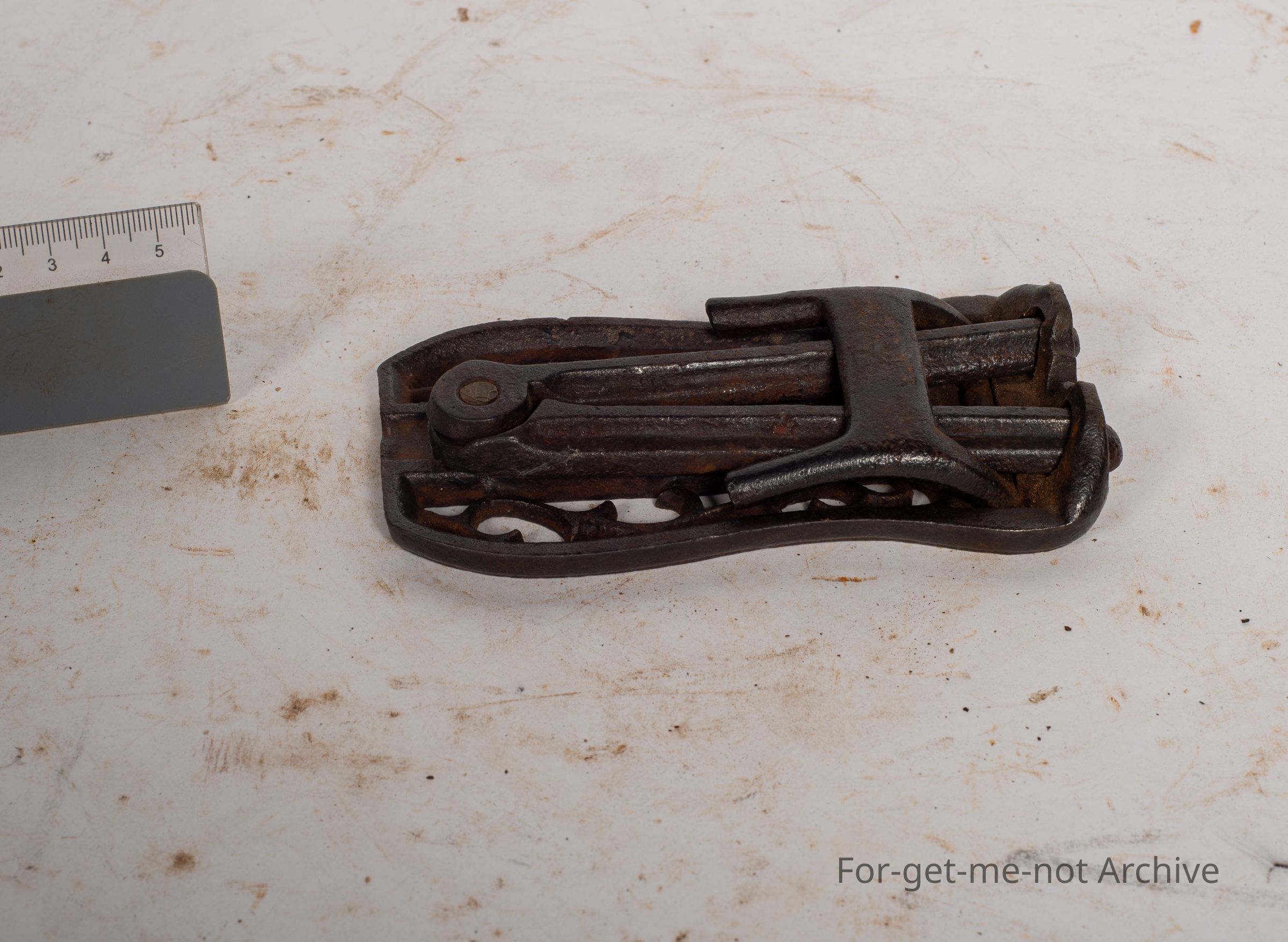 This is a portable boot remover. It has a marvellous mechanism that folds up into a small flat section, all complete. When it's in use, it has 2 little legs with a v for putting your shoe in to pull it off.Collection