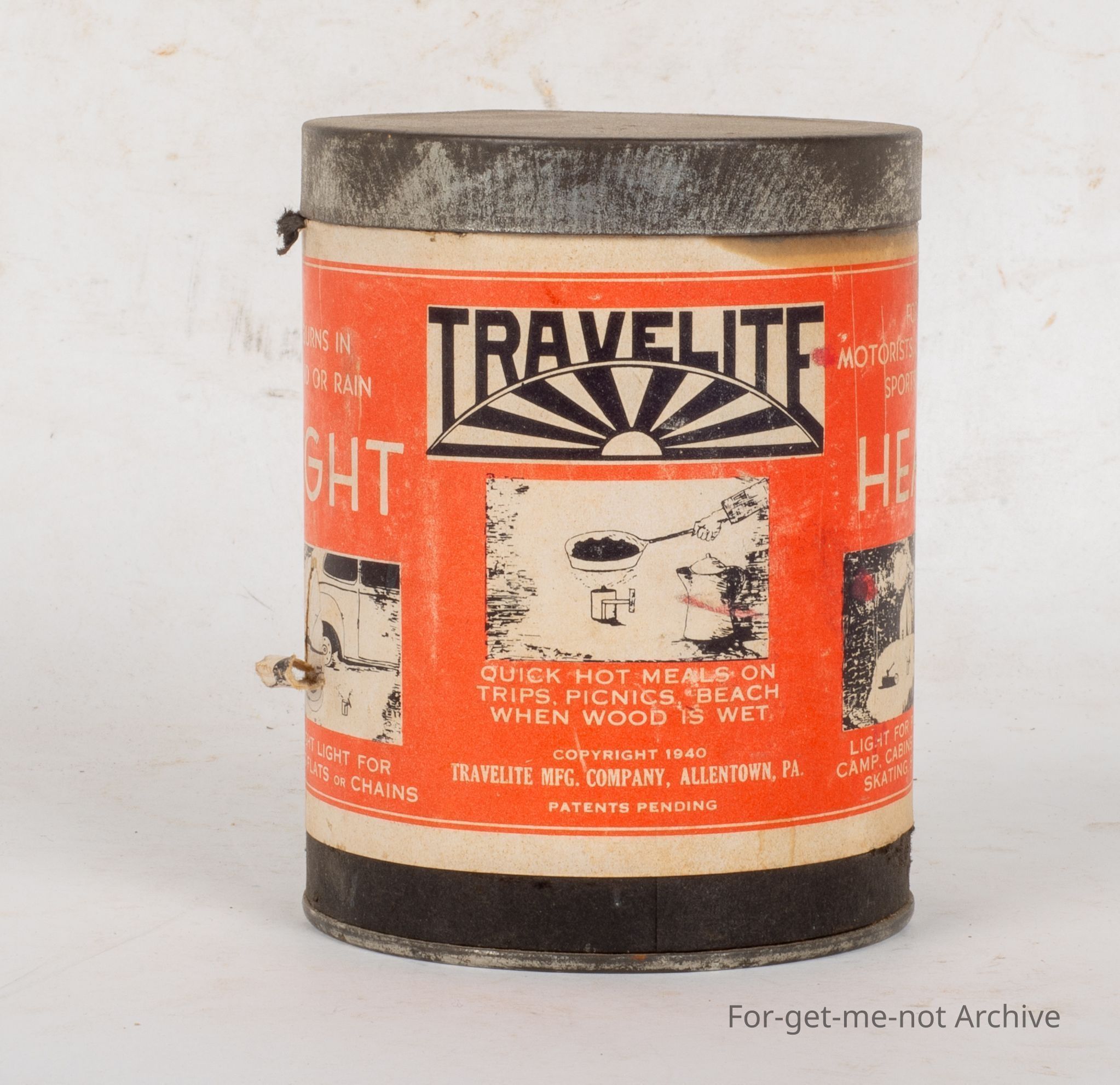This is an unused can of fuel source for portable stoves / heaters could also be used as a portable lamp due to the burning flame