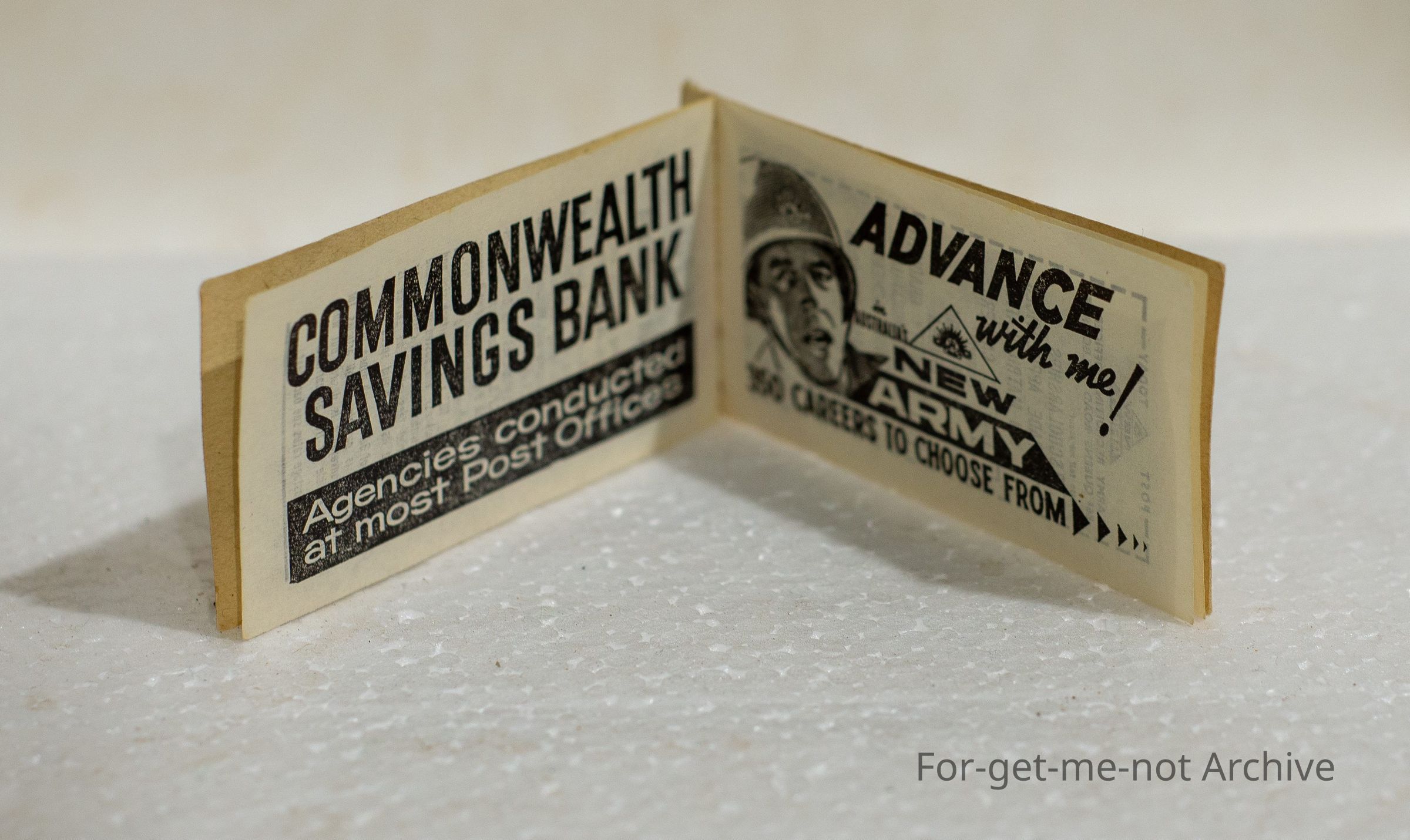 A PMG issued wallet with stamps and also advertising in pages between stamps. All stamps have been used
