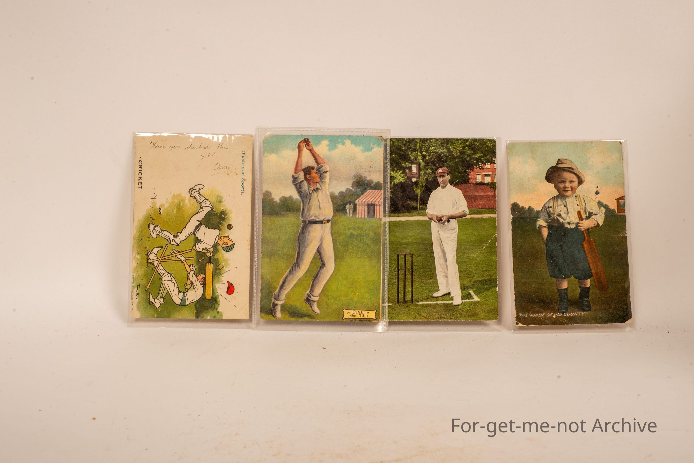 Postcards of cricketers, 4 in the group, all these are comical images of cricket players in colour.