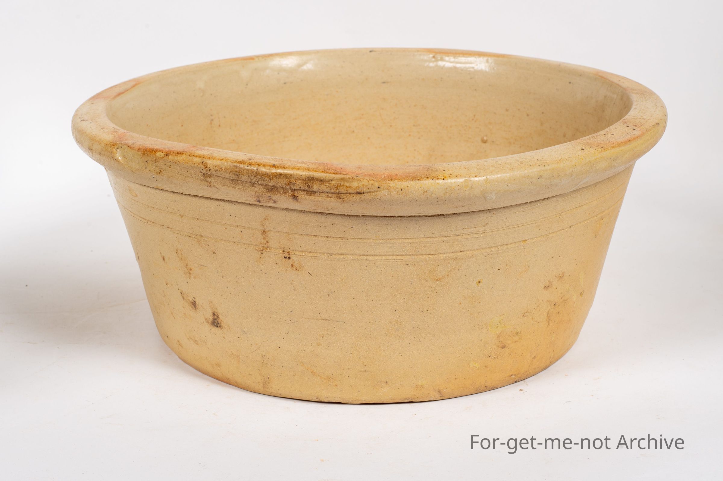 Early stoneware. This one is another milk pot, open wide open lid. This one is This is in quite good order. Faint crack on one side. No stamping, but attributed to Bendigo Pottery.