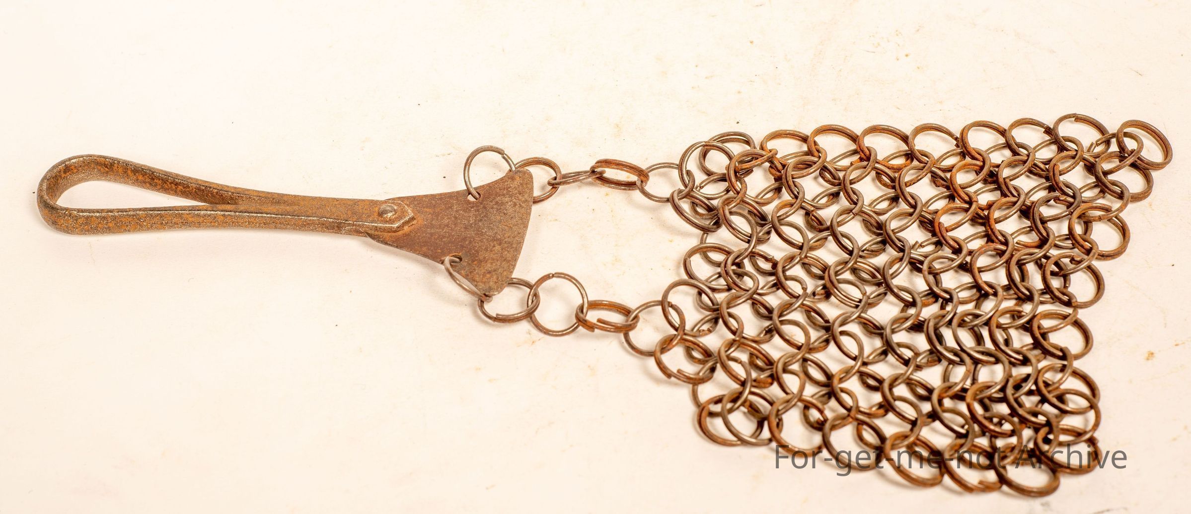Is what's called a ringlet cleaner from the days of cast iron boilers and pots. This has a burnt food scraper when folded back, used over the piece to scrub the, cast iron surfaces to clean. An old era kitchen piece.Collection