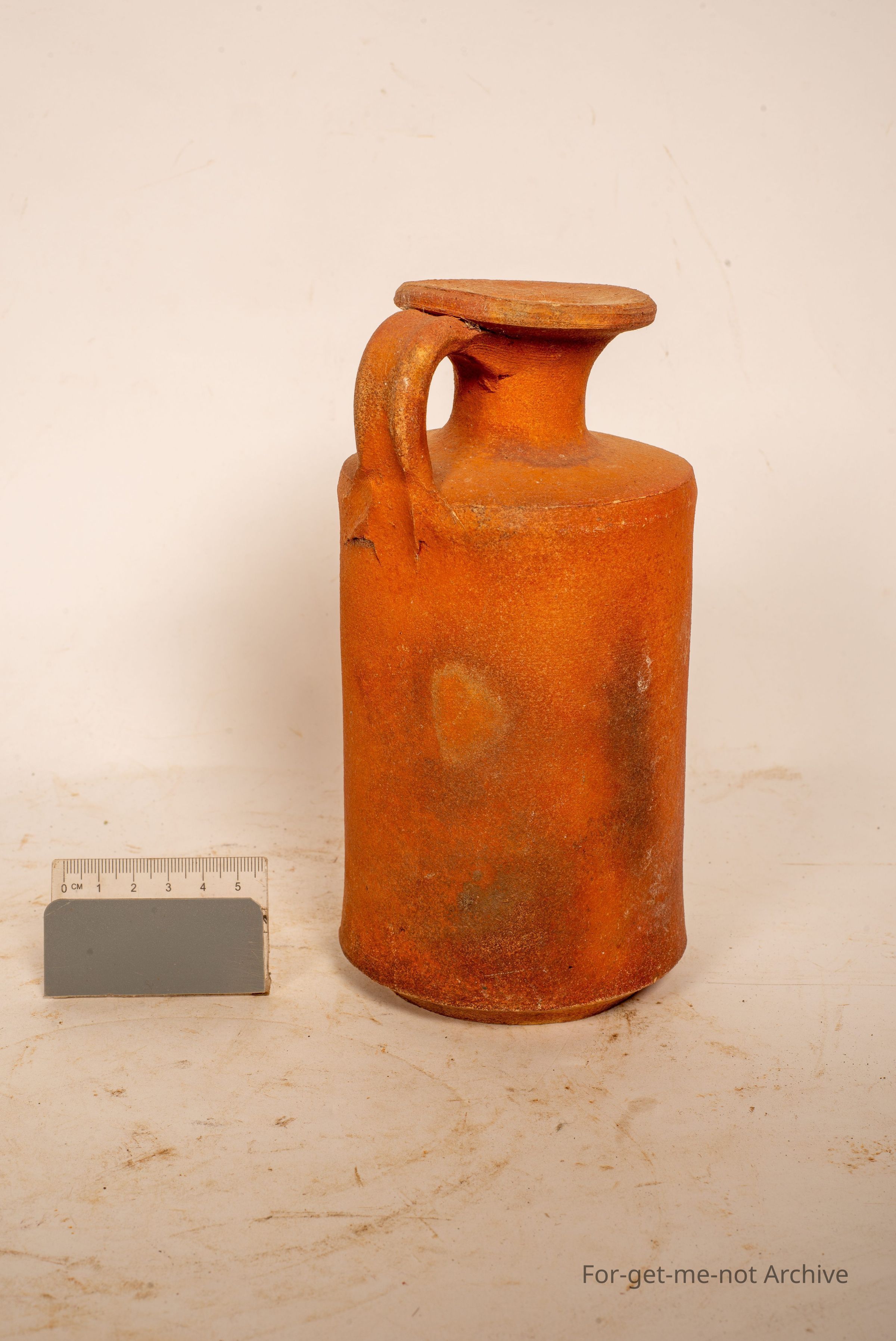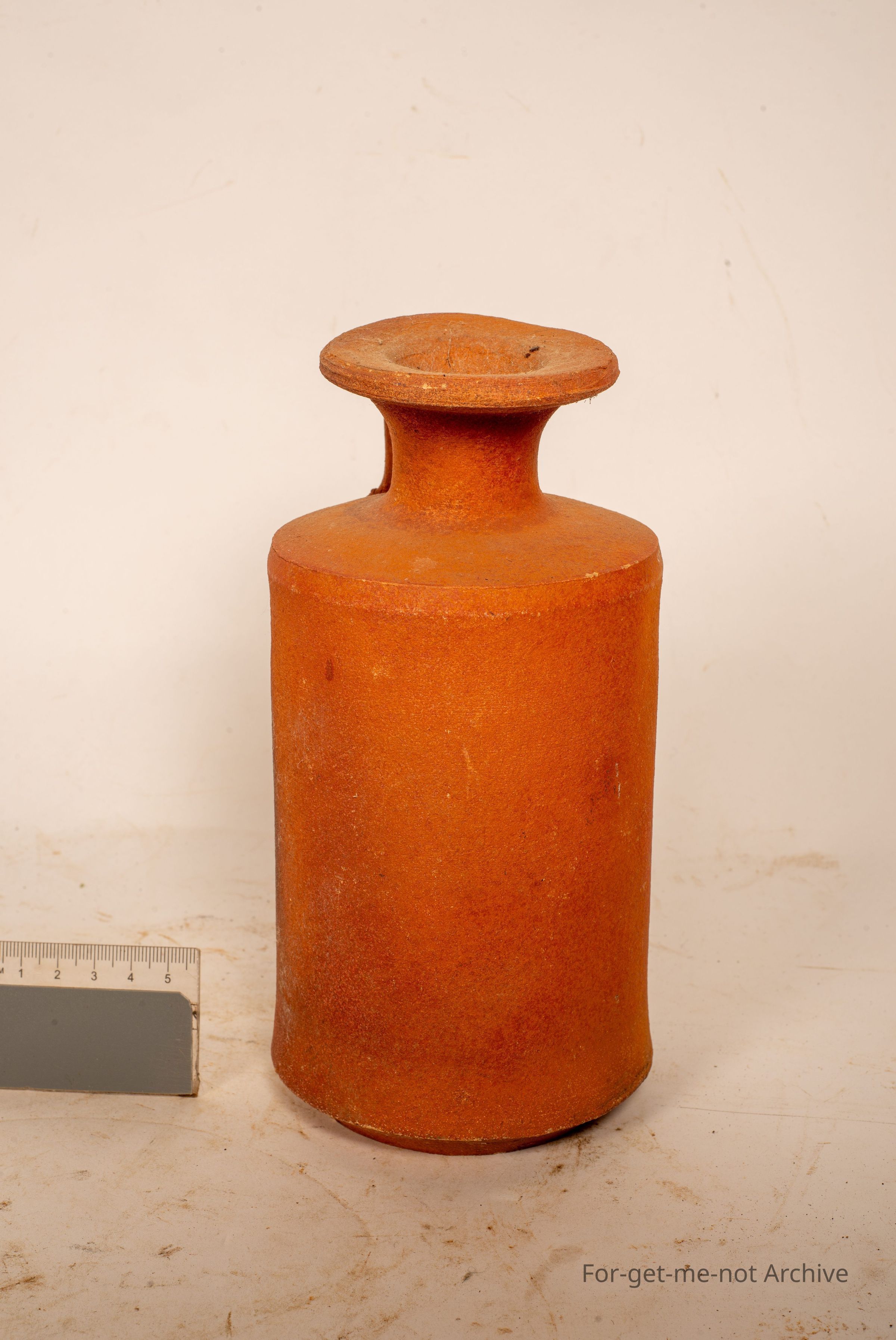 This is a jar, handled jar with a very broad neck. Definitely terracotta. No identification or stamp. Has all the appearance of being aged. Definitely terracotta but, they're valued.