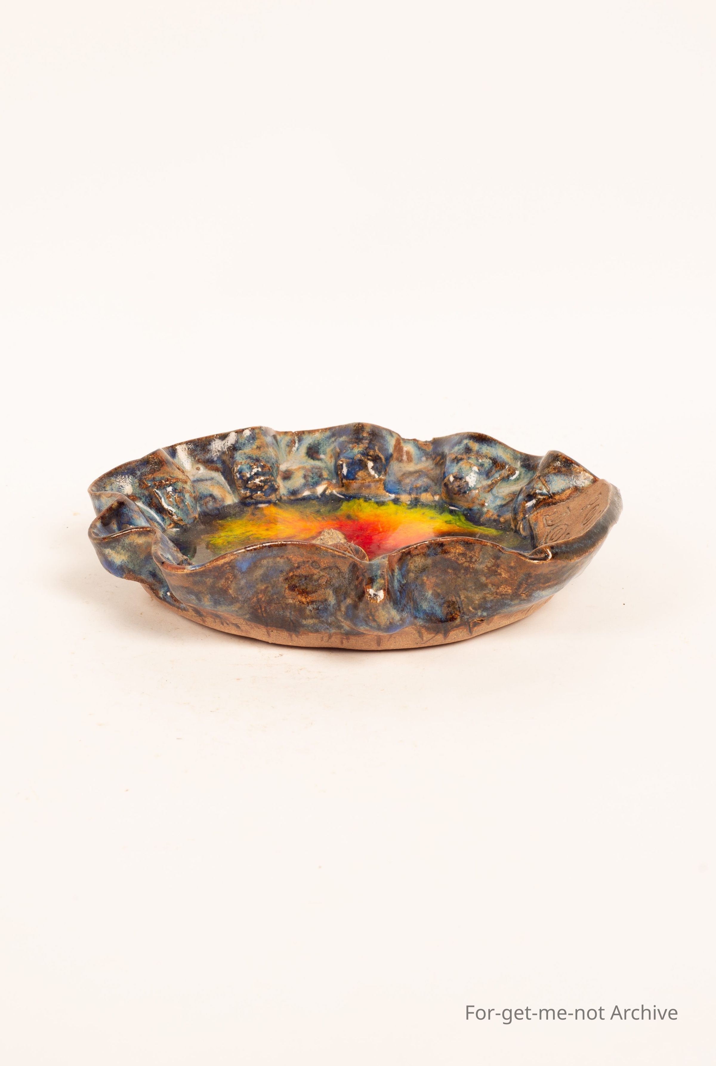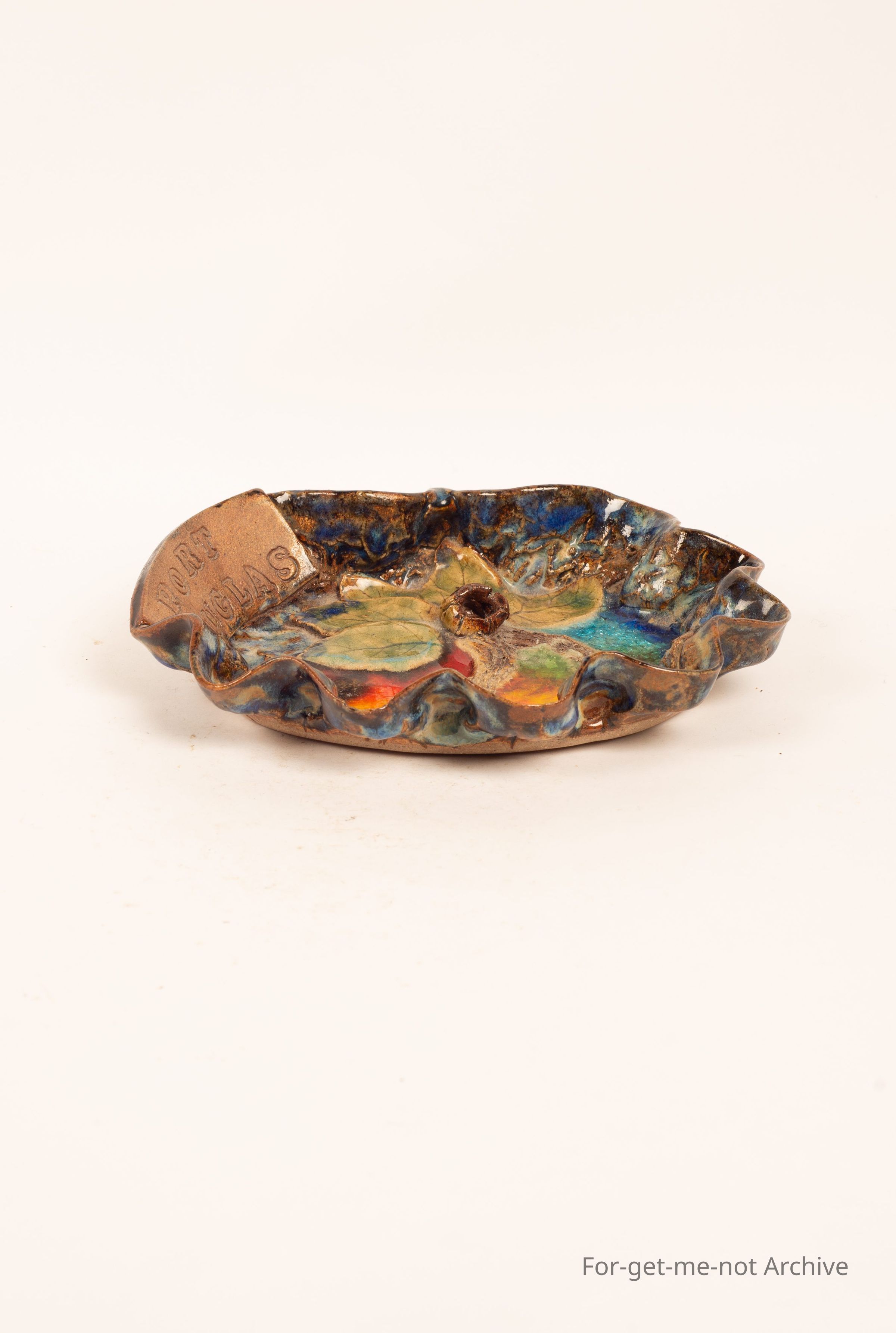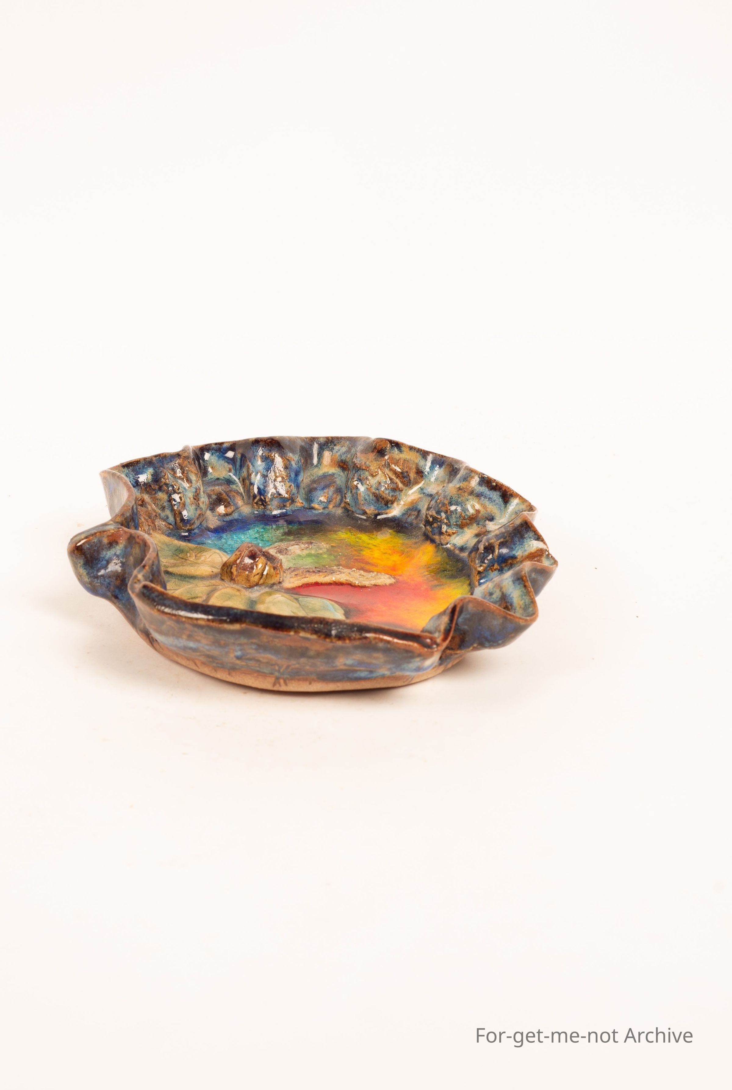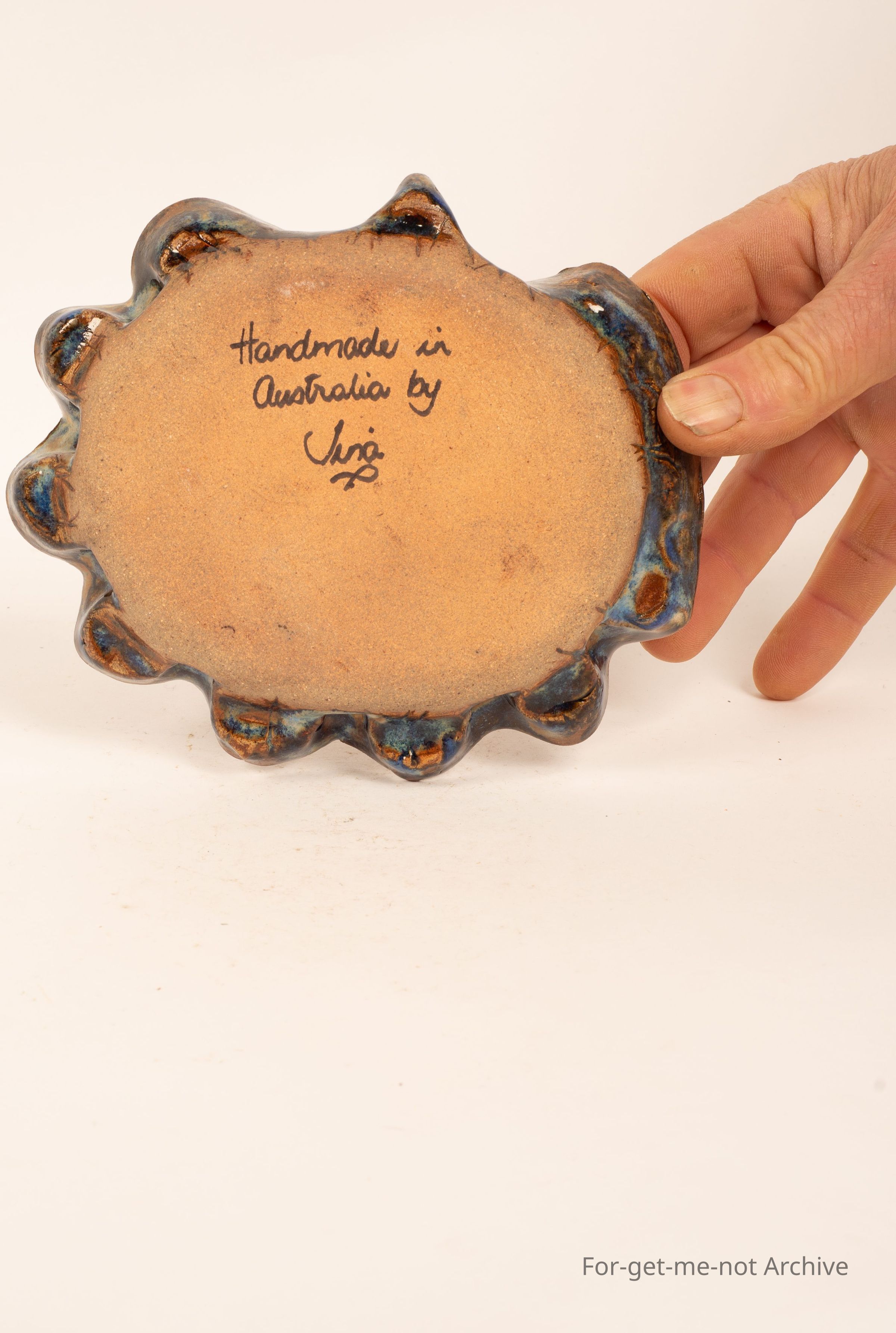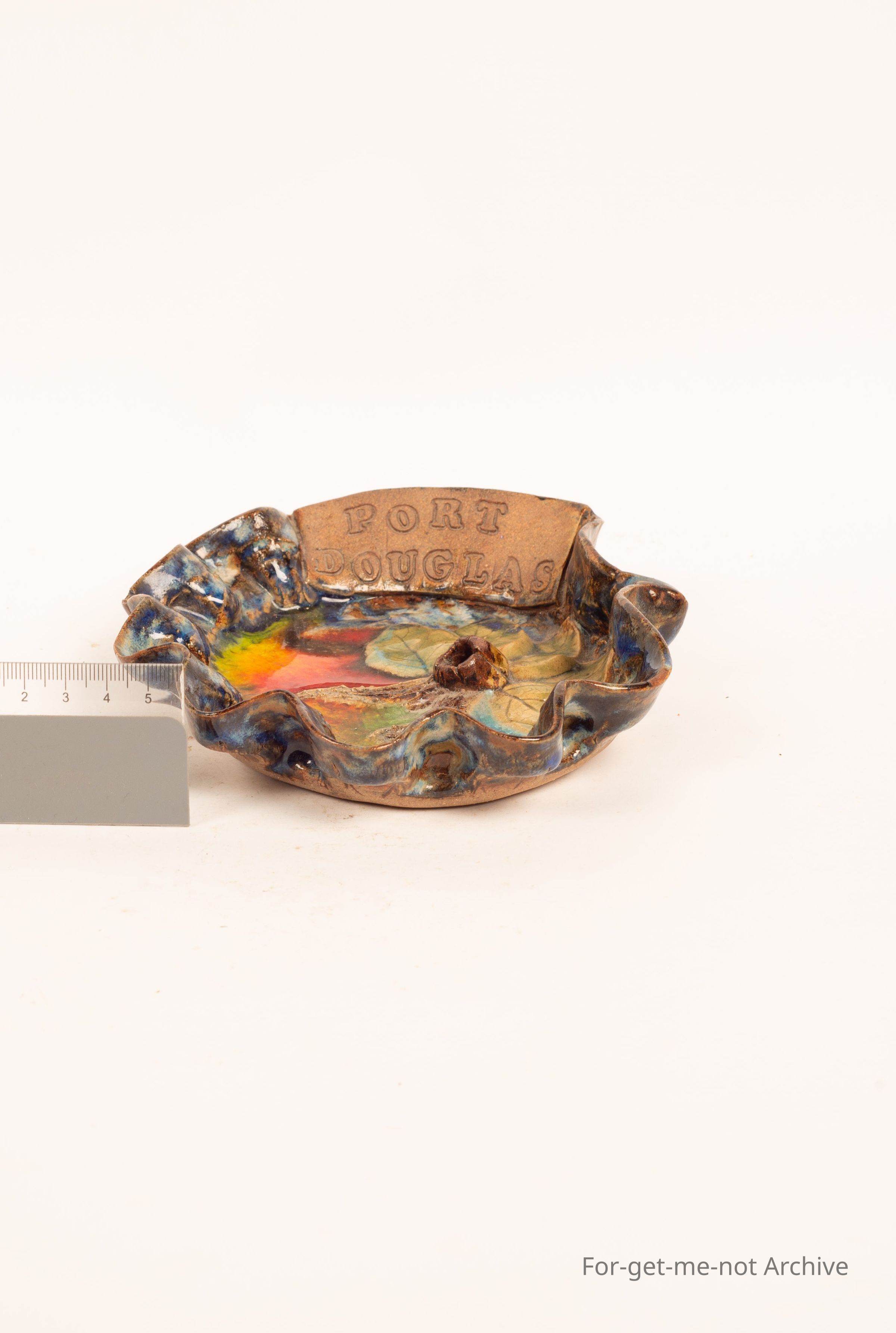 Studio Pottery piece made for Port Douglas, tourism. decorative, very colourful glaze, well made piece Sand on base, handmade in Australia by Jina.