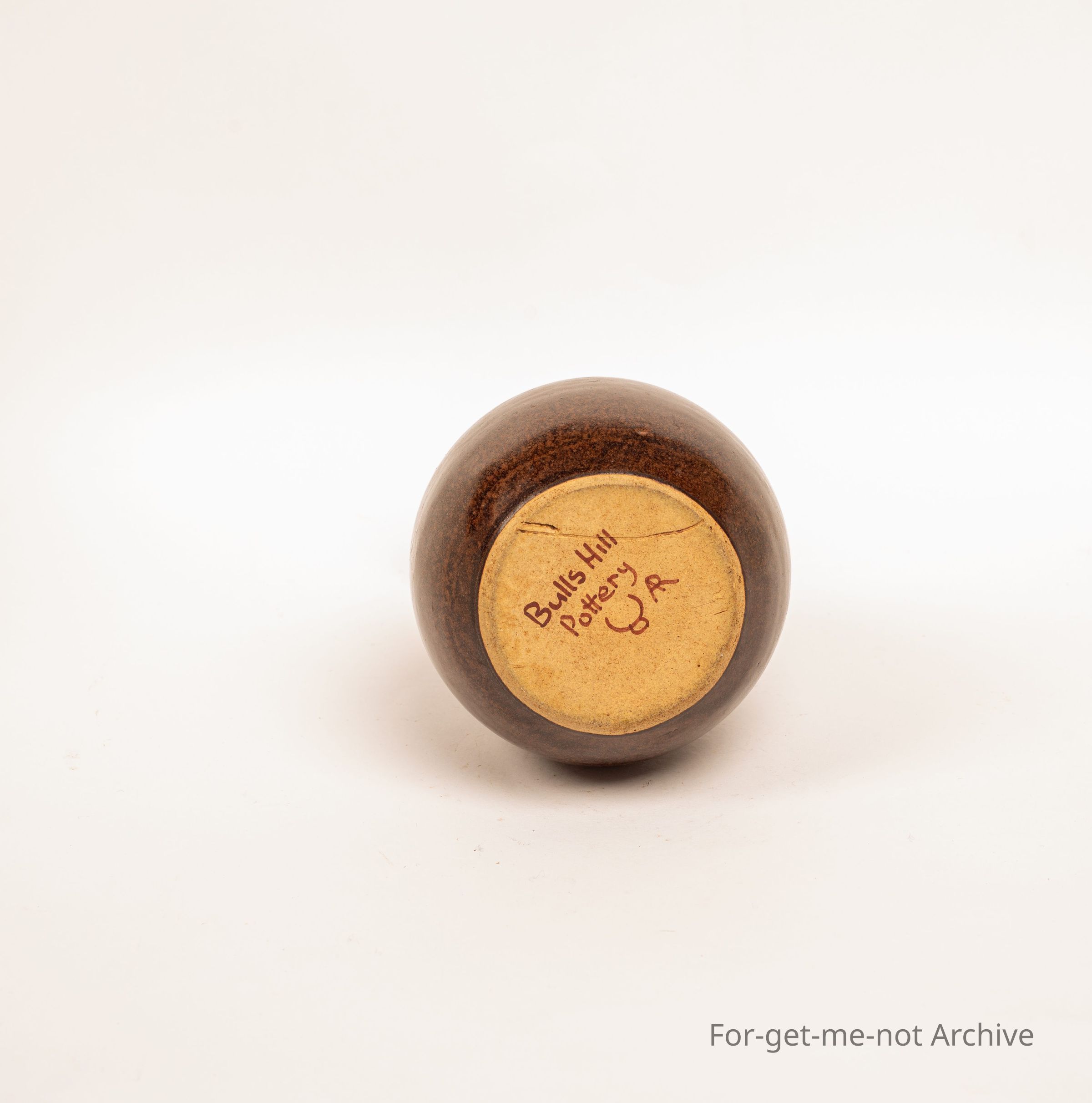 Classical bit of 1970's pottery, ink stamp on the base . Bulls Hill Pottery. Stamped or written in texta?