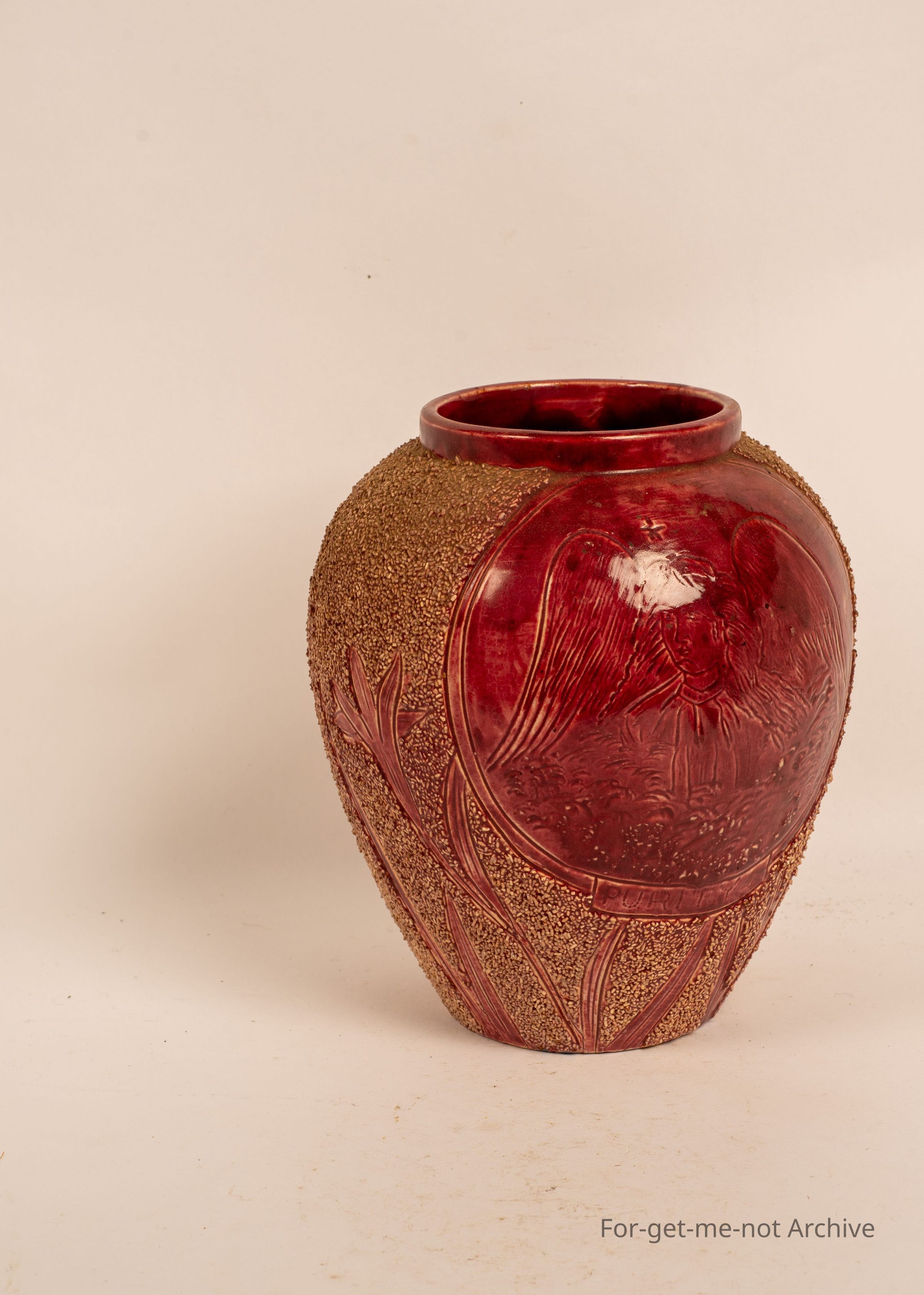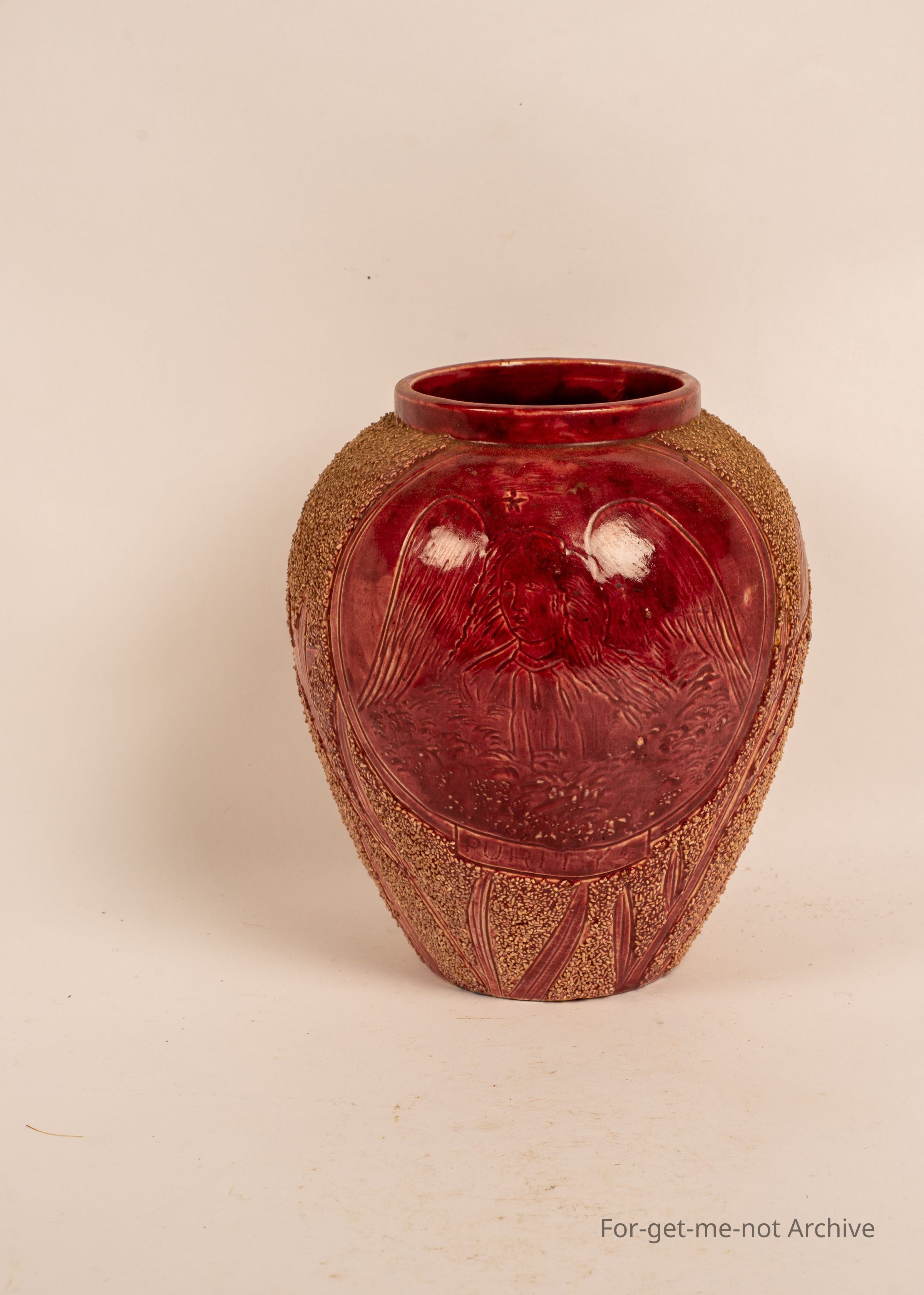 Studio Pottery Piece. A lot of ornate work with image of Angel, worked into one side. No Attributable indication or name.