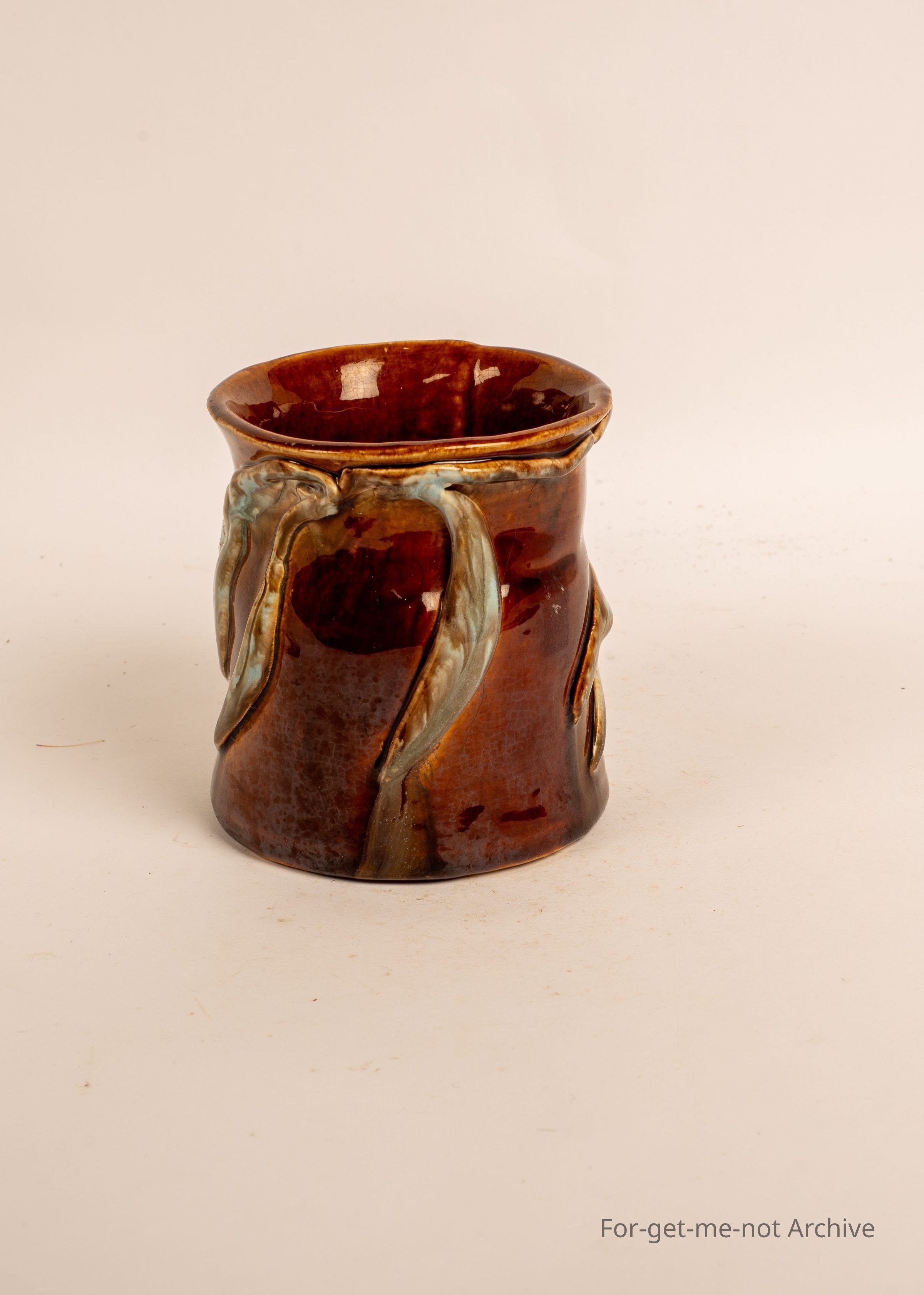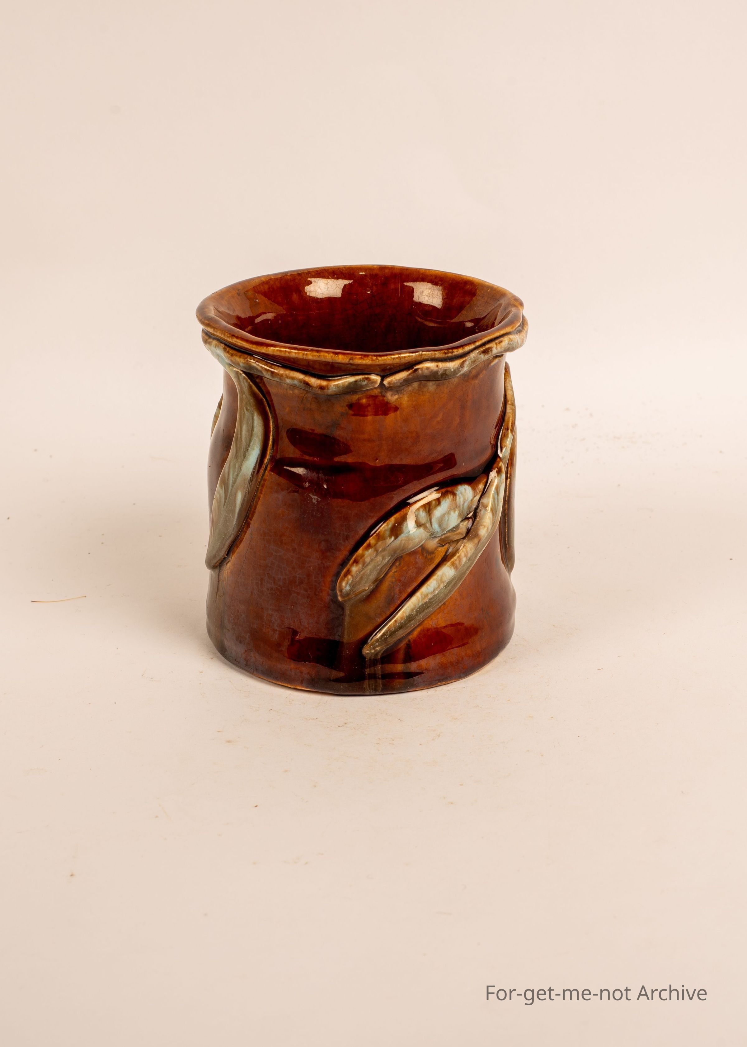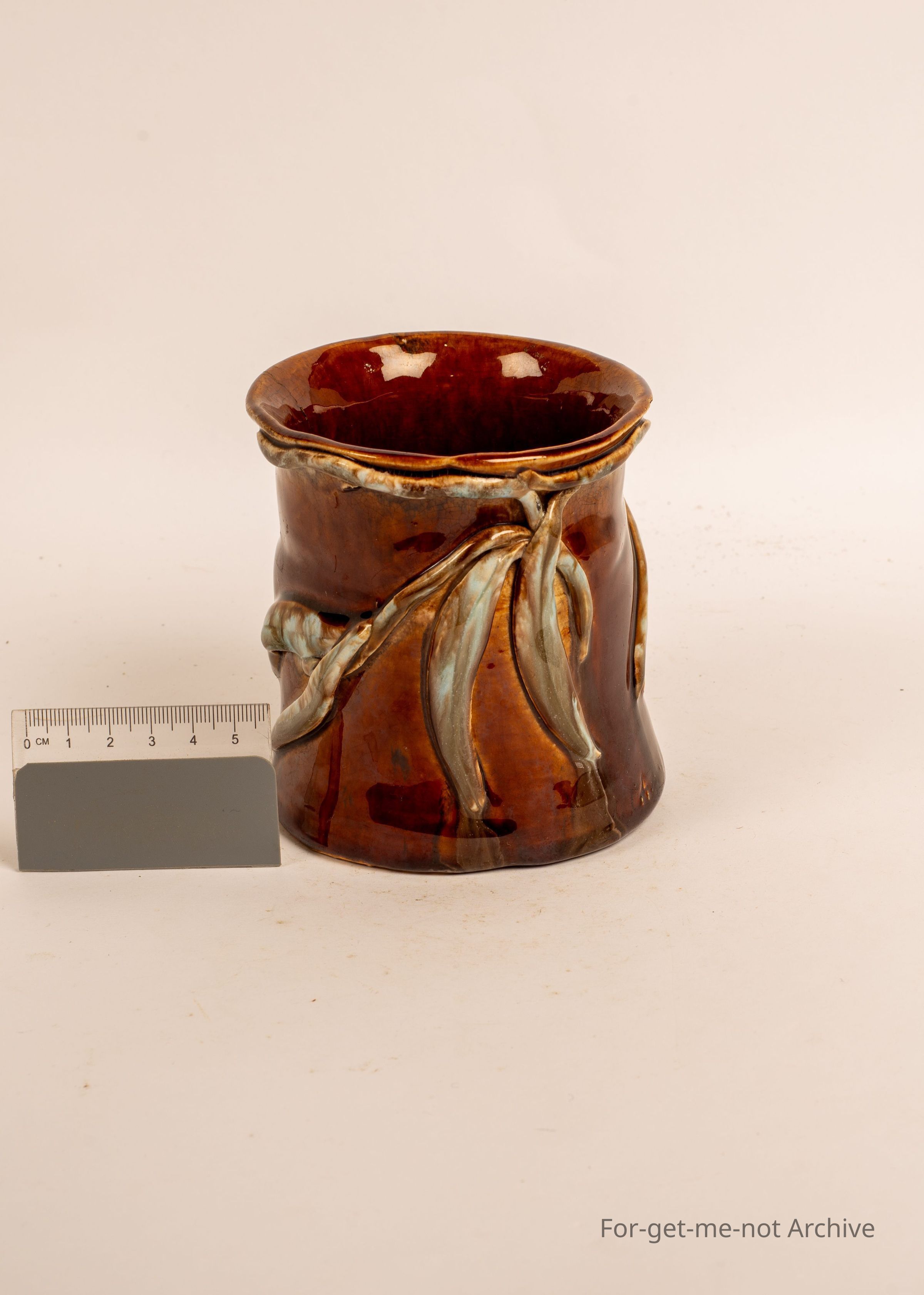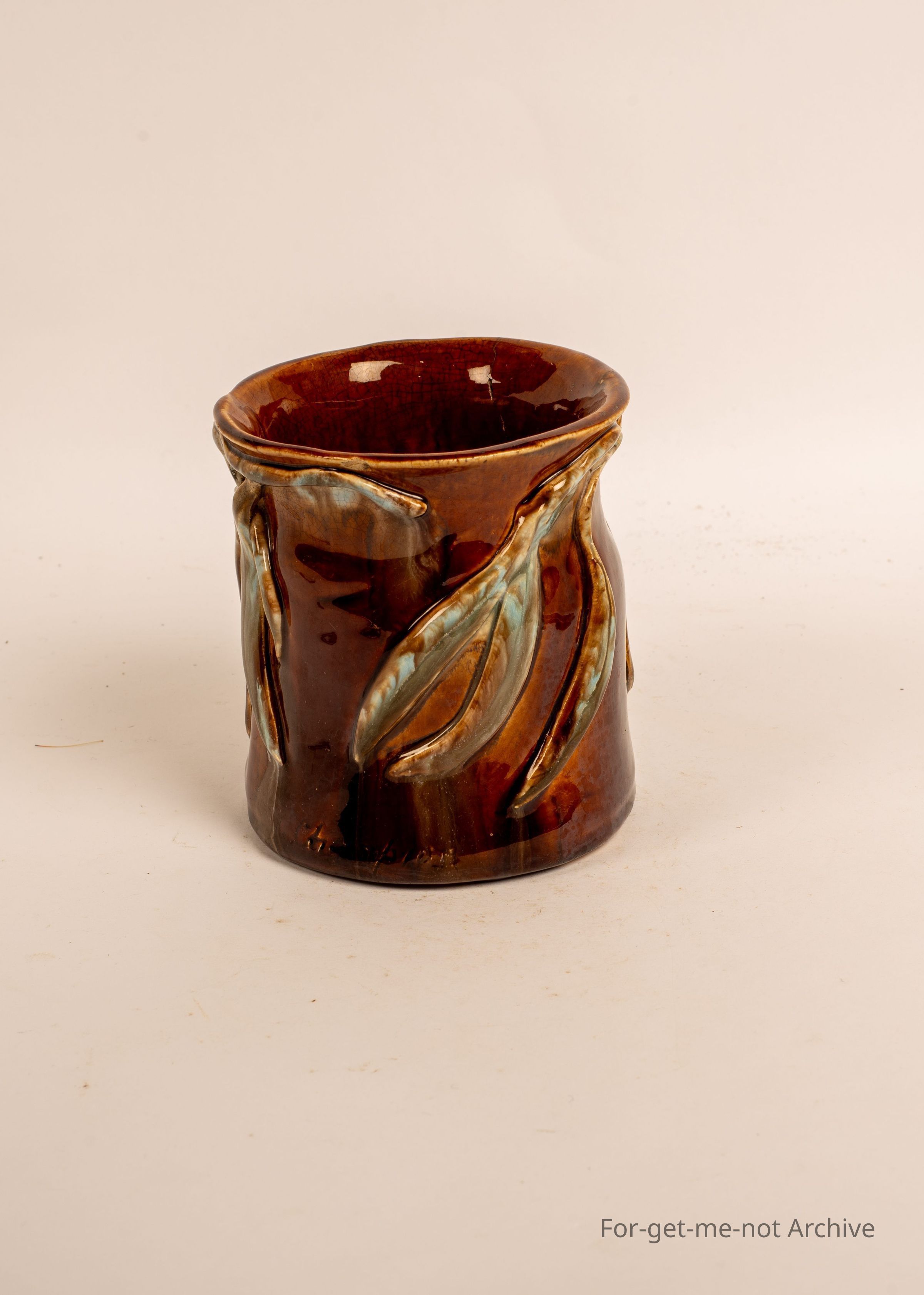 Studio Pottery Piece, added gum leaves, done by Gwendolyn Champion inscribed on base.