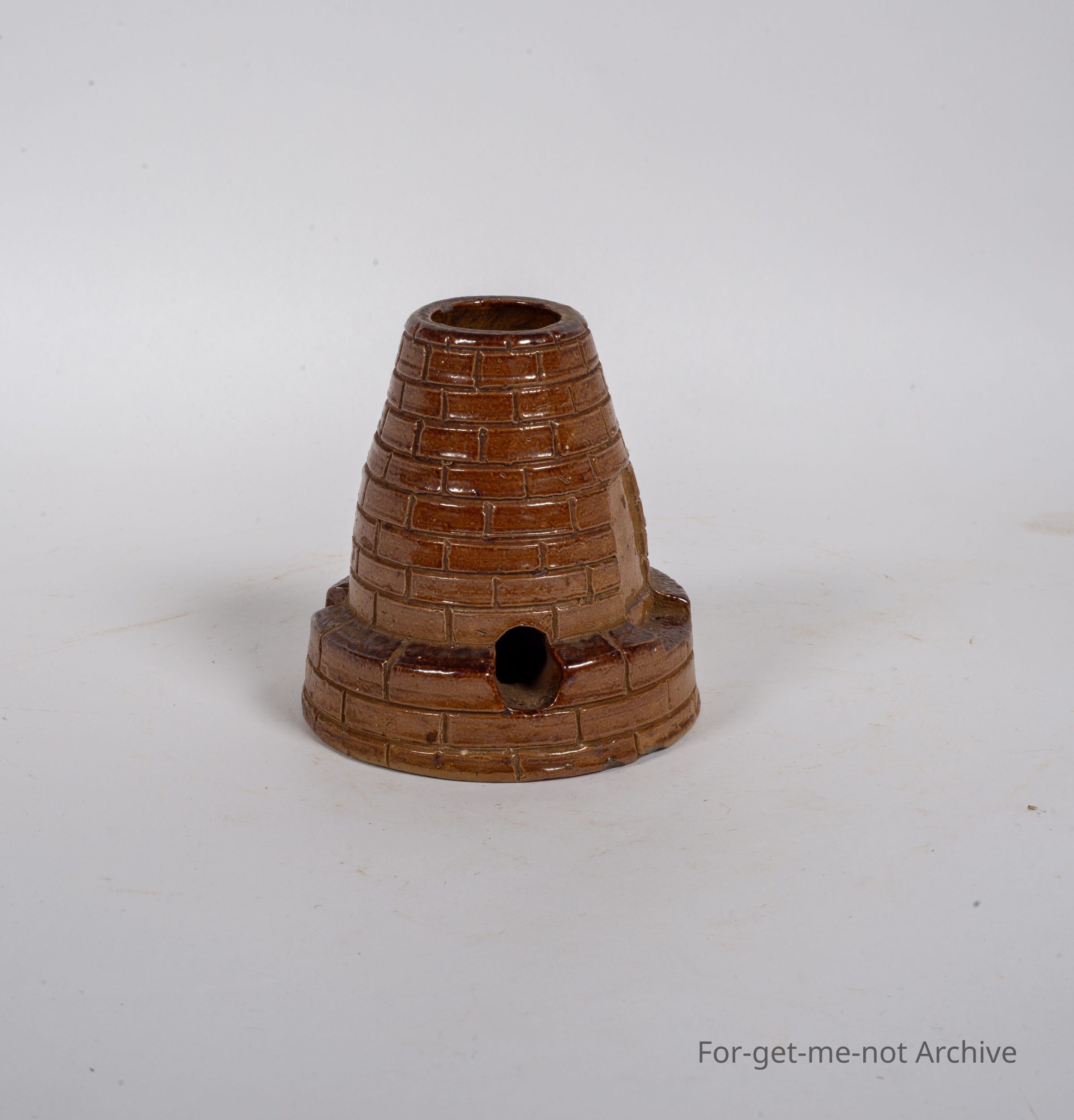 Pottery. This is a piece in the shape of a kiln. these have, markings on the outside like a formation of brick to make the kiln. The holes in the side are for the use as an ashtray, made by Bendigo Pottery in very good condition.Collection