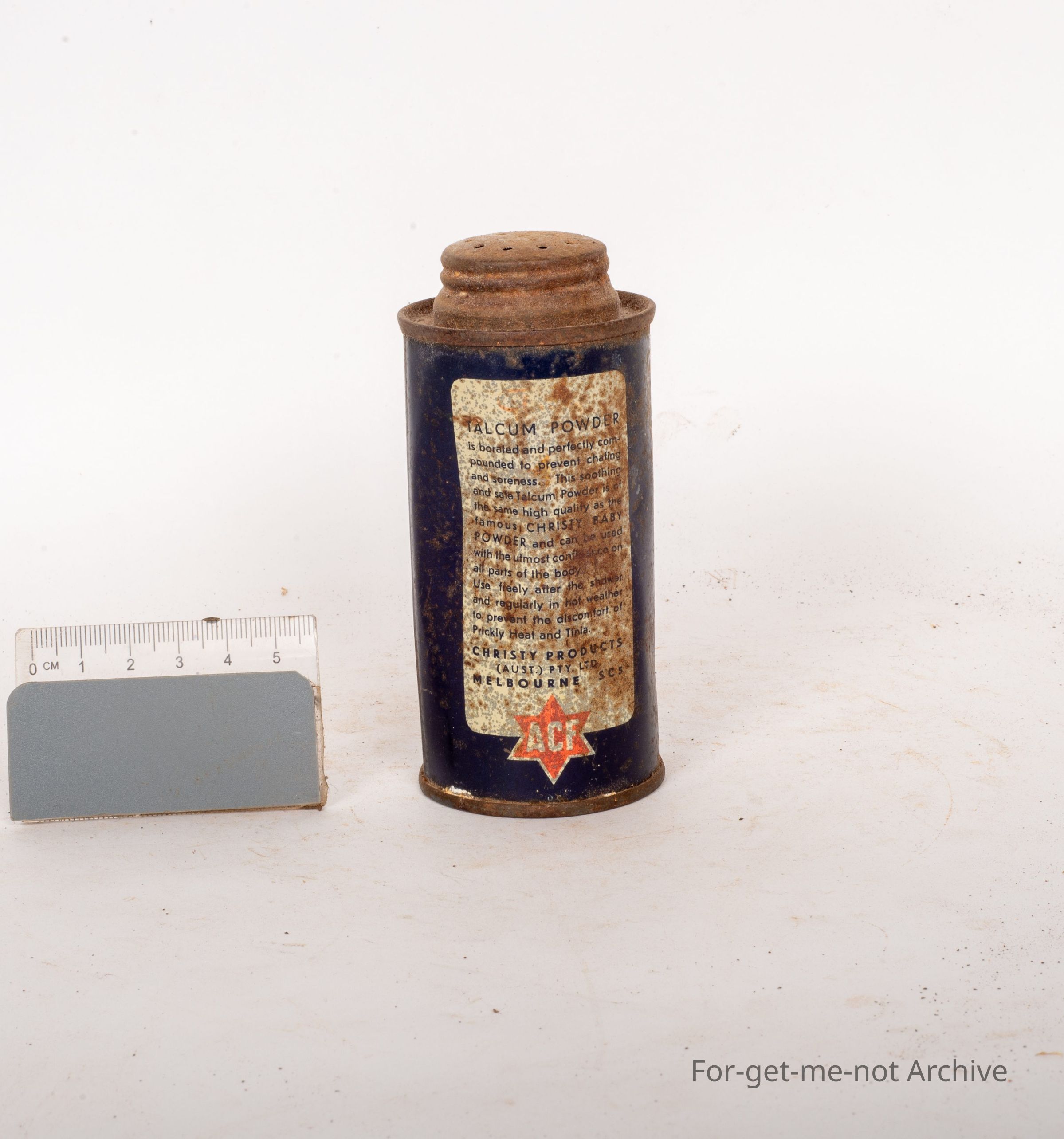 Appears to have powder in it. Talcum powder. The script says a gift from ACF, which is Australian Comforts Fund. For soldiers