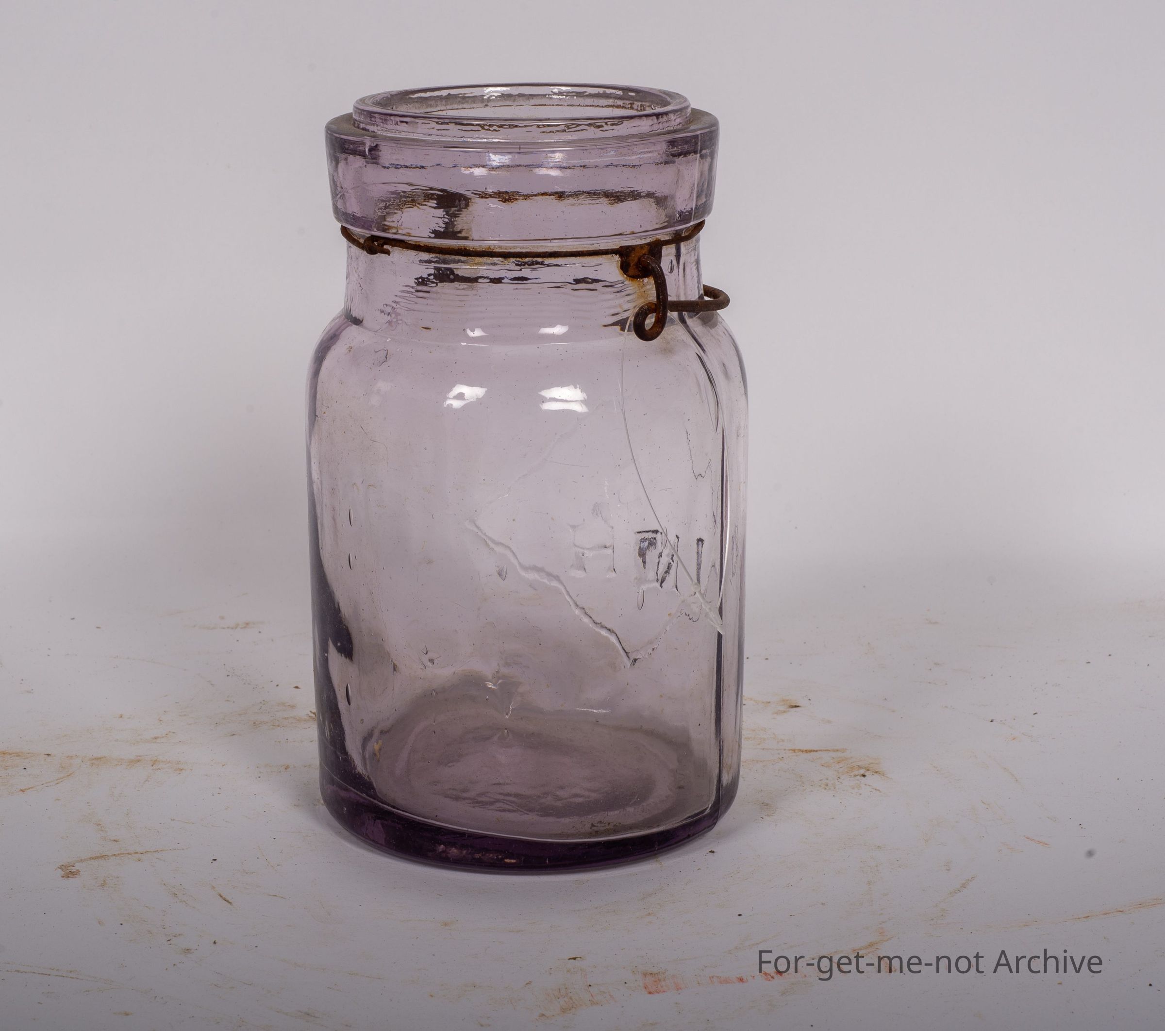 Glass jar, Preserving jar. Or category 1st, glass preserving jar. . This has the bale but no lid. It has, an embossed S N H in a diamond. Not sure where that origin is.