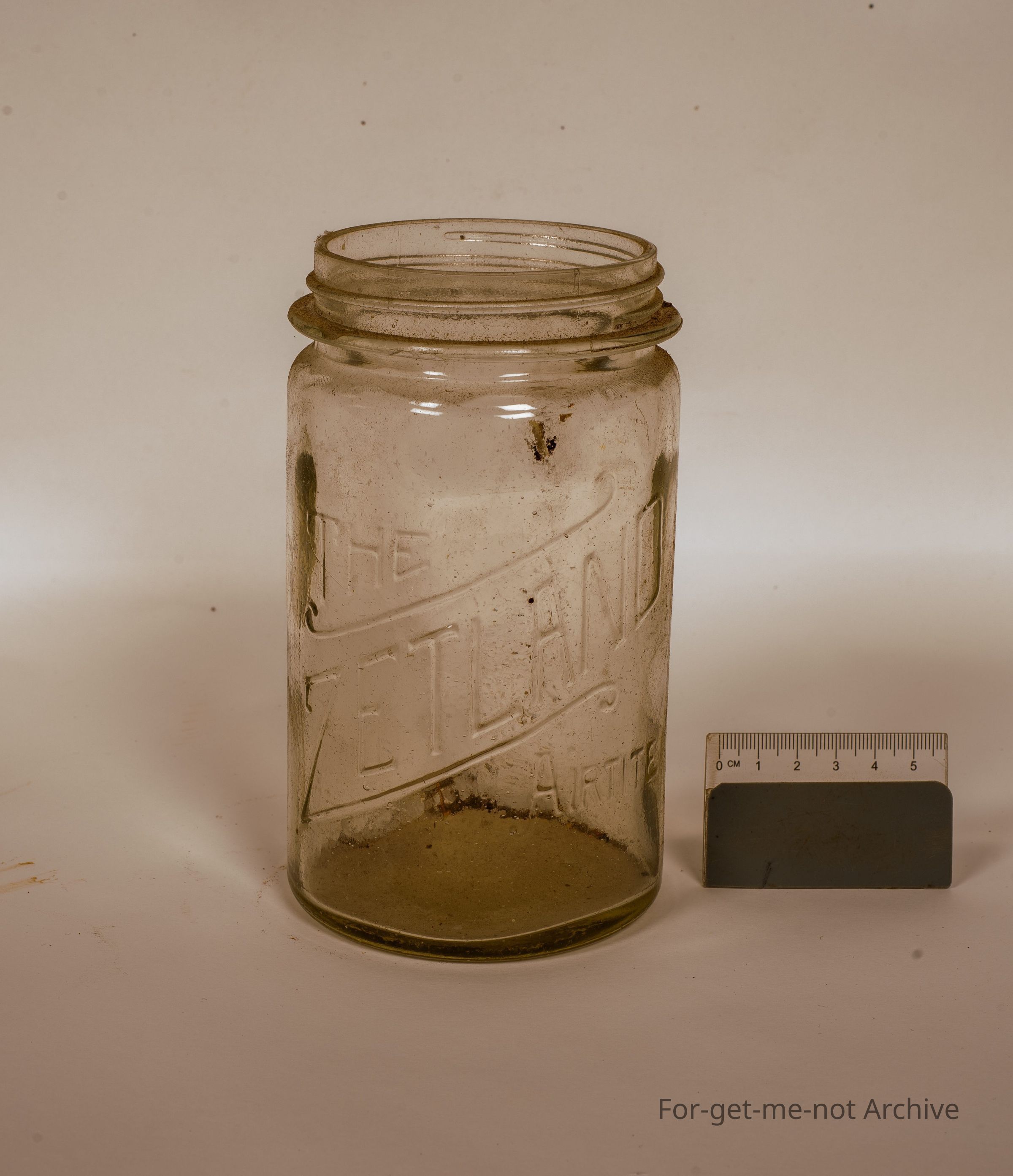 Glass preserving jar. This is the medium size called the Zetland Airtight. This has had a spray lid, but no it's absent.