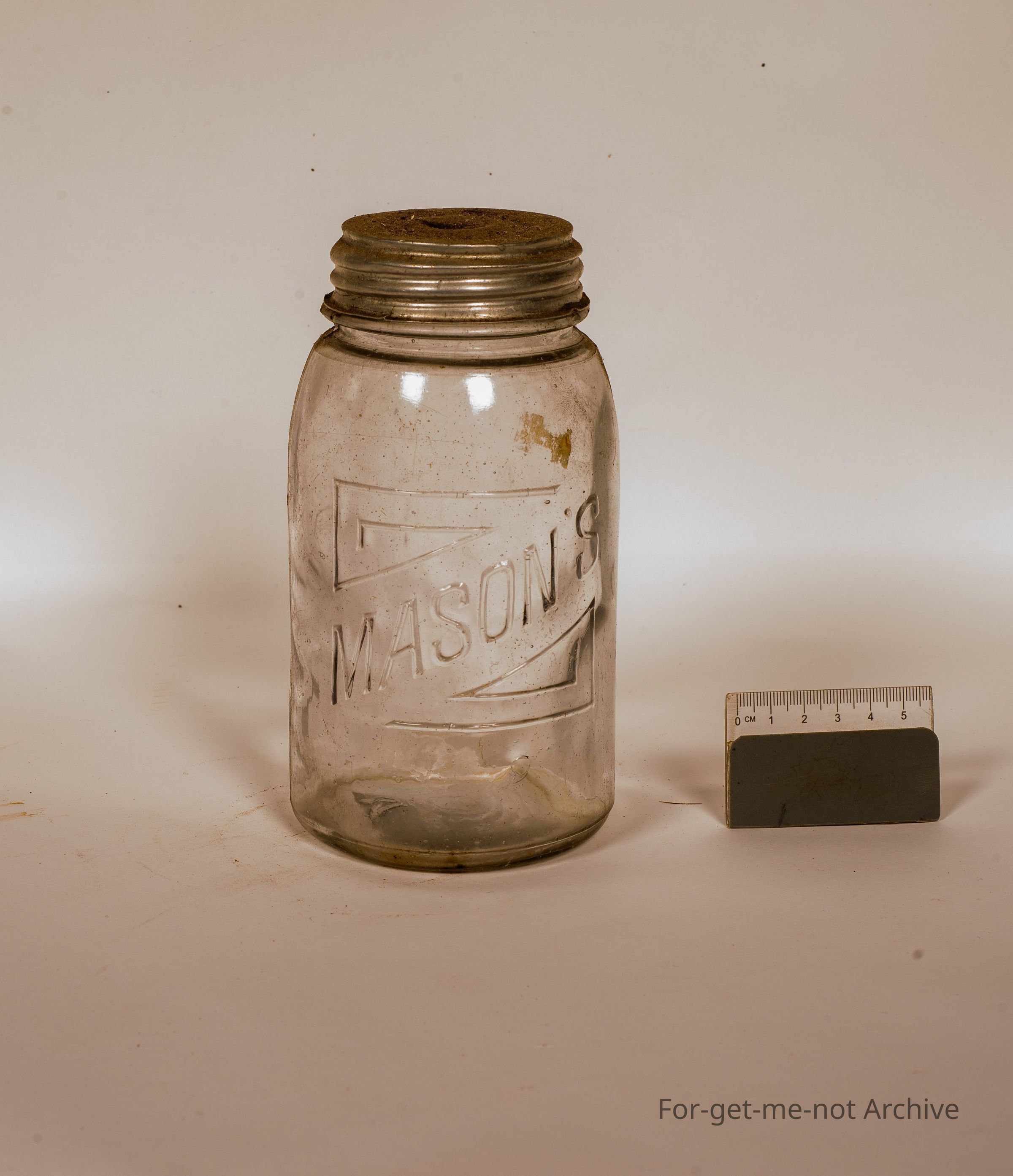 Glass Preserving jar. this is a masons in a square, Original lid, medium size