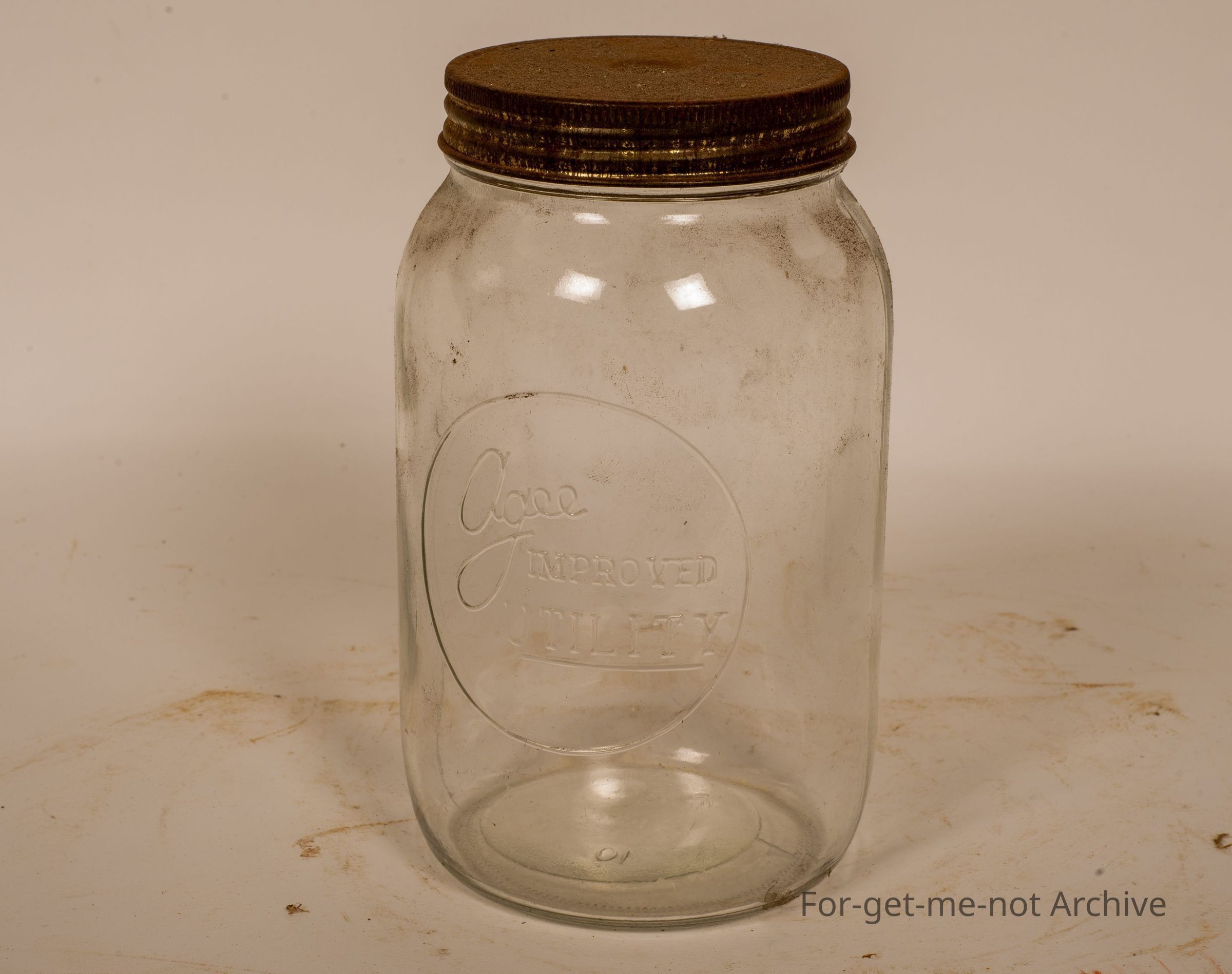 Glass Jar This is a utility jar from AG called the Improved Utility Preserving Jar, with its original lid.