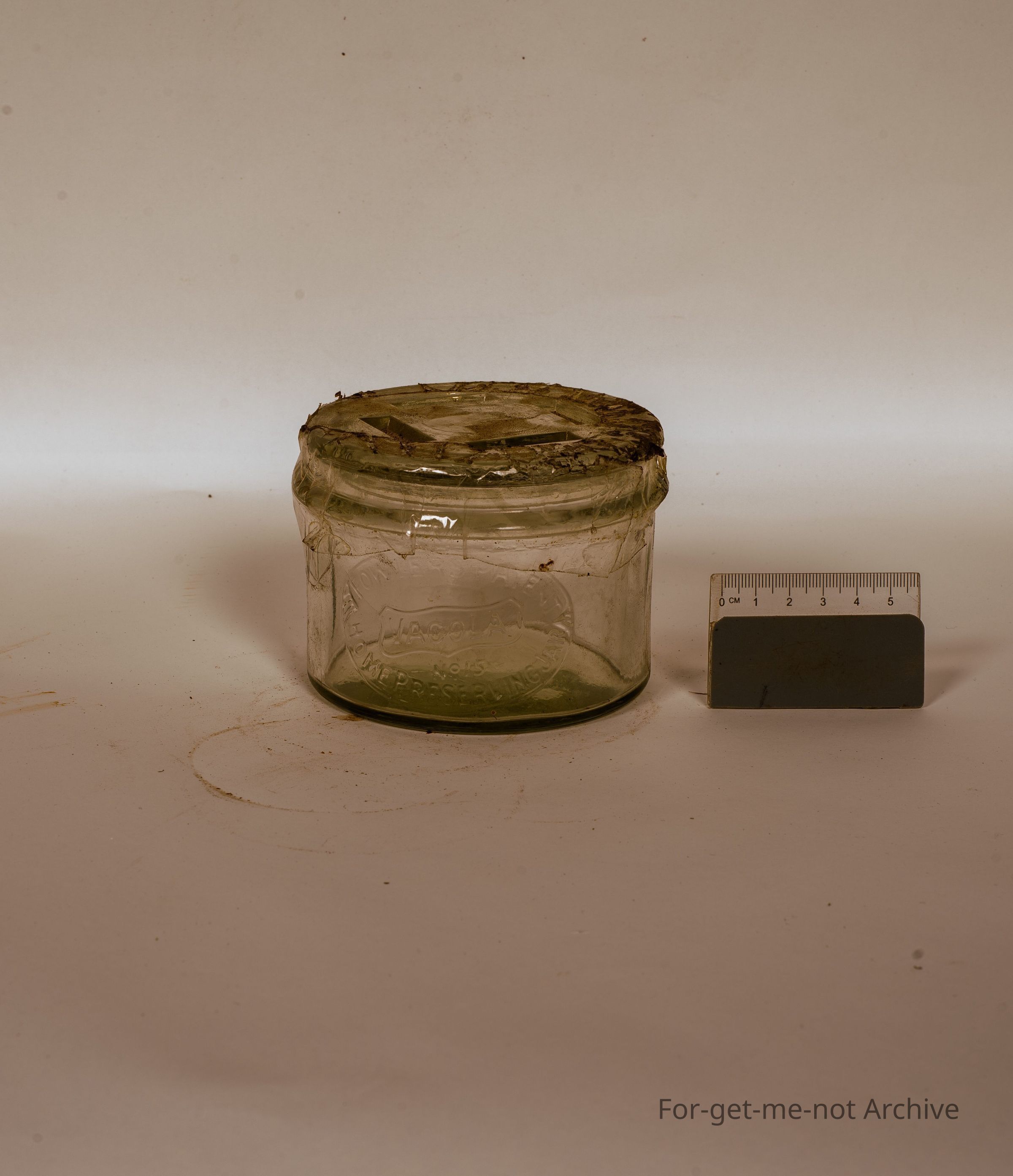 Glass preserving jar. This one, a very squat, smaller size one, titled Vacola. Home preserving jar number 15 with original lid,