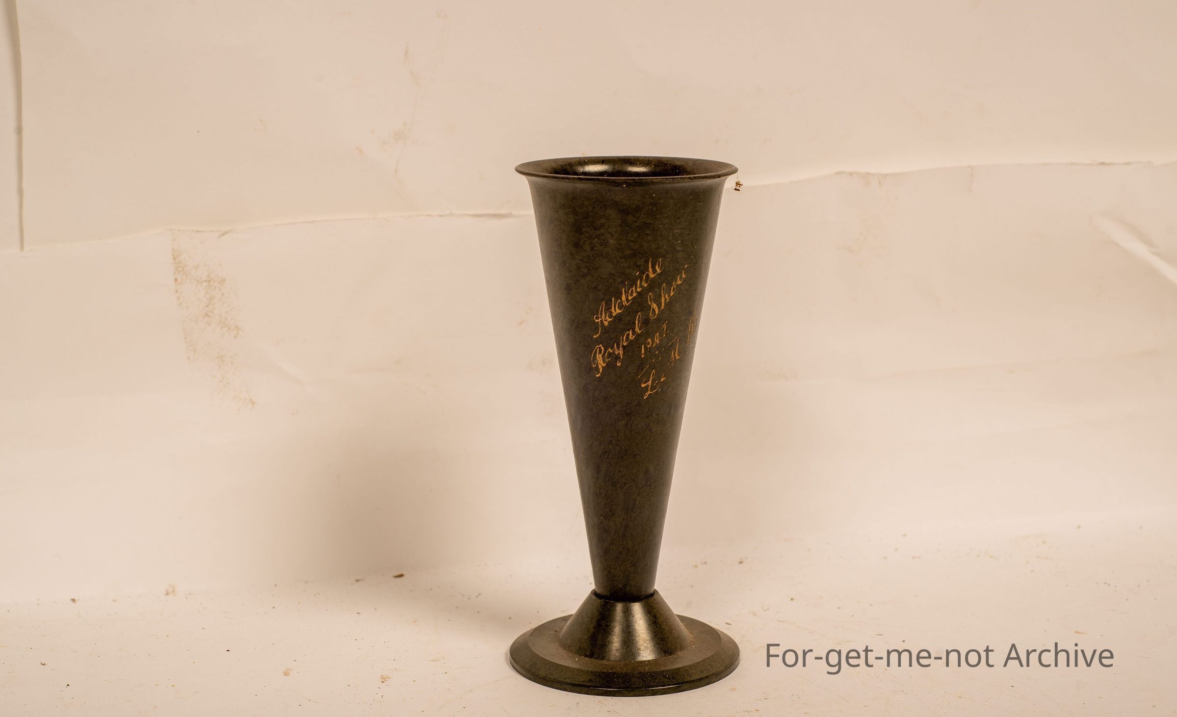 Given as a prize in 1947 at the Royal Show Adelaide to initial of LMH. No makers name
