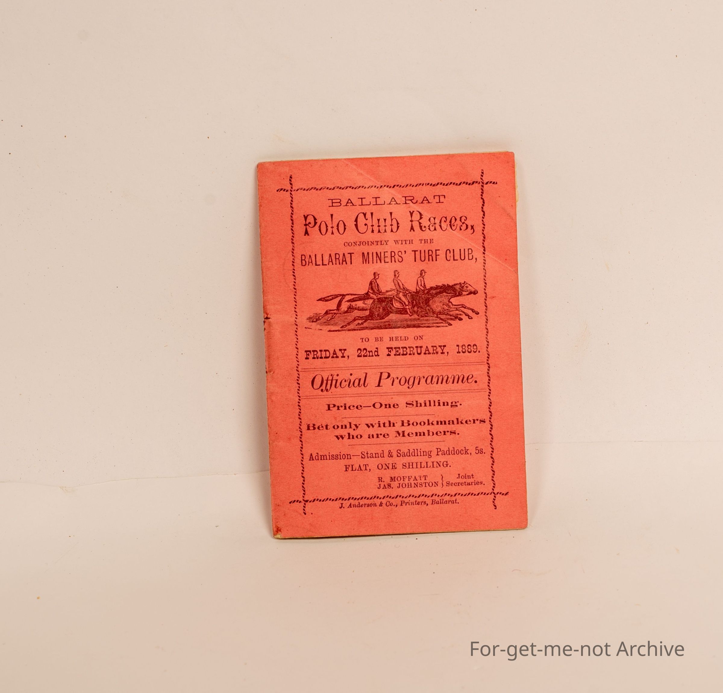 Program for Ballarat Polo Club races. Ballarat Miners Turf Club official program dated 1889. Very good condition