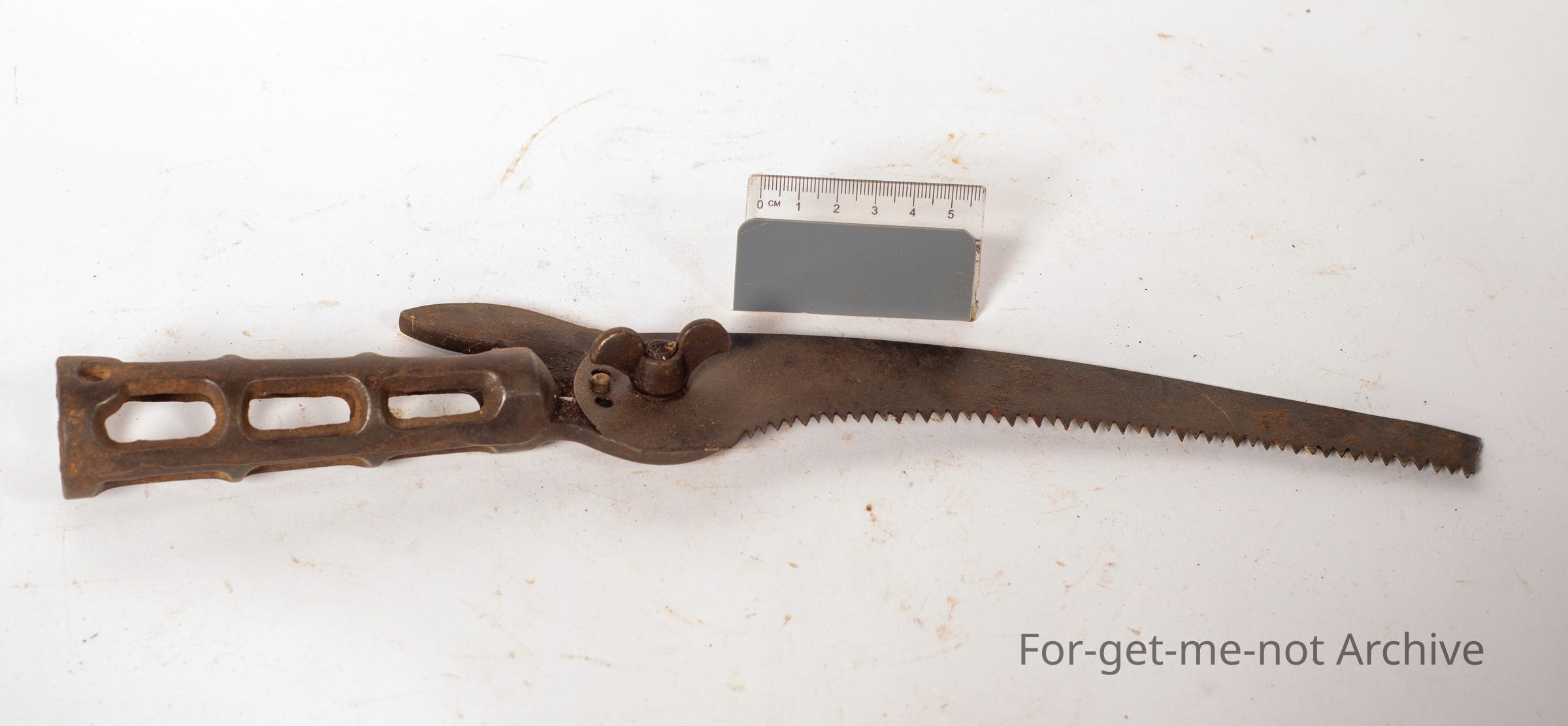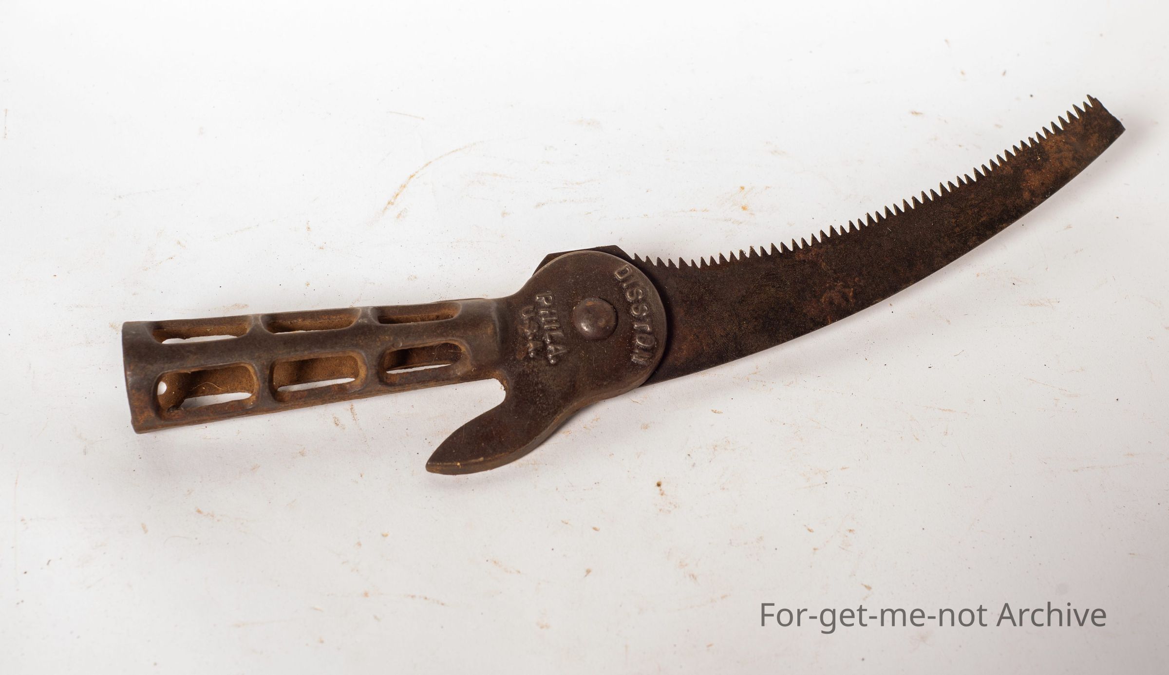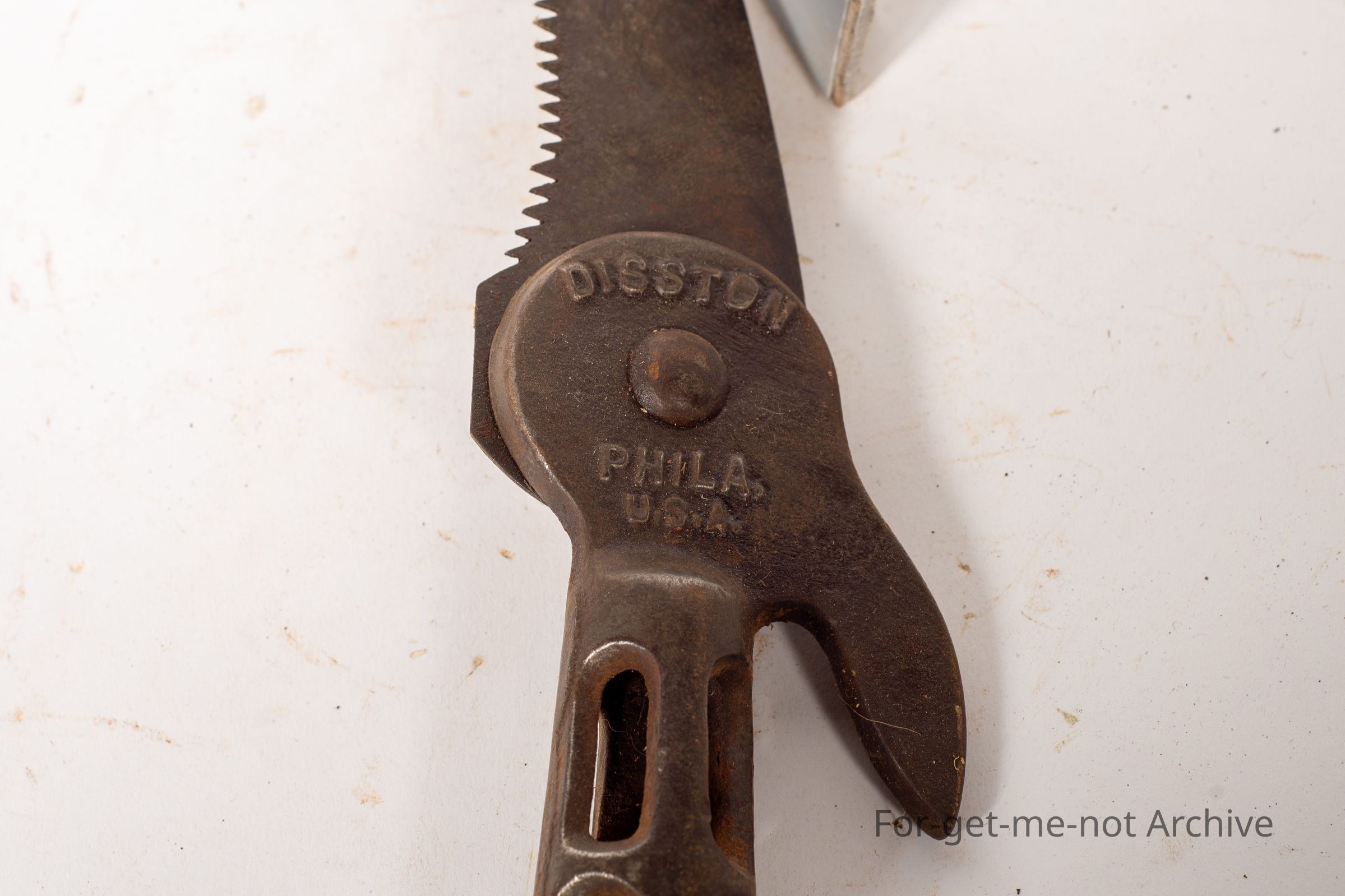 This is like a pruning saw. Cast iron fitting for the wooden handle stamped into the casting is Disston Philadelphia, USA. That indicates that it's a very early product from Disston prior to them leaving the US to create their manufacturing base in Canada.Collection