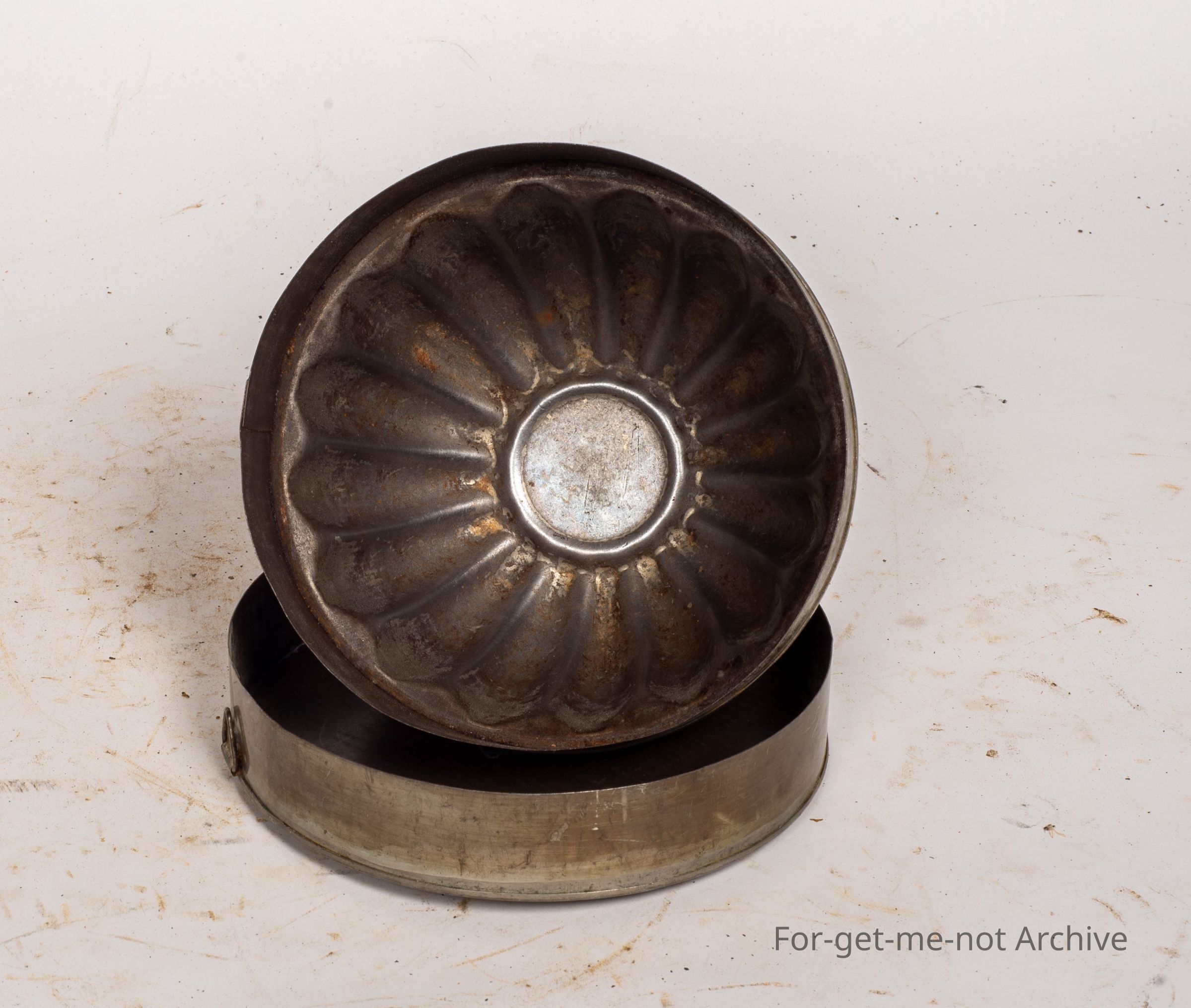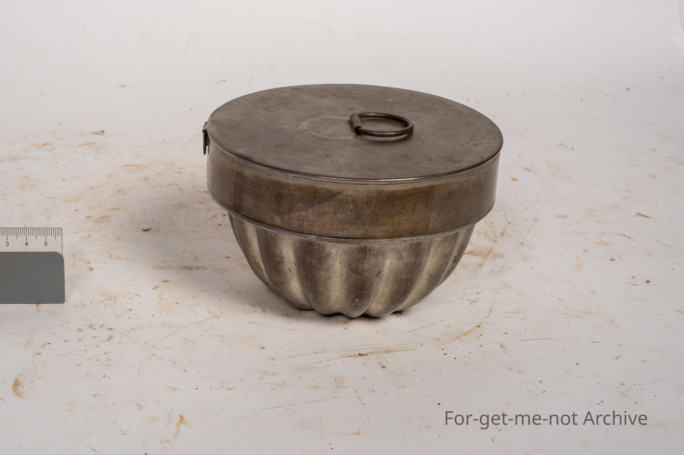 This is a small, tin pudding bowl. The mixture will be put in this and chucked in a saucepan, a ball, and water. Beautiful condition.